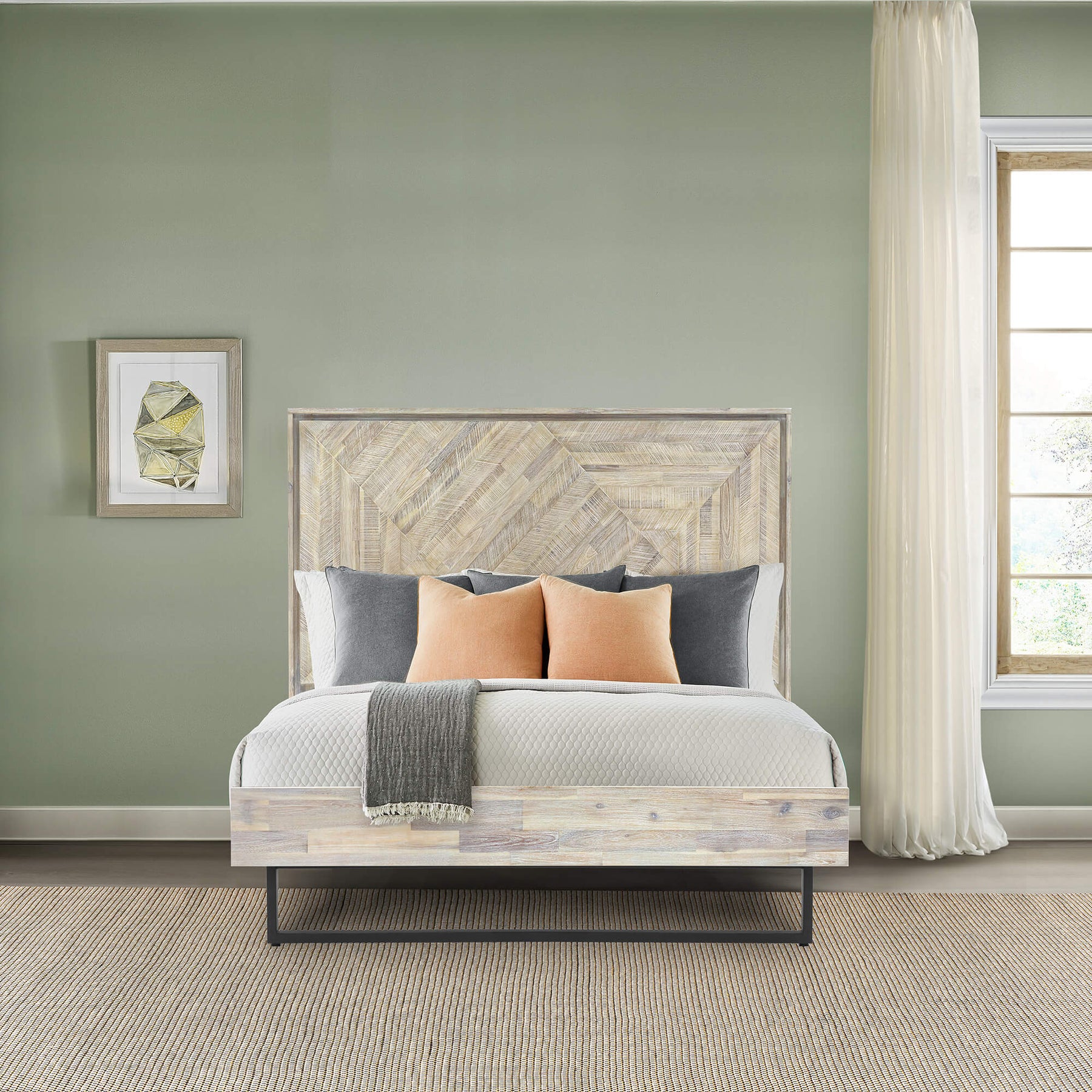 Give a charming and elegant upgrade to your bedroom with the Peridot platform bed frame in natural Acacia wood. With each panel cut and laid in a sleek geometric pattern, our bed serves an optical delight. It showcases the lively grains and tonal variations of Acacia to add a soothing touch of nature to your bedroom. Sleek and graceful, the bed frame rests upon a slender rectangular base that adds a modern element. The wooden slats ensure your comfortability by allowing air to pass freely beneath your bed, ensuring your mattress maintains its freshness and gives you many more years of enjoyment. Acacia wood is a popular choice for furniture because it has many advantages over other types of hardwood. The strength-to-weight ratio of acacia wood is one of the best in the world, making it perfect for furniture that needs to be lightweight but still durable. It is resistant to moisture and pests and does not warp. If you are looking for a durable, long-lasting material for your furniture, then acacia wood is worth considering. Pair with your memory foam, innerspring, or latex mattress. Combining style and functionality, our bed frame is perfect for early morning lingering, late-night reading, and comfy rest through the night. The Peridot platform bed frame is available in a beautiful natural finish and comes in king or queen size.Product Dimensions