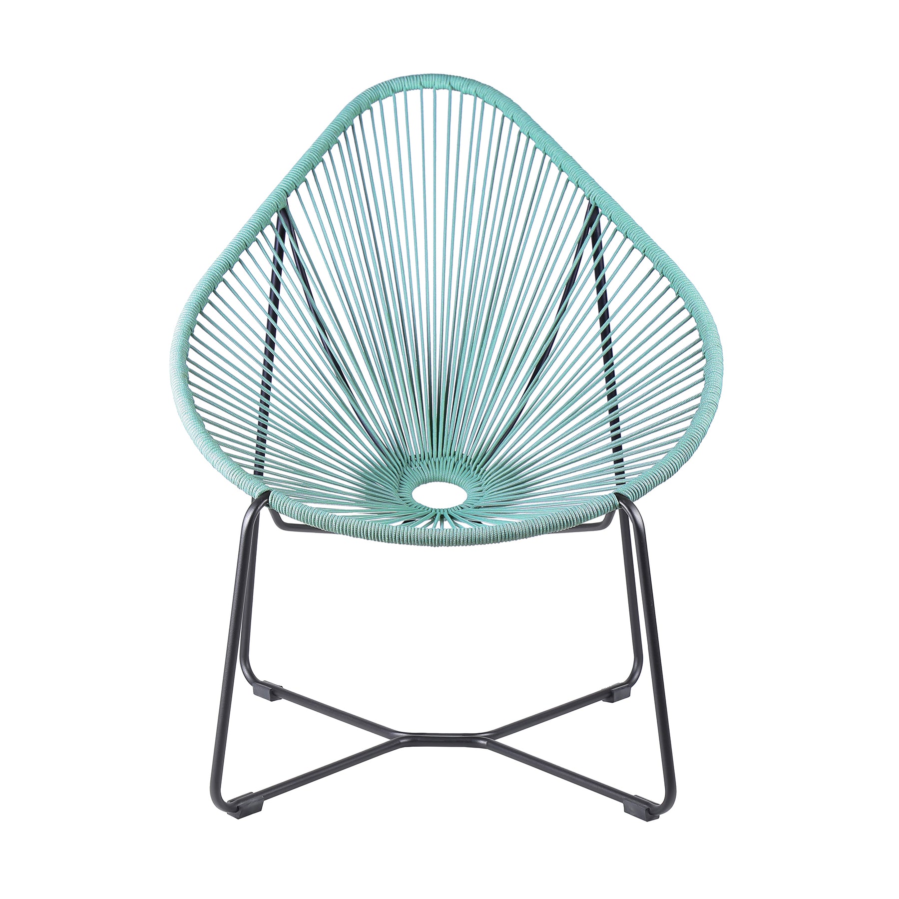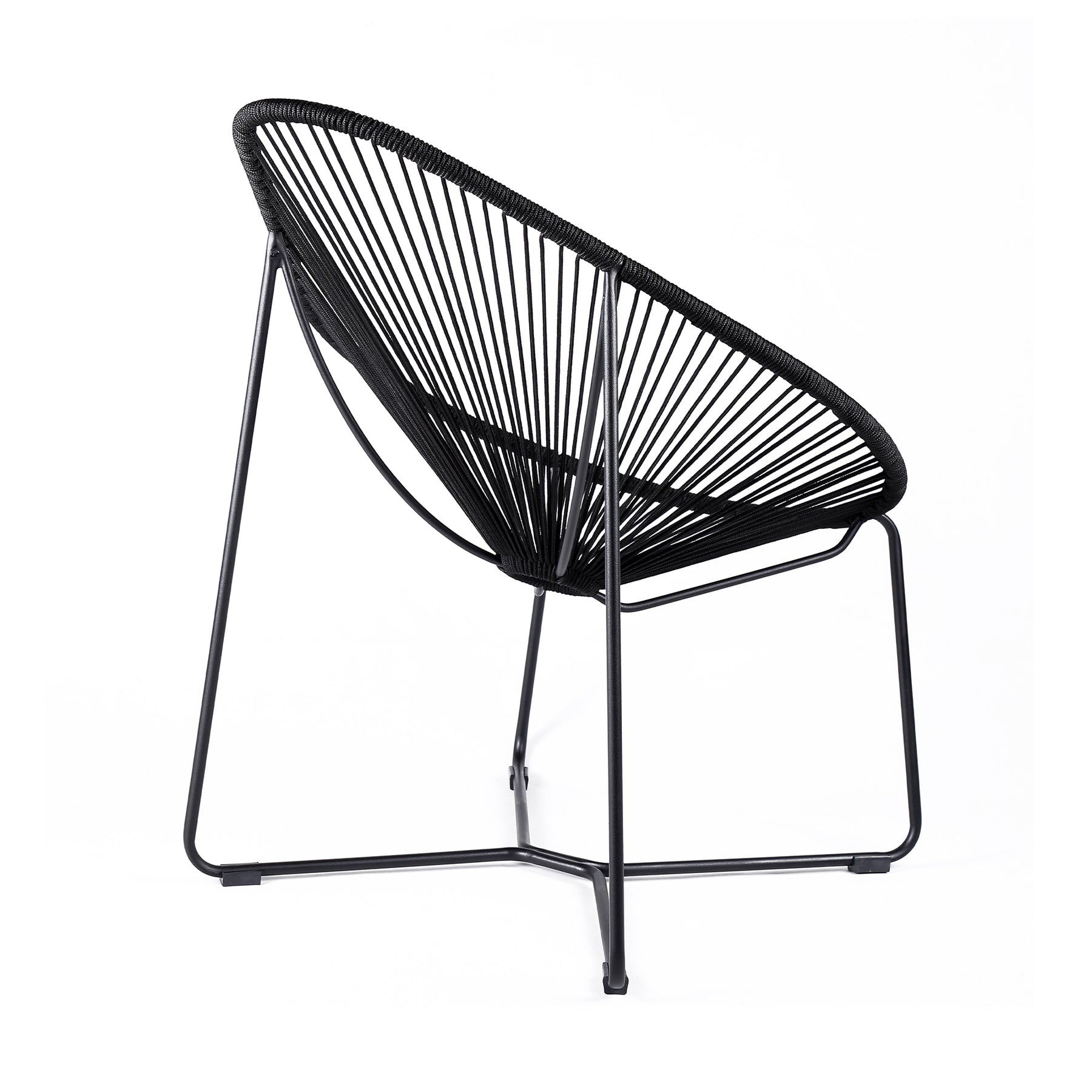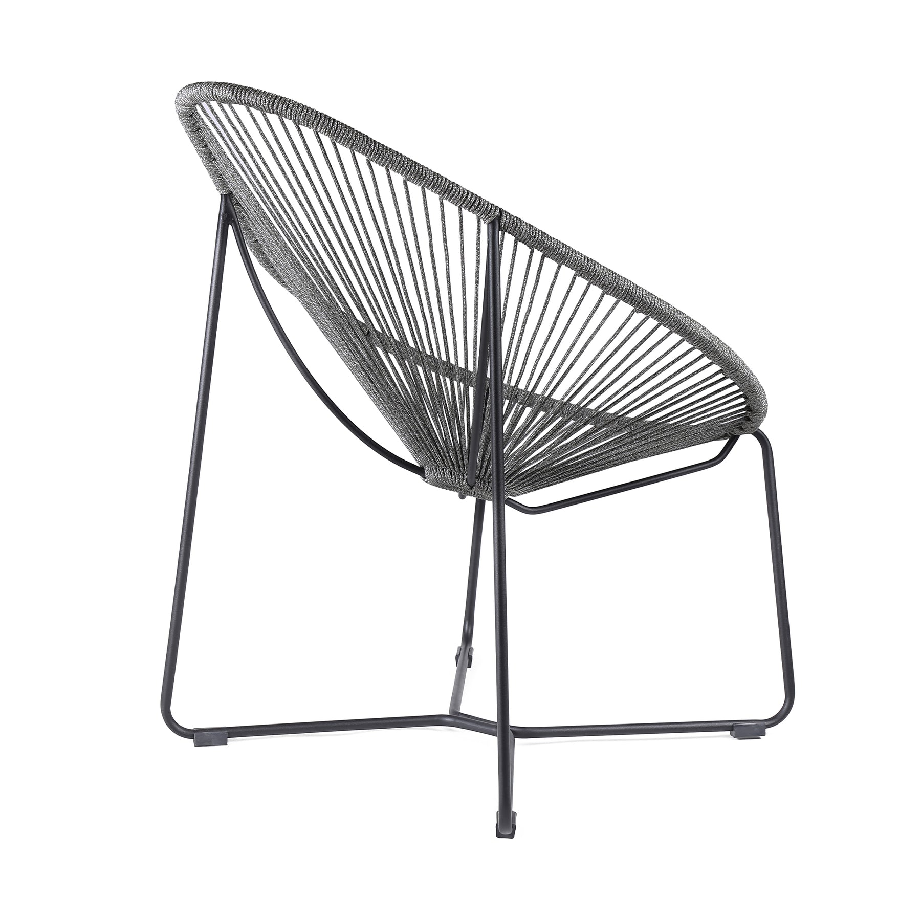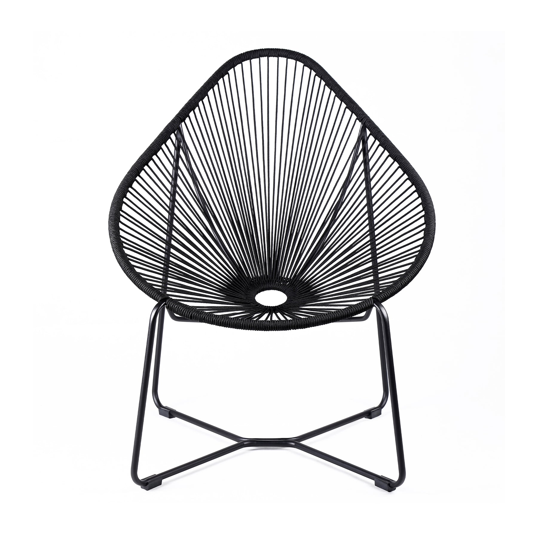 The Acapulco Indoor Outdoor Steel Papasan Lounge Chair with Black Rope from Armen Living will bring an exciting, fun, and enjoyable look into your outdoor living area. Featuring an elaborate woven design and rounded metal frame, this chair will blend seamlessly into your outdoor decor. Its pear-shaped seat is wrapped in resilient regatta rope cording, providing supple support while still allowing for element passthrough - also enhancing your seating experience with a softness that rivals most fabrics. The Acapulco chair covers your body perfectly and will keep you relaxed and let you unwind during your favorite season. The Acapulco outdoor chair is available in your color choice of black, brick red, grey, or wasabi - choose your favorite to match your outdoor decor. Product Dimensions: 31"W x 36"D x 39"H SH: 16.5"Product Dimensions