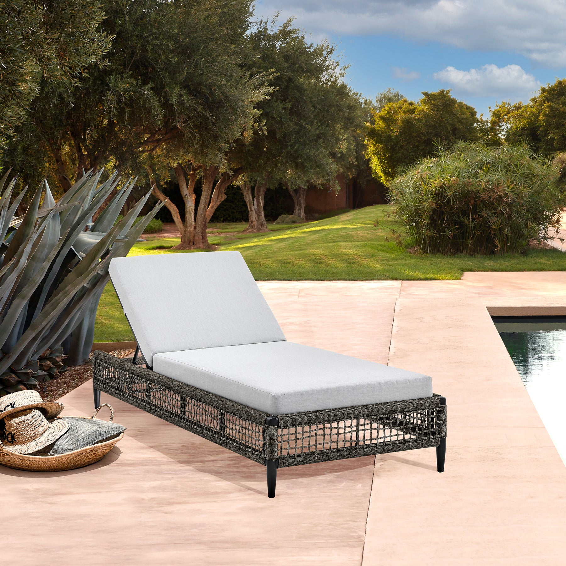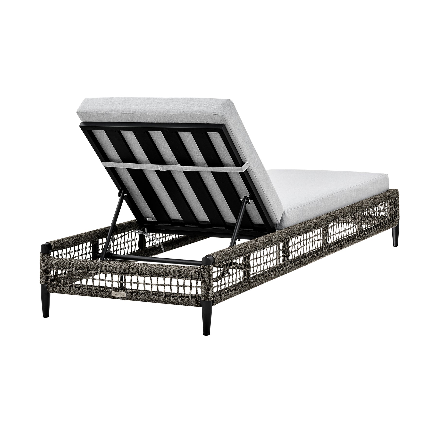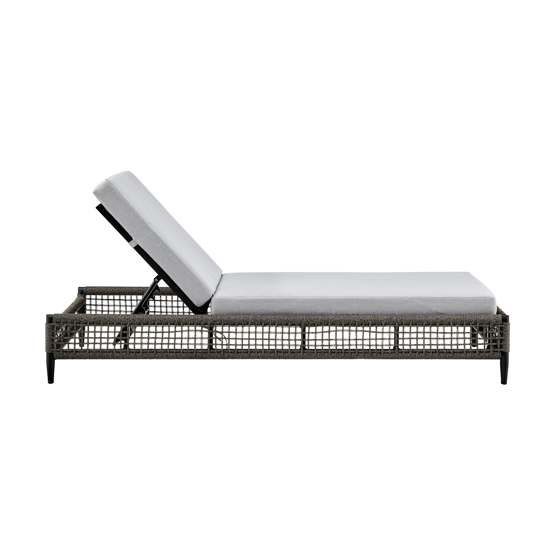 Step up the lounging factor of any outdoor space with the Alegria Outdoor Chaise Lounge Chair from Armen Living. Sleek and elegant, this chaise can serve as a comfy and inviting addition to your backyard patio. The rope that’s wrapped around the base of the chaise is treated to be protected from water, UV, oil, and fading. The lightweight aluminum frame features a multi-layer powder coating for further effective protection from the elements and everyday wear and tear, making this an ideal outdoor furniture piece. The light grey cushions not only feature high-density foam that will allow for many hours of comfortable seating; the cushions also feature a zipper closure that allows for easy removal and cleaning! This piece of outdoor patio furniture can vouch for a chic and modern appeal to compliment any space whether it’s next to your pool, on a rooftop patio, or in your backyard near your garden. The chaise features 5 different reclining positions for ultimate convenience and a generously cushioned seat for a comfortable stay. The aluminum frame is lightweight and makes this chaise outdoor chair with cushions easily portable so that you’re able to follow the sun or shade for an enjoyable outdoor experience. The Alegria Chaise Lounge Chair is a perfect piece of outdoor furniture, it supports up to 330lbs and has a seat height of 15 inches.Product Dimensions