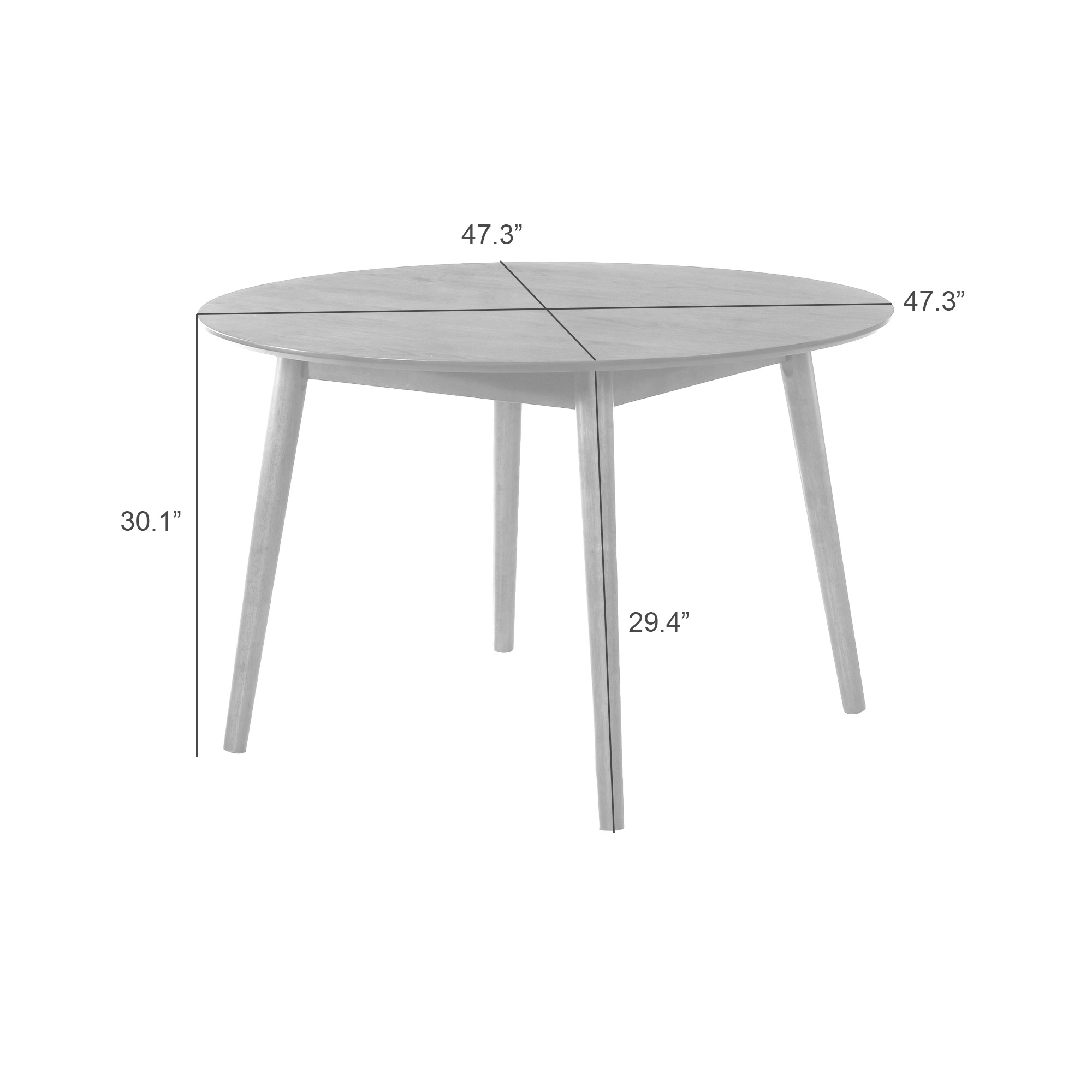 The Bennet 47 in. Round Dining Table embodies the essence of modern simplicity and timeless craftsmanship. Designed to create an inviting dining experience, it features a warm walnut finish, sleek round top, and clean tapered legs that blend mid-century charm with contemporary refinement. Whether styled for intimate dinners or everyday meals, the Bennet Dining Table adds a balanced, organic warmth to any interior. Expertly crafted from solid natural wood, this table offers both beauty and durability. The walnut finish showcases the natural wood grain, adding depth and character while maintaining a smooth, polished look. solid natural wood, known for its strength and environmental sustainability, provides a sturdy foundation built to withstand daily use. Its solid feel and careful craftsmanship ensure long-lasting performance, making it ideal for both family homes and modern apartments. The 47-inch round tabletop comfortably seats four people, creating a cozy and connected dining atmosphere. The circular shape encourages conversation and offers flexibility in room layout,perfect for open-concept spaces or compact dining areas. Four slightly tapered legs extend outward from the center for a balanced profile, ensuring stability while maintaining a lightweight, elegant silhouette. With its clean lines and versatile scale, the Bennet Dining Table seamlessly complements a wide range of dining chairs, from upholstered modern seating to sleek wood silhouettes. Its design bridges mid-century, Scandinavian, and transitional aesthetics,making it equally at home in minimalist, retro-inspired, or warm rustic settings. Assembly is simple, with pre-drilled components that make setup quick and straightforward. The smooth tabletop is easy to clean and maintain, allowing you to preserve its natural beauty for years to come. Backed by a 1-year limited manufacturer warranty, the Bennet Dining Table combines effortless style, everyday function, and enduring quality in one timeless piece.