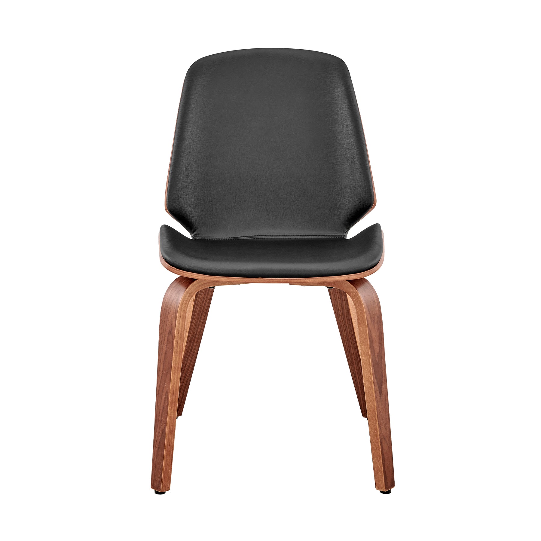 The Brinley Gray Faux Leather and Black Wood Dining Room Accent Chair from Armen Living is an exceptional choice to bring into the living area of your choice. The soft fabric upholstery is luxuriously wrapped around the entire seat - covering the ultra-comfortable foam padded cushion. Featuring a wide back and spacious seat, you never have to feel confined to a small space. The clean, sleek, and geometric wooden legs add a modern style to this chair - also assuring dependability that this chair will last and give you years of enjoyment. The Brinley accent chair is available in your color choice of Gray, cream, or black faux leather with walnut wood or Gray faux leather with black wood. Product Dimensions: W:18.5 x D:22 x H:32 x SH:18