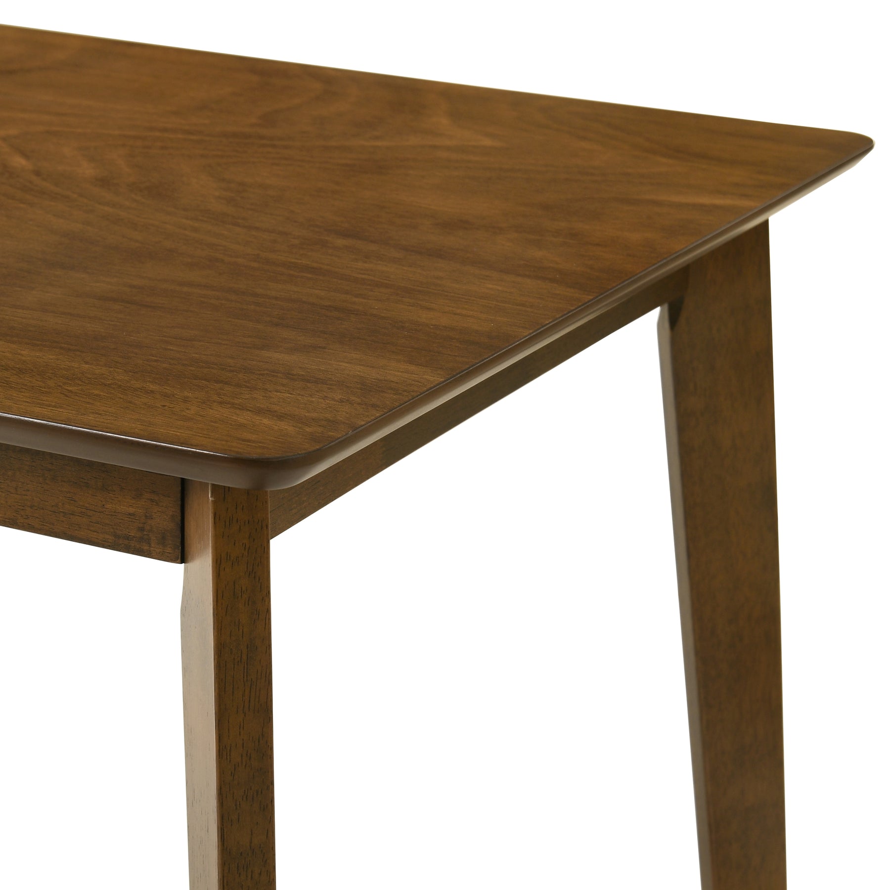 The Gina 5-Piece Dining Set brings a polished blend of contemporary design and everyday comfort to modern dining spaces. This complete 5-piece set includes one rectangular dining table and four coordinating barrel-back dining chairs, creating a cohesive and well-balanced dining arrangement that feels both inviting and refined. The gently curved chair silhouettes soften the overall look, while flared legs across both the table and chairs add architectural consistency and visual flow. Each 5-piece set includes four dining chairs upholstered on the full seat in a soft, textured performance fabric available in Sand, Charcoal, Olive Green, or Poppy. The medium-height barrel backs provide supportive comfort without bulk, while foam-filled cushions with balanced density ensure comfort for everyday meals and longer gatherings. The armless design allows for easy movement and flexible seating around the table. The dining table anchors the set with its clean rectangular profile and warm walnut finish. Crafted with solid natural wood legs and a durable wood tabletop designed for daily use, the table offers dependable stability while maintaining a light, uncluttered appearance. A subtle gloss application enhances the natural grain while adding surface protection, and kiln-dried construction supports long-term durability and alignment. Measuring 47 inches wide, the table comfortably seats four, making the Gina 5-Piece Dining Set ideal for apartments, breakfast nooks, and smaller dining rooms. Both the table and chairs require assembly and arrive with all necessary hardware and clear instruction manuals. Assembly is straightforward and easy. The set is backed by a 1-year limited manufacturer warranty, offering confidence in both design and craftsmanship.Product Dimensions