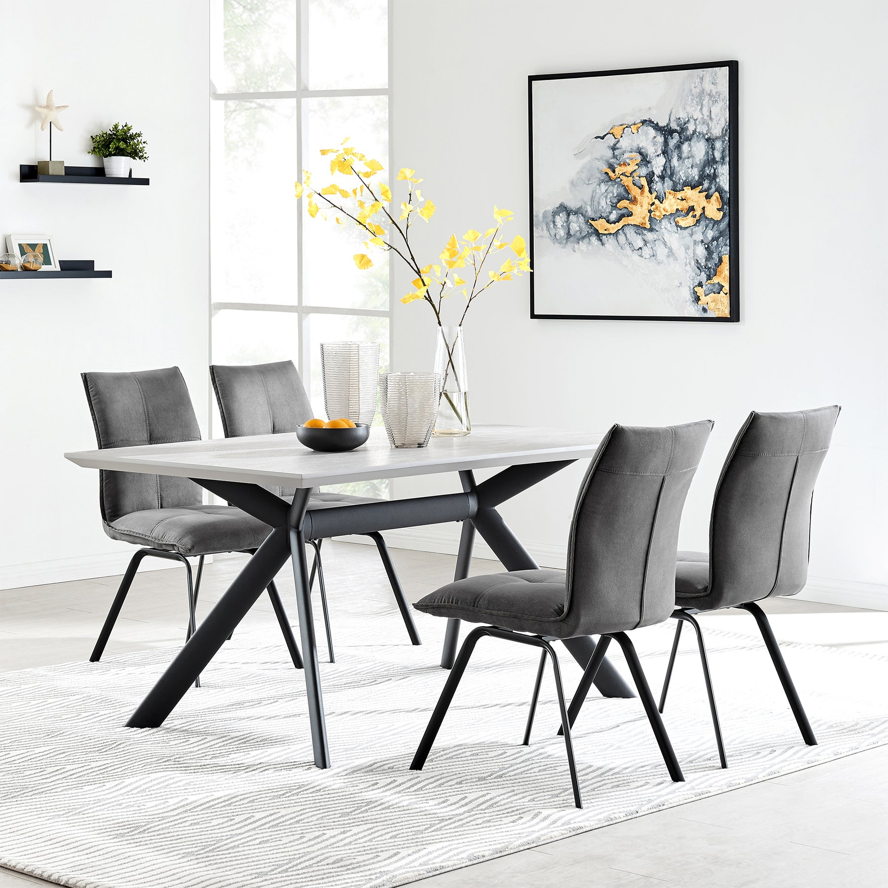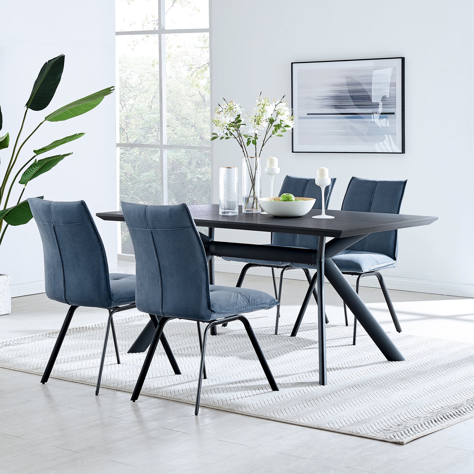 Bring the Margot and Rylee 5 Piece Dining Set in Blue from Armen Living into your home! The fabric upholstery is luxuriously wrapped around the entire seat. Featuring a wide back and spacious seat, the Rylee will never confine you to a small space. The clean geometric upholstered lines add a textured look to this chair, covering the ultra-comfortable foam-padded cushion. The refined look of the Rylee will update the decor in any dining room, bar, or lounge area, or wherever you decide to place it! This wonderful chair features a sturdy metal frame that assures dependability and will give you years of enjoyment. The Margot dining table was built with sturdiness in mind - featuring durable materials that will not fault from everyday wear and tear. This table is deep, wide, and strong - allowing you to seat a large family or group of guests. The wide base is on full display, capable of grabbing anyone's attention from far away.Product Dimensions