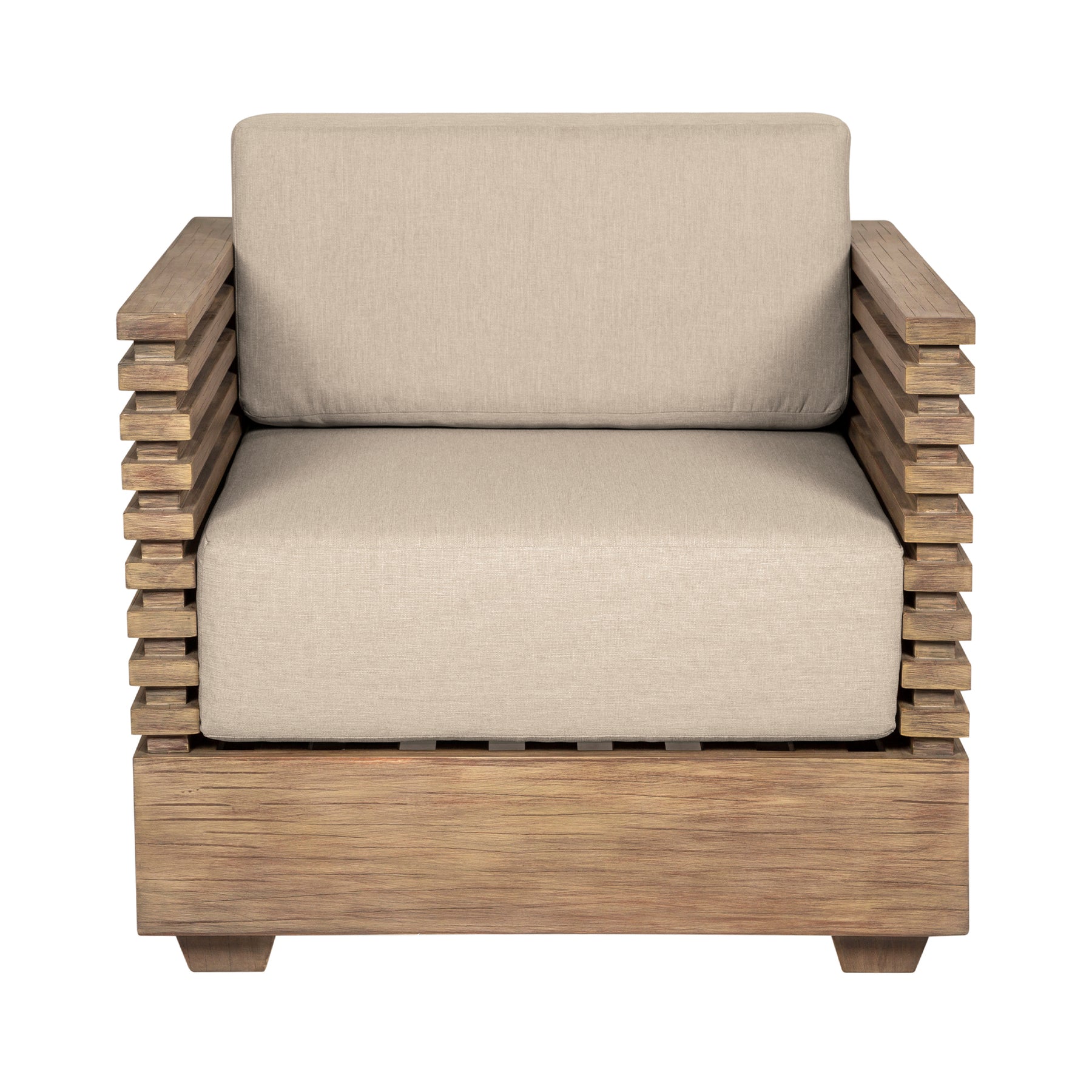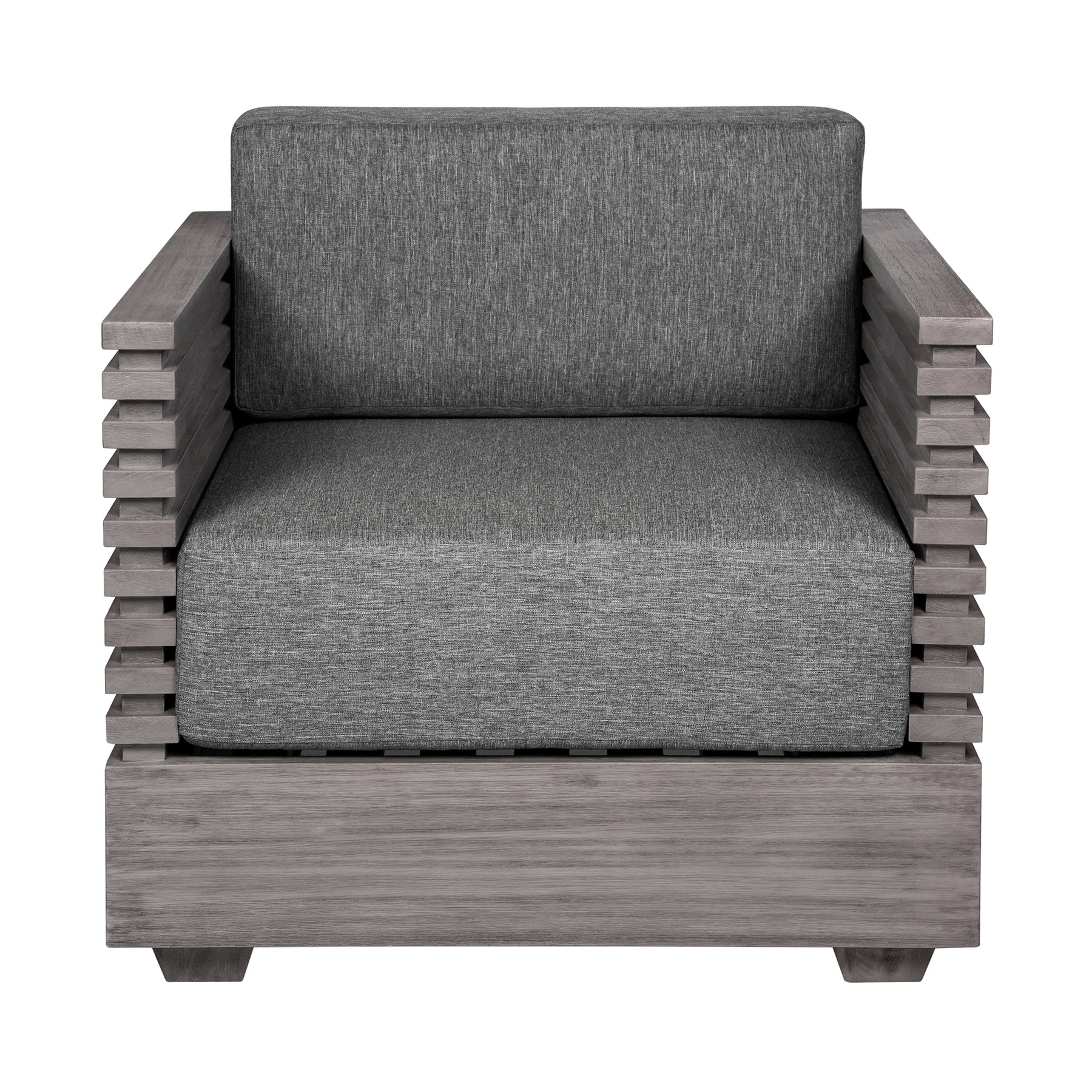 Transform your outdoor space into a haven of relaxation with the Vivid Outdoor Patio Chair. Crafted with meticulous attention to detail, this outdoor chair is a perfect fusion of style, comfort, and durability. The timeless gray Eucalyptus wood frame not only adds an element of sophistication to your outdoor setting but also ensures longevity, making it a standout piece of outdoor furniture. Designed for those who appreciate both aesthetics and resilience, the Vivid Outdoor Patio Chair boasts water-resistant and UV-resistant features, allowing it to withstand the elements with grace. Whether basking in the sun or enduring a sudden downpour, this chair remains a steadfast companion for your outdoor moments. Sink into the plush comfort of the Olefin cushion, providing a cozy seat that invites you to linger a little longer. The gray cushion complements the Eucalyptus wood frame seamlessly, creating an inviting space for relaxation. Additionally, the removable, zippered cushion cover makes cleaning a breeze, ensuring your outdoor chair maintains its fresh and inviting allure. Versatile in design, the Vivid Outdoor Patio Chair effortlessly enhances any outdoor environment – be it a cozy corner of your garden, a serene patio, or a poolside retreat. Its ergonomic design ensures not only visual appeal but also optimal comfort, making it the perfect spot to unwind after a long day. Invest in outdoor furniture that combines style and functionality, and choose the Vivid Outdoor Patio Chair in Eucalyptus Wood with Olefin Cushion. Elevate your outdoor seating experience with a chair that not only complements your surroundings but also withstands the rigors of outdoor living.