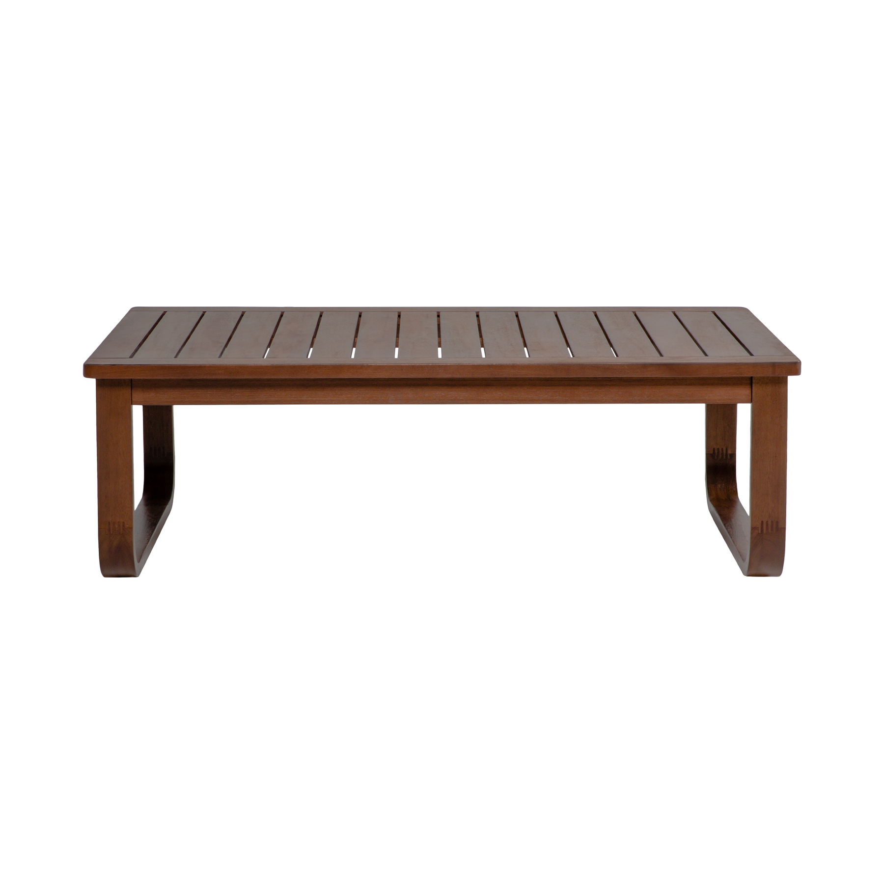 Anchor your outdoor seating area with the Wavefront Rectangular Outdoor Coffee Table, a versatile and stylish piece designed to pair perfectly with the Wavefront seating collection. Crafted from 100% solid eucalyptus wood, this coffee table offers the strength, durability, and natural beauty of a sustainable hardwood, making it ideal for outdoor living. Available in both a natural eucalyptus finish that highlights the wood’s organic grain and a rich brown finish that adds warmth and sophistication, the table adapts seamlessly to a wide range of outdoor décors. The rectangular slatted tabletop provides ample surface space for drinks, snacks, books, or decorative accents, while its design allows water to drain easily for fast drying and low maintenance. A wire-brushed texture enriches the wood’s character while adding an extra layer of resistance to the elements, ensuring the table maintains its look and performance season after season. Built with sturdy legs for reliable stability, this coffee table is suitable for patios, decks, or poolside areas. Floor glides protect surfaces from scratches and help balance the table on uneven ground. Lightweight enough to move when needed yet strong enough for daily use, it serves as both a practical and aesthetic anchor for your outdoor space. Whether styled as a standalone centerpiece or paired with the Wavefront sofa and armchairs for a complete lounge set, this coffee table delivers timeless appeal and lasting function. From casual family gatherings to evenings with friends, it enhances outdoor living with ease and elegance.Product Dimensions