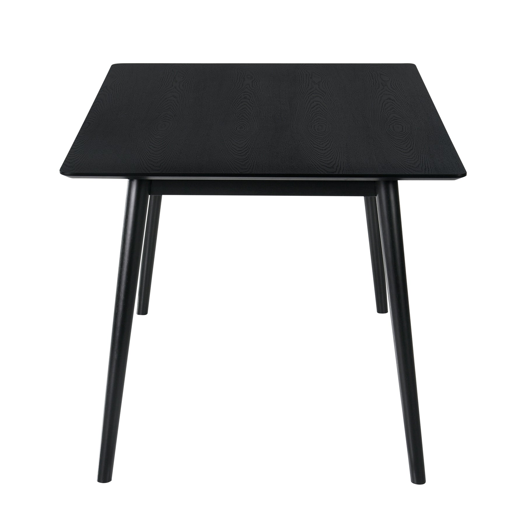 The Westmont 59" Rectangular Dining Table in Black Wood features a clean and minimalist silhouette that provides ample space for friends and family to gather. Four tapered and splayed legs support the rectangular tabletop to create a mid-century-inspired aesthetic. Rectangular dining tables are the go-to table shape for any dining area. It's practical, fits easily in a dining room, and most importantly, it looks great. Easily seating up to 6 guests, the Westmont is the perfect addition to any eat in kitchen or dining room! Dinner parties and family breakfasts serve up inviting ambiance with this retro-influenced yet contemporary dining table. The Westmont rectangular dining table is 59" wide and is available in your choice of a black or walnut wood finish.Product Dimensions