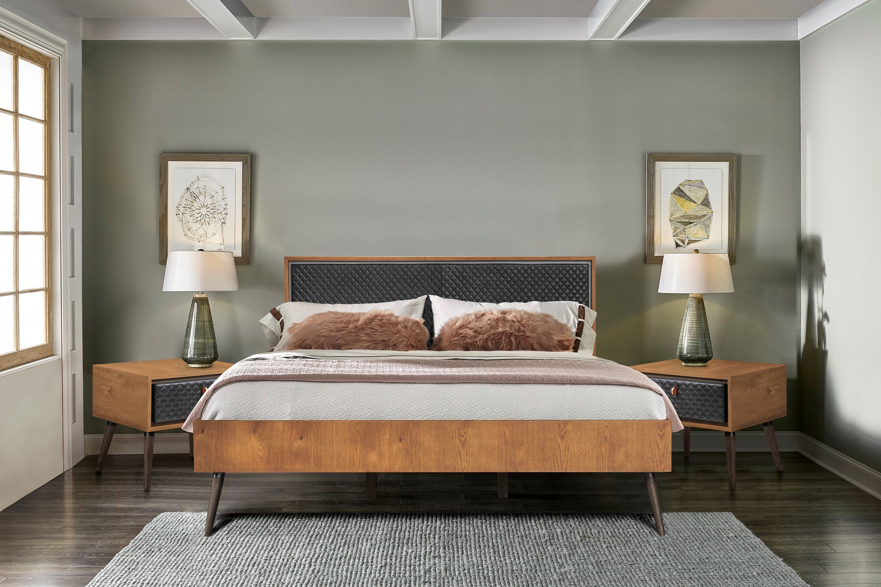 Upgrade your bedroom with this three-piece bedroom set. The Coco bedroom set is sturdy and durable for long-lasting life. 2 single drawer nightstands allow convenience and storage on either side of the wood and upholstered platform bed. The Coco bedroom set is available in a beautiful rustic Balsamico finish and in a king or queen bed size. We stand by the quality, the craftsmanship, and the integrity of our product by offering a 1-year warranty for all our products. We want our customers to enjoy our product and we will always be there to help with our top-notch customer service support.