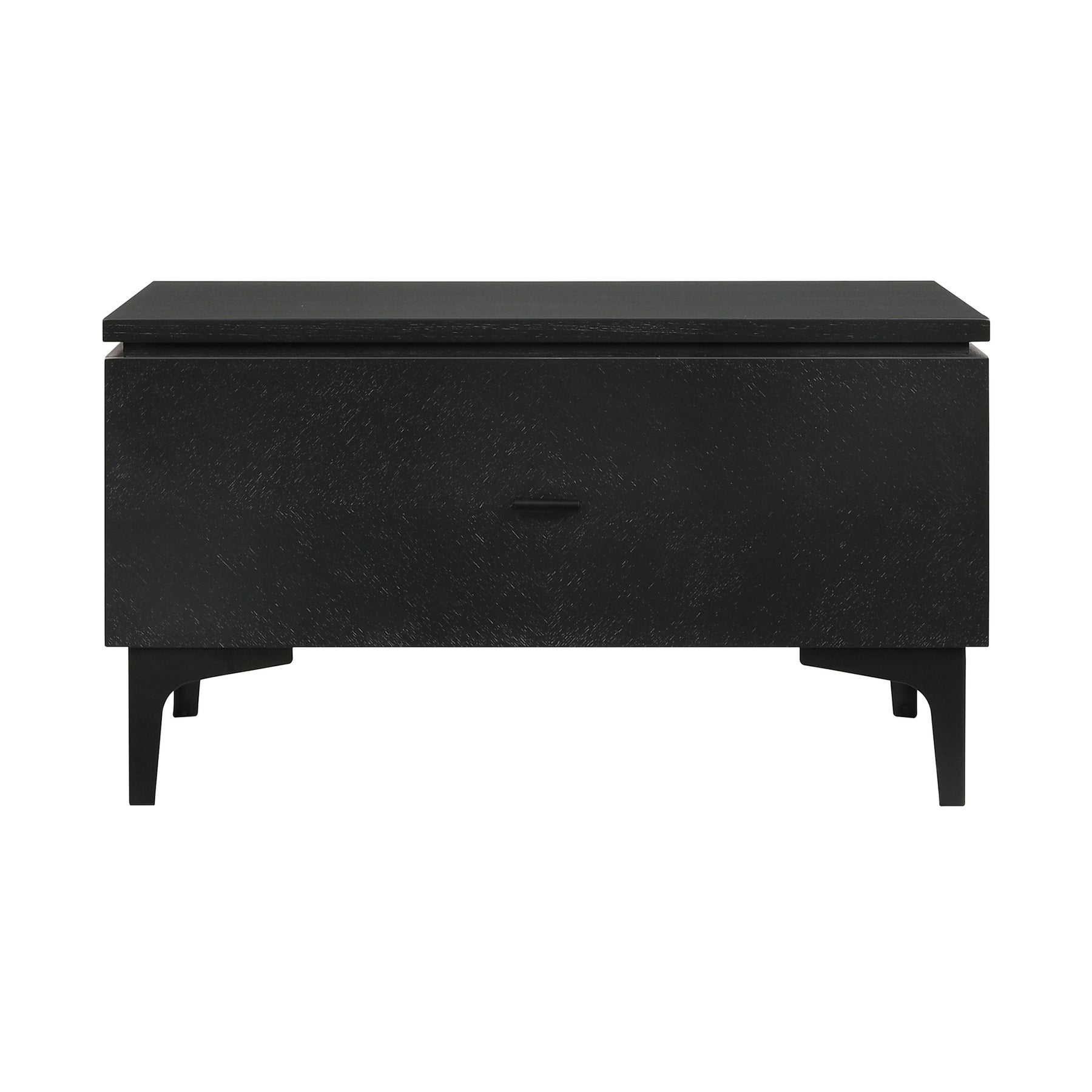 The Legend 3 Piece Gray Fabric King Platform Bed and Nightstands Bedroom Set is sleek and modern while maintaining a cozy feel to it. The striking upholstered headboard is a sight to behold, as your eyes are immediately drawn to it. The low profile of the Legend bed rests on top of durable metal legs. The wooden slats ensure your comfortability by allowing air to pass freely beneath your bed, ensuring your mattress maintains its freshness and gives you many more years of enjoyment. The design of the Legend Black Glaze Ash Veneer Nightstands features a black finish that will surely help modernize the decor in your home. The four sleek metal tapered legs are crafted with sturdiness and durability in mind - giving you peace of mind for the longevity of this item. This rich and minimal nightstand features 1 drawer with a soft-closing gliding function - giving you extra space to organize your bedroom. King Bed Dimensions: 82"W x 89"D x 39"H. Nightstand Dimensions: 28"W x 19"D x 16"H.