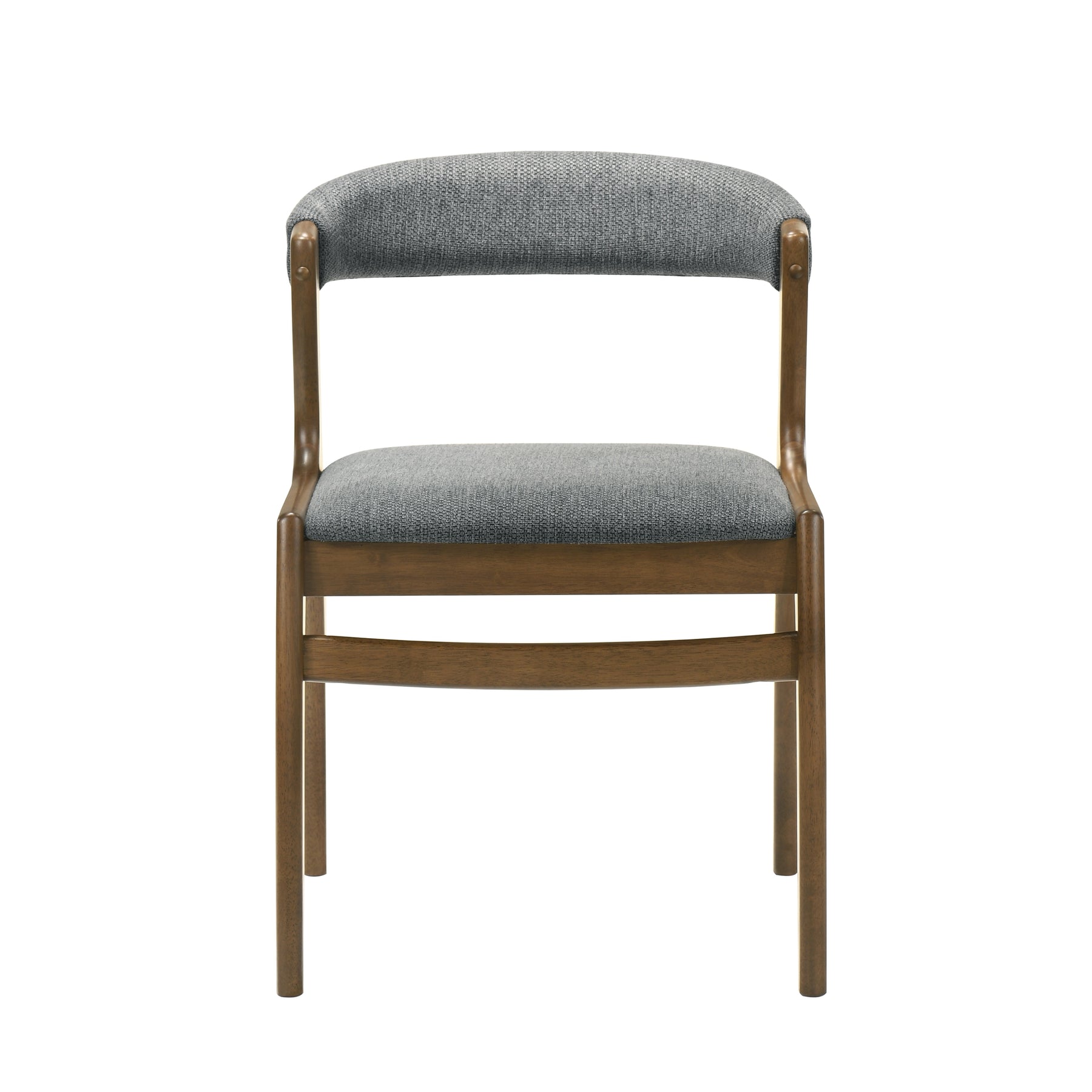 Ileena Mid-Century Modern Charcoal Upholstered Armless Solid Wood Dining Chair in Walnut Finish - Set of 2 from the Ileena collection delivers sleek comfort and timeless style to your dining area. Inspired by mid-century modern design, these chairs combine clean silhouettes, gentle curves, and smart material choices that elevate any space with ease. Each chair features a solid rubberwood frame finished in a warm walnut tone, highlighting the natural beauty of the wood grain while ensuring structural durability. The armless design adds a sense of openness around the table, making these chairs ideal for compact or airy layouts. Upholstered in rich charcoal performance fabric, they offer a soft yet resilient seating experience that’s built to withstand daily use and occasional spills. Whether paired with a matching dining table or styled on their own, these chairs strike the perfect balance between sophistication and function. Their versatile color palette makes them an easy fit for both casual kitchens and formal dining rooms. Assembly is quick and simple, requiring only about 5 minutes per chair with one person. The set is backed by a 1-year manufacturer's warranty for added peace of mind. Designed for everyday use and timeless appeal, the Ileena chair set adds comfort, structure, and a refined edge to any dining experience.Product Dimensions