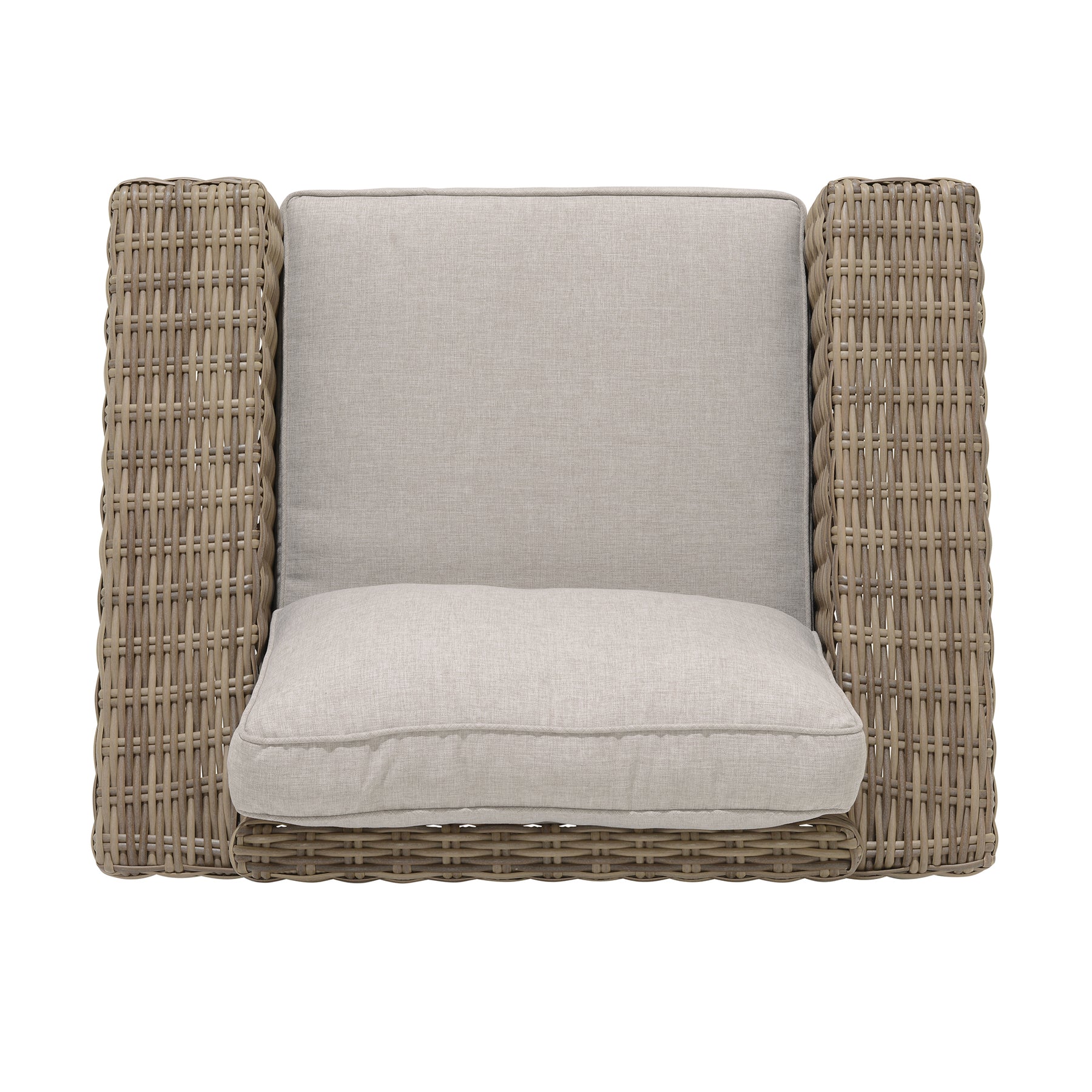 The Bahamas Outdoor Wicker & Teak Wood Lounge Chair with Beige Olefin from Armen Living will absolutely enhance the beauty of any outdoor space. The amazing look of the Bahamas chair will be a great addition to your outdoor or indoor living area. The cushions are upholstered in olefin fabric which is perfect for the outdoors because it is abrasion, stain, sunlight, fire, and chemical resistant. The teak legs are sturdy and dependable, staying strong against most elements. The unique wicker is a combination of raw polyethylene and eco-friendly colorants which is 100% recyclable and environmentally friendly. The flared legs are made from FSC certified teak wood that has been sourced and recycled from components and structures on the island of Java and serves as a strong support system for you to enjoy for many years to come. The convenient zipper closure on the cushions allows you to remove the covers for easy clean up. Pair this chair with the Bahamas Outdoor Wicker & Teak Wood Sofa with Beige Olefin or the Bahamas Outdoor Rectangular Teak Wood Coffee Table from the same collection! Product Dimensions: W:44 x D:35 x H:28 x SH:19