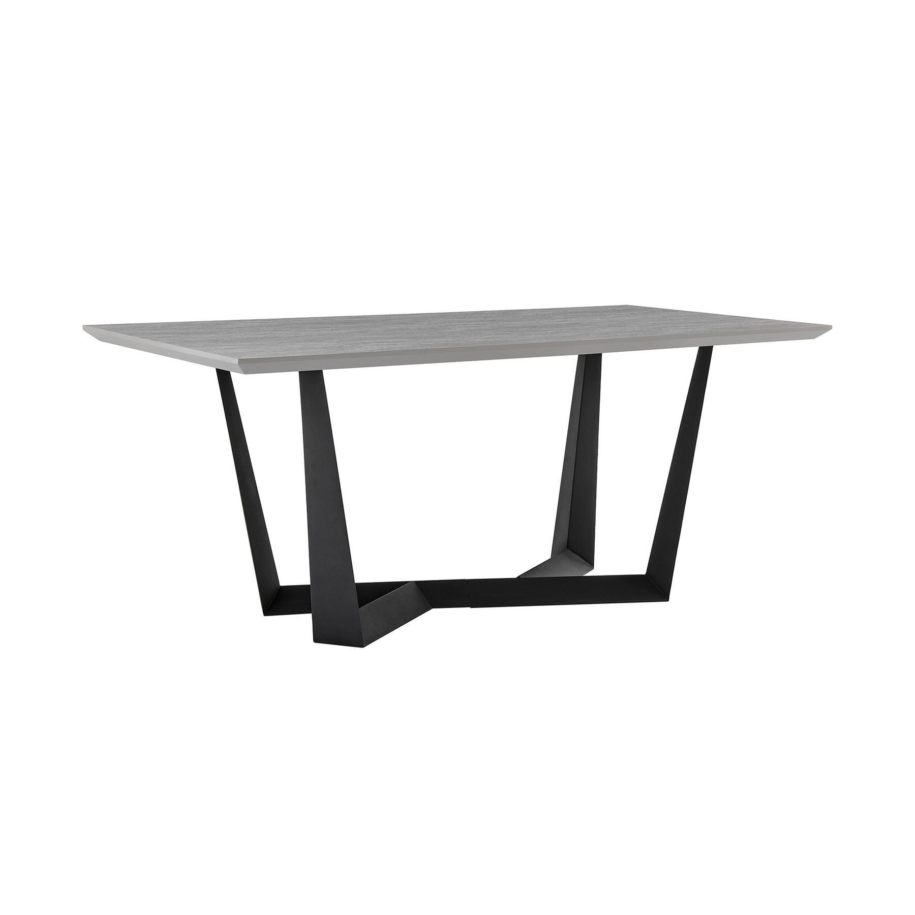 The Radford Dark Gray Rhine Top with Black Metal Dining Table from Armen Living is the one of a kind dining table you have been searching for. The unique structure base is a sight to behold - flipping the conventional look of a dining table base (quite literally) on its head. The Radford was built with sturdiness in mind - featuring durable materials that will not fault from everyday wear and tear. This table is deep, wide, and strong - allowing you to seat a large family or group of guests. Available in your color choice of a light Gray or dark Gray tabletop. Pair it with any of the dining chairs from any of our collections at Armen Living.Product Dimensions