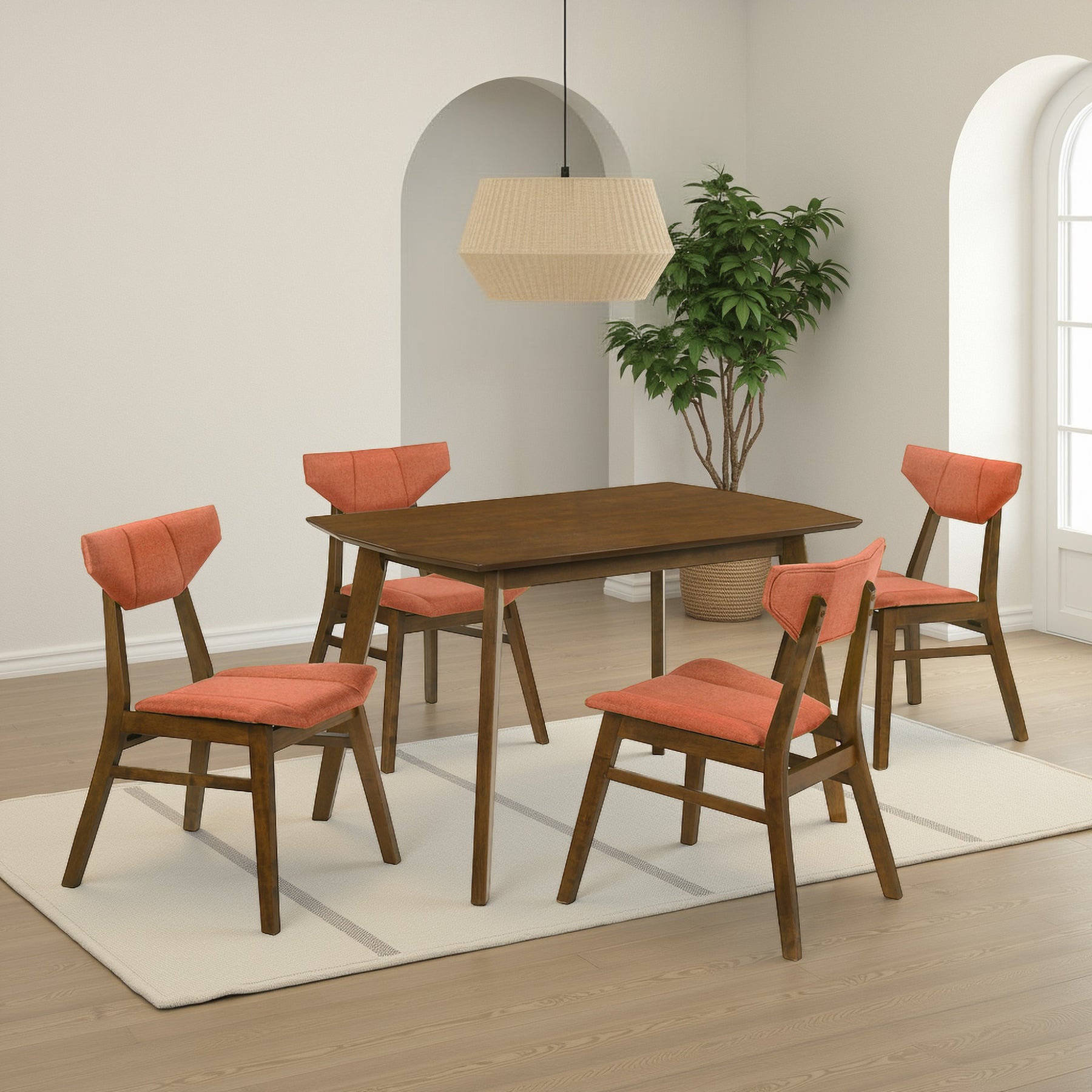 The Amaris Dining Chair Collection delivers a refined blend of modern design and everyday comfort, making it a versatile choice for contemporary dining spaces. Defined by clean lines, an open-back silhouette, and sculptural cross-base construction, Amaris brings a light, architectural presence to the room without sacrificing durability or support. Its streamlined, armless profile allows the chairs to tuck neatly under the table, maximizing space and maintaining a clean visual flow. Each set includes four dining chairs, featuring a fully upholstered seat and back wrapped in a soft, textured performance fabric available in Sand, Charcoal, Olive Green, or Poppy. The medium-height open back offers supportive comfort while preserving an airy feel, making the chairs equally suitable for casual meals and extended gatherings. Foam-filled cushioning with balanced density provides reliable comfort and structure for everyday use. The frame is crafted from solid natural wood finished in a warm walnut tone with a subtle gloss application that enhances the wood’s character while offering added surface protection. Kiln-dried construction supports long-term stability and helps resist warping over time. The sled-style legs and cross-base design contribute to both visual interest and dependable balance, with each chair supporting up to 300 lbs. Designed for residential use, the Amaris Dining Chair set of 4 requires full assembly. The assembly process is easy and straightforward, supported by a clear instruction manual. The collection is backed by a 1-year limited manufacturer warranty, offering reassurance in both construction and craftsmanship.