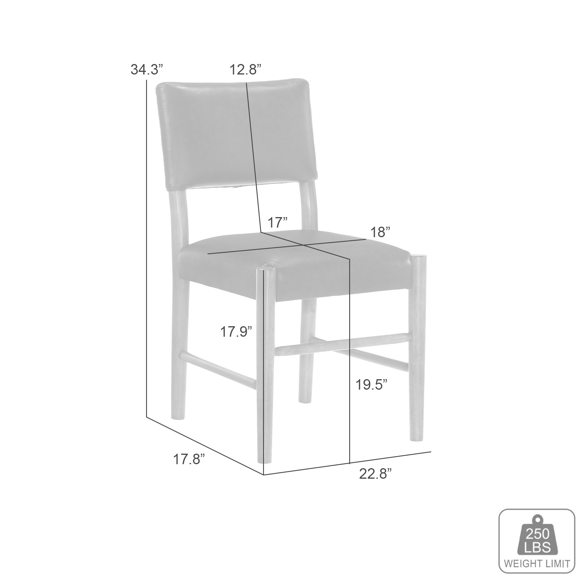 The Bennet Dining Chair Set brings the same sophisticated warmth and contemporary edge, offering a seamless way to coordinate your dining and counter seating. Designed as a set of two, each chair blends comfort, durability, and timeless style,perfect for dining rooms, breakfast nooks, and open-plan living spaces. Crafted from solid natural wood with an Walnut finish, the Bennet showcases a naturally warm tone that pairs effortlessly with a wide range of interior styles,from mid-century and modern farmhouse to refined industrial. The black vegan leather upholstery adds a touch of understated elegance, offering the luxurious look and feel of genuine leather with the everyday practicality of a performance material. The fully cushioned seat and backrest ensure all-day comfort during meals, gatherings, or long conversations. Its slightly curved back provides subtle lumbar support, while the armless frame allows for easy movement and effortless placement around compact tables. The rounded legs with stretcher bars not only add strength but also serve as comfortable footrests, creating an ergonomic seating experience. Built to last, the Bennet Dining Chair features reinforced joinery and a smooth Walnut finish that protects the frame from daily wear. The vegan leather upholstery is both soft to the touch and easy to maintain,simply wipe clean after use. Assembly is quick and simple, and the set is backed by a 1-year limited manufacturer warranty for peace of mind. Whether styled alongside matching Bennet counter stools or used as standalone dining seating, this set brings balance, texture, and versatility to your dining space,proving that comfort and sophistication can coexist beautifully.Product Dimensions