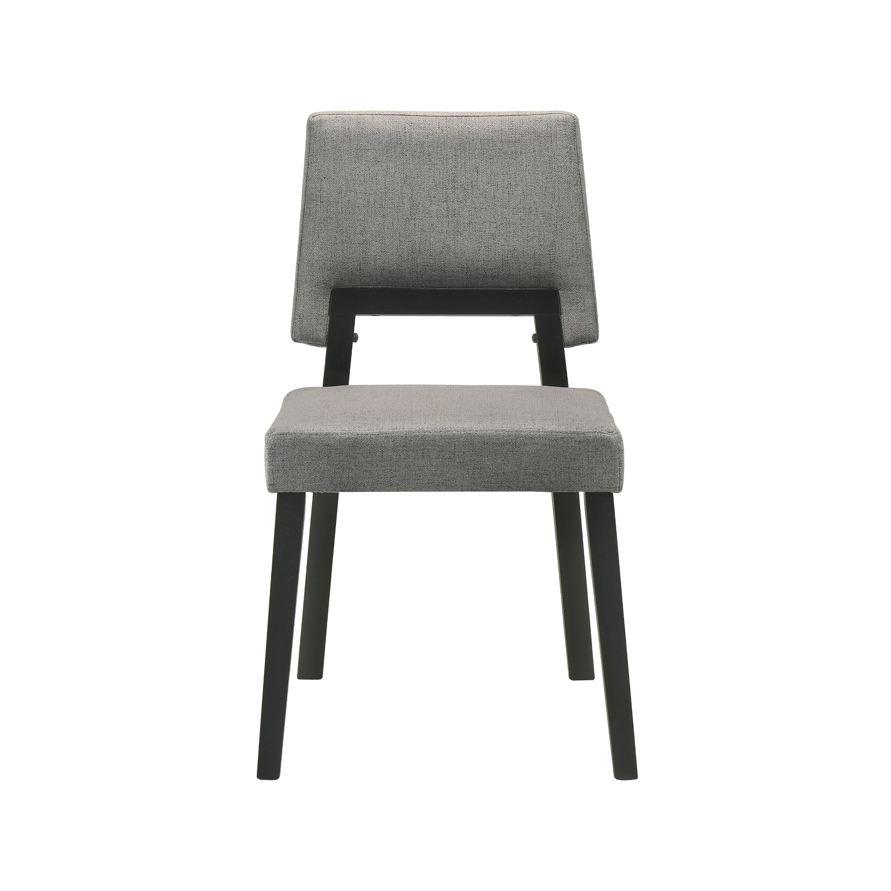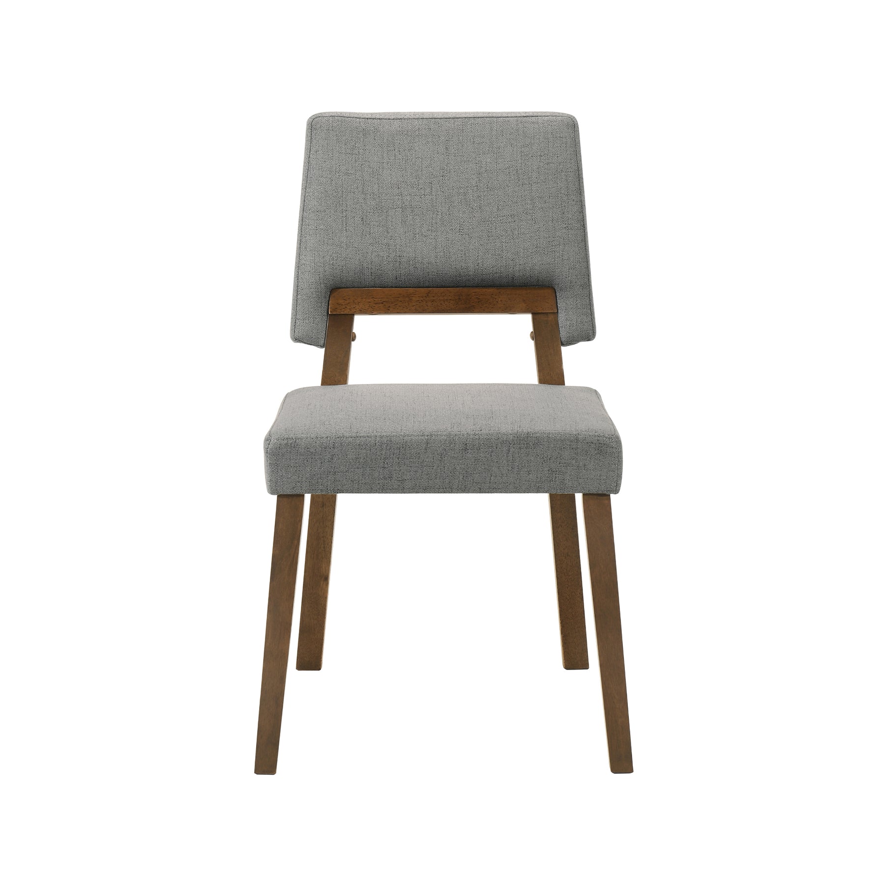 Give a sleek and stylish upgrade to your dining area with our Channell Upholstered Wood Dining Chairs. Defined by sleek proportions and elegant details, our dining room chairs remain an inviting and versatile addition to your modern home. Our neatly tailored chairs feature an upholstered back and seat to deliver a comfortable stay, it s opening offers breathability. The wooden frame and gracefully angled legs add to the elegance of our dining chair. They feature a subtly reclined back to pack comfort and functionality within the sleek armless design. The dining side chairs are perfectly sized for small spaces such as dorm rooms or apartments or can be a great way to entertain large gatherings. Transitioning from a dining chair to an accent or desk chair, it serves as a versatile addition to any home. These kitchen chairs are constructed from rubberwood to offer durability and easy maintenance. The Channell Wood Dining Chairs are available in your choice of a walnut finish with charcoal, blue, and orange fabric or black finish with charcoal fabric to attain the perfect look for your home. Sold as a set of 2.