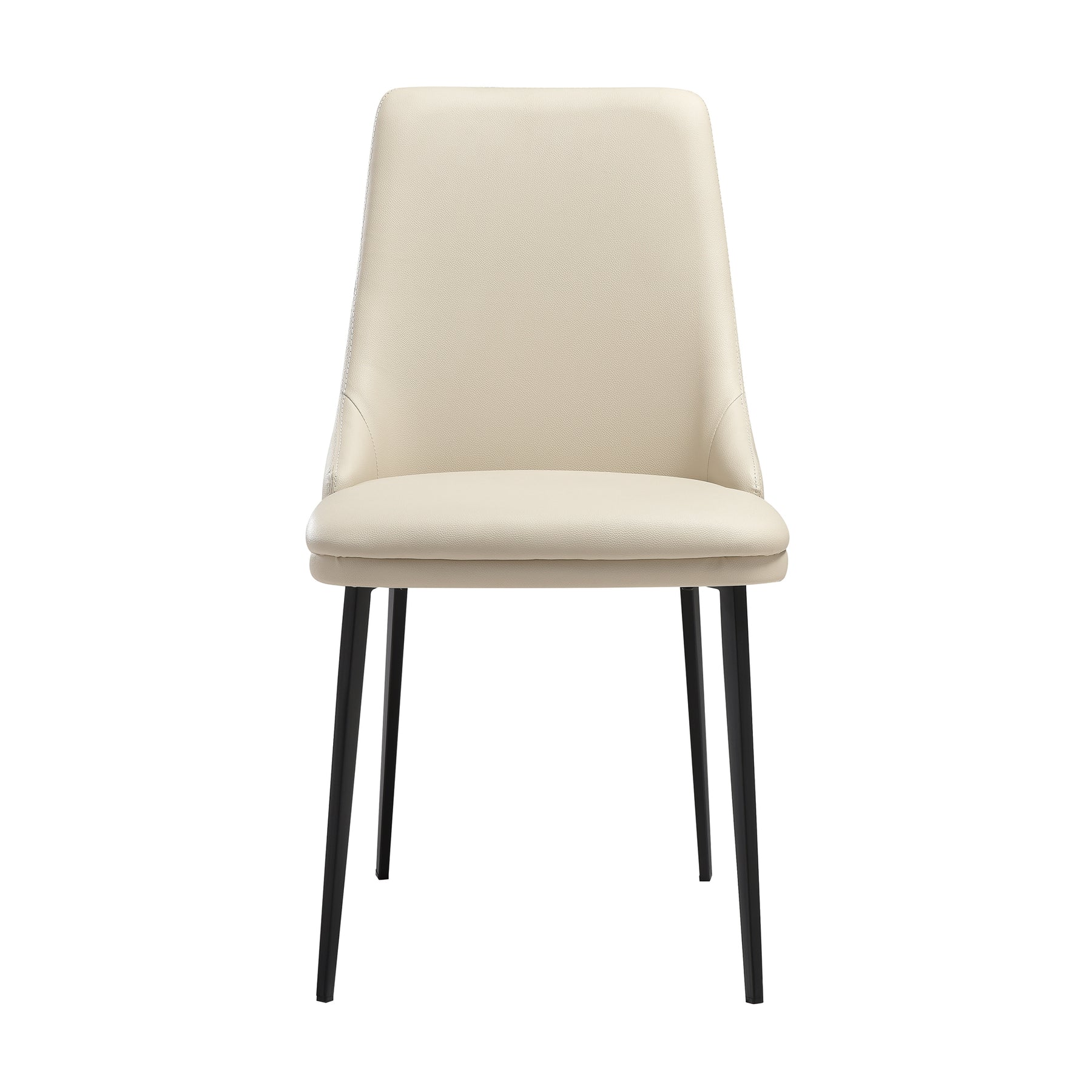 Lend sleek style and modern appeal to any room with our Genesis Upholstered Dining Chairs - Set of 2 in Faux Leather and Black Metal Legs. Refined and streamlined to perfection, this kitchen chair serves as a stylish fit for any modern or contemporary home. It features a beautifully sculpted back to attain a tailored and inviting look. Perched upon slender black metal legs, the Genesis dining room chair keeps your home looking airy and spacious. Its tall back beautifully widens at the bottom to provide exceptional lumbar support and comfort. Finished off with a padded seat, our dining table chair offers a comfortable seat anywhere in your dining room, kitchen, living area, or home office. The dining chair is upholstered in UV and stain-resistant faux leather which does not crack or fade easily to offer easy maintenance. The Genesis dining chair is available in Taupe Grey or Beige Faux Leather with Black Legs. These dining chairs are sold as a set of 2.Product Dimensions