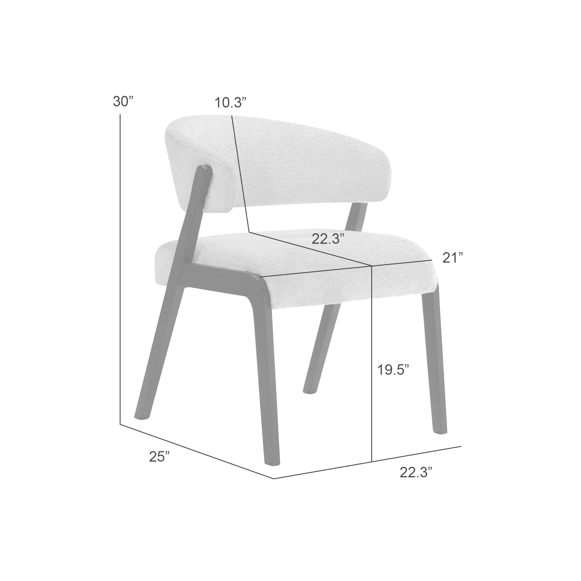 The Kimber Collection dining chairs are designed to bring a refined, modern presence to dining spaces while maintaining a soft, inviting feel. Defined by clean lines and thoughtful proportions, the chair features a low back silhouette with a gently sloped seat, offering comfortable support without adding visual bulk. This streamlined profile allows the chair to sit effortlessly around dining tables, making it an ideal choice for both everyday meals and special gatherings. Upholstered in plush, textured upholstery, the seat and backrest add warmth and tactile comfort to the design, creating a welcoming contrast against the black stained wood frame. The upholstery wraps both the seating surface and backrest, enhancing comfort while reinforcing the chair’s cohesive, tailored look. The light upholstery helps brighten the dining area, while the dark frame grounds the design with a modern, architectural edge. The base features a sled-style leg design, giving the chair a stable, continuous stance while contributing to its contemporary character. The sled profile adds visual flow and allows the chair to feel sturdy yet visually light. Designed without arms, the Kimber dining chair offers flexibility and ease of movement, making it easy to tuck neatly under dining tables and accommodate various seating arrangements. With its balanced proportions, contrasting finishes, and understated elegance, the Kimber Collection dining chair complements modern, contemporary, and transitional interiors alike. Assembly is required, and the chair is designed for straightforward setup before use, delivering everyday comfort wrapped in a clean, confident design.Product Dimensions