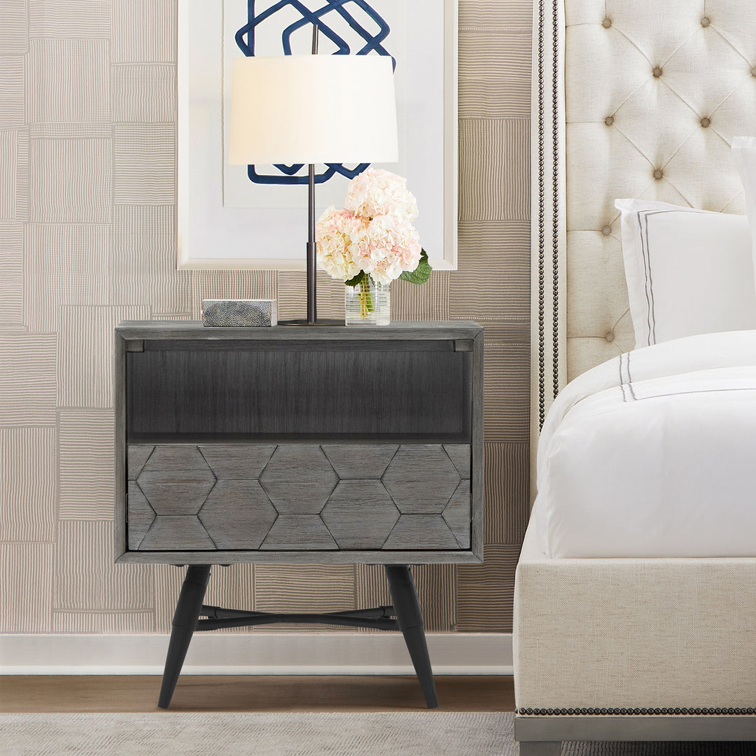 Petra 1 Drawer Wood Nightstand in Black Finish