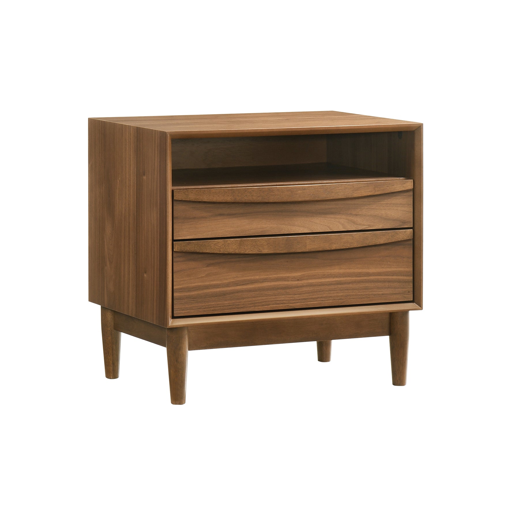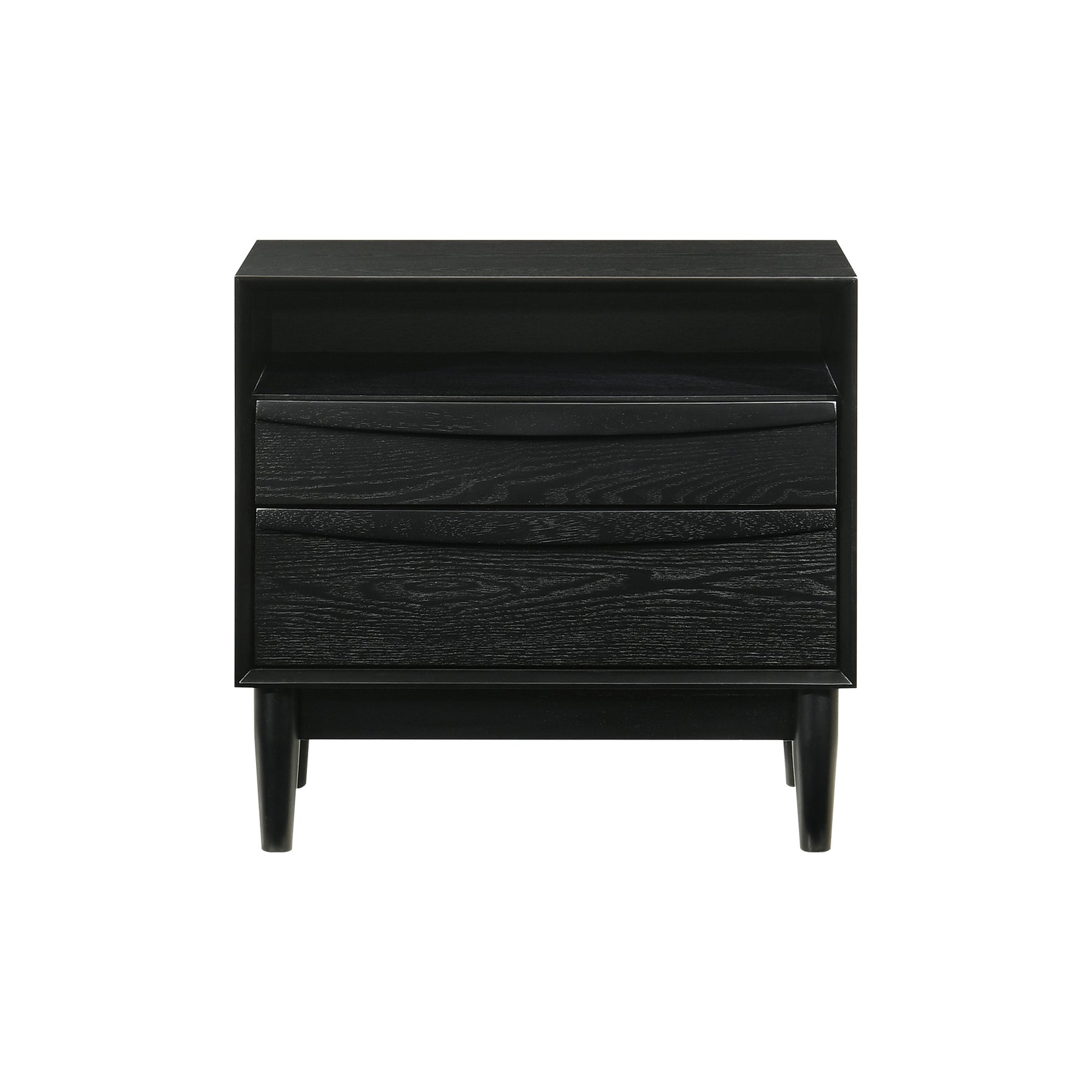 Elevate your home with the timeless aesthetics and charm of our Artemio Wood Nightstand. Our nightstand features a refined and functional design that beautifully highlights the rich textures of wood. Its minimalistic silhouette is complemented with linear undercut drawer pulls to serve as a stunning design detail. Bringing effortless charm and character to your home, the side table seamlessly blends and complements any style or decor. From a stylish and functional bedside table, it is perfectly scaled to provide a handy surface and convenient storage for your living area or office as an end table. The nightstand combines durable construction with easy maintenance to serve you for years to come. The Artemio Wood Nightstand is available in a rich walnut or a sleek black wood finish to perfectly befit your home. Featuring two roomy drawers and a shelf, our night stand is perfect for keeping your essentials organized and within easy reach.Product Dimensions