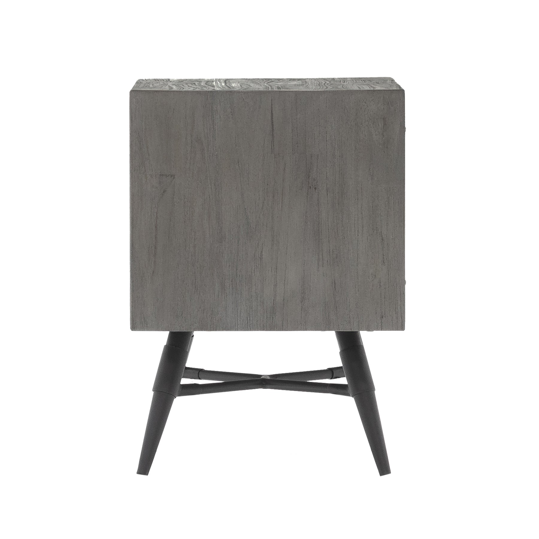 Add sleek style to your bedside with our Makena one-drawer nightstand in grey Acacia wood. The modern and streamlined silhouette of the nightstand is enlivened with a geometric honeycomb pattern. Featuring a sleek grey finish, it beautifully showcases the rich grains of Acacia. Your alarm clock, bedside lamp, glass of water, or phone is only an arm s reach away while you snuggle into your blankets for a night s rest with the Makena nightstand. The nightstand is elevated upon a graceful black metallic base to make a playful and elegant statement in any setting. Acacia wood is a popular choice for furniture because it has many advantages over other types of hardwood. The strength-to-weight ratio of acacia wood is one of the best in the world, making it perfect for furniture that needs to be lightweight but still durable. It is resistant to moisture and pests and does not warp. If you are looking for a durable, long-lasting material for your furniture, then acacia wood is worth considering. It includes an open shelf and drawer to keep your essentials organized and within easy reach. Blending seamlessly with your existing home décor, this nightstand can serve as a bedside storage piece, end table for your living room, or additional file space in your home office.Product Dimensions