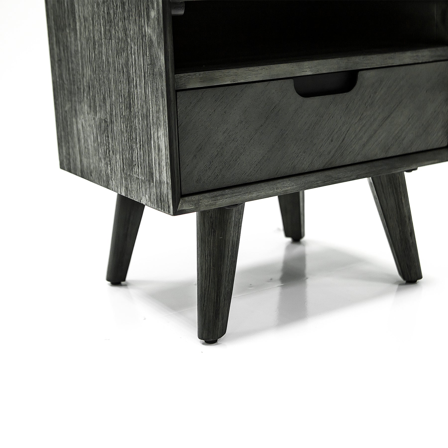 The Armen living Mohave mid-century Tundra Gray acacia nightstand is an aesthetic blend of minimalist and mid-century design. The dresser features a soft close drawer, for to satisfy your storage needs. This wood nightstand features an easy wipe clean acacia wood top with an intricately. The minimalist look extends to the handles, where they are built into the drawer faces themselves. The beautiful tapered legs are tipped with rubber caps to prevent sliding on and scratching floors. We stand by the quality, the craftsmanship, and the integrity of our product by offering a 1-year warranty for all our products. We want our customers to enjoy our product and we will always be there to help with our top-notch customer service support.Product Dimensions