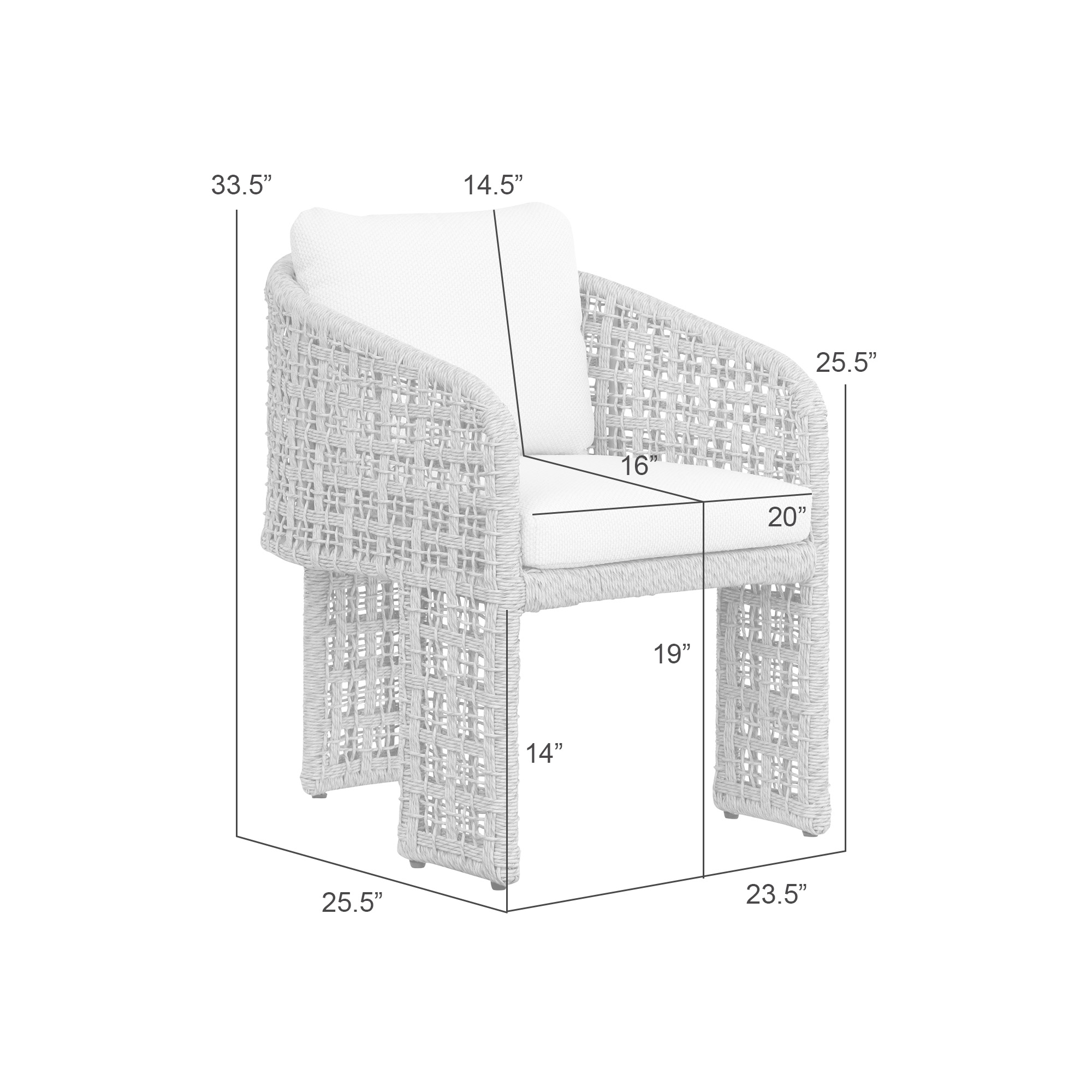 Refine your outdoor dining experience with the Driftbay Dining Chair. Featuring a natural woven rope frame and cushioned white boucle seat and back, it combines coastal textures with tailored comfort. Ideal for long outdoor dinners, this chair brings relaxed elegance to any patio or deck.Product Dimensions