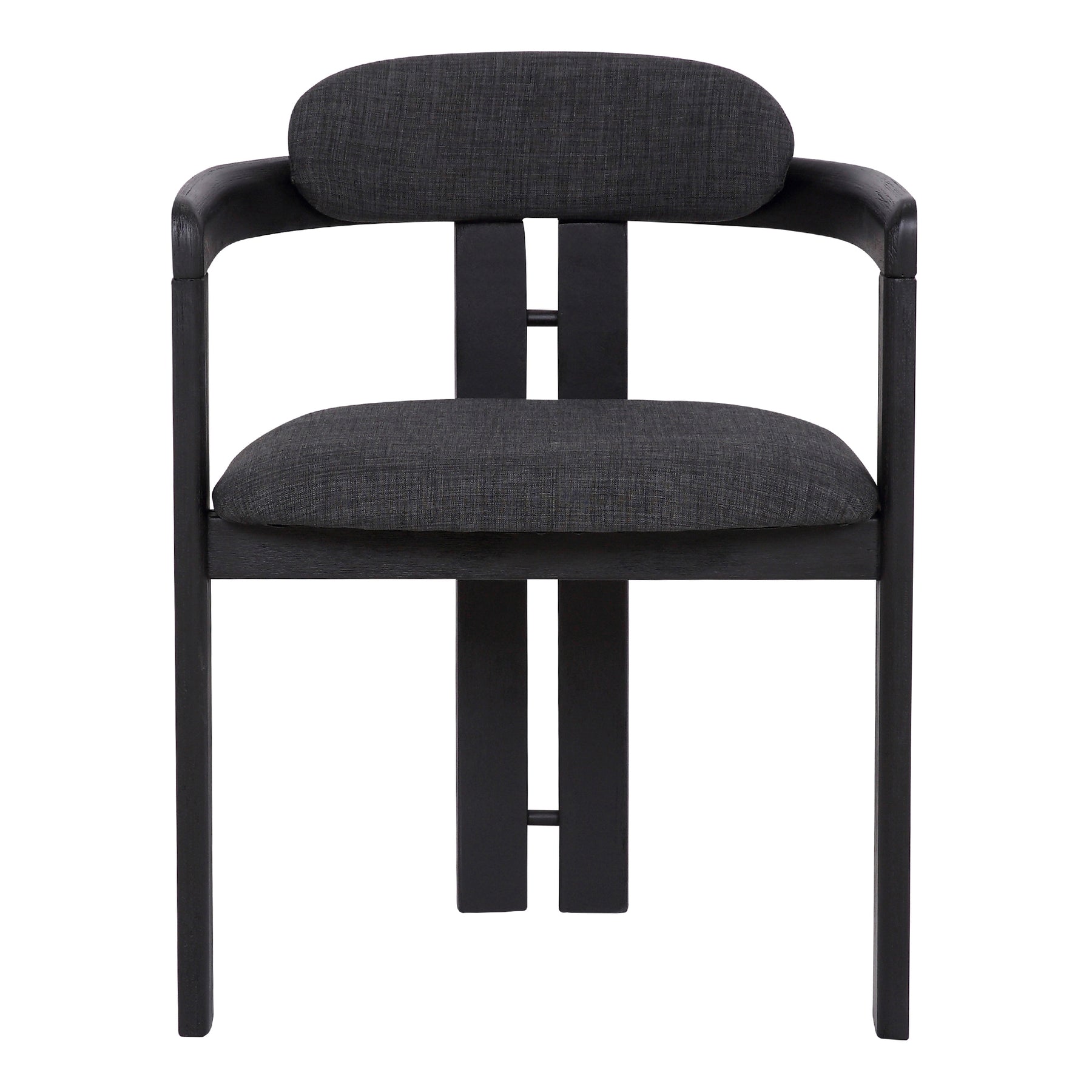 The Armen Living Jazmin contemporary dining chair features a unique frame design that is guaranteed to enhance the beauty of your modern household. The Jazmin's impressive wooden frame features a 3 leg base design and tall arms which serve as stylish contemporary accents. The chair's modern Charcoal Fabric upholstery is stuffed with concentrated foam which provides excellent seat and back padding. Though a wonderful choice for the dining or living room, the Jazmin's versatile design allows it to function well as additional seating in just about any room of the house. The stylish Jazmine chair is available in your choice of either a Black Brush or Walnut wood finished frame.Product Dimensions