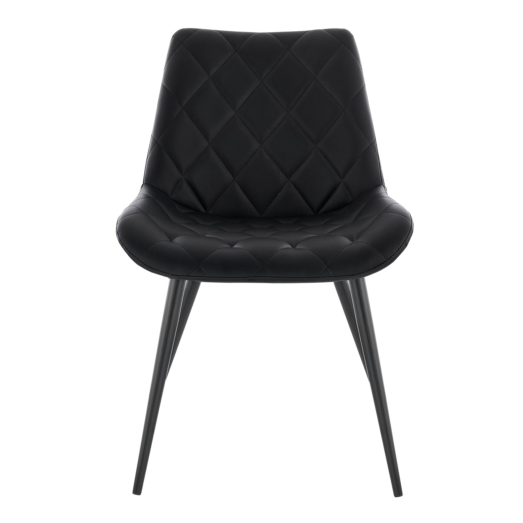 The Loralie Black Faux Leather and Black Metal Dining Room Chairs from Armen Living is a wonderful addition to bring into any home! The thick diamond stitch design adds refinement and an alluring appeal to this chair. The wide seat is beyond comfortable and the rounded ends on the seat keep you intact and secure. The metal frame is stable and strong - adding longevity to this piece and giving you extra years of enjoyment. The Loralie is available in your color choice of Gray or black faux leather. The Loralie dining chairs come as a set of 2 and can support up to 250lbs per seat.Product Dimensions