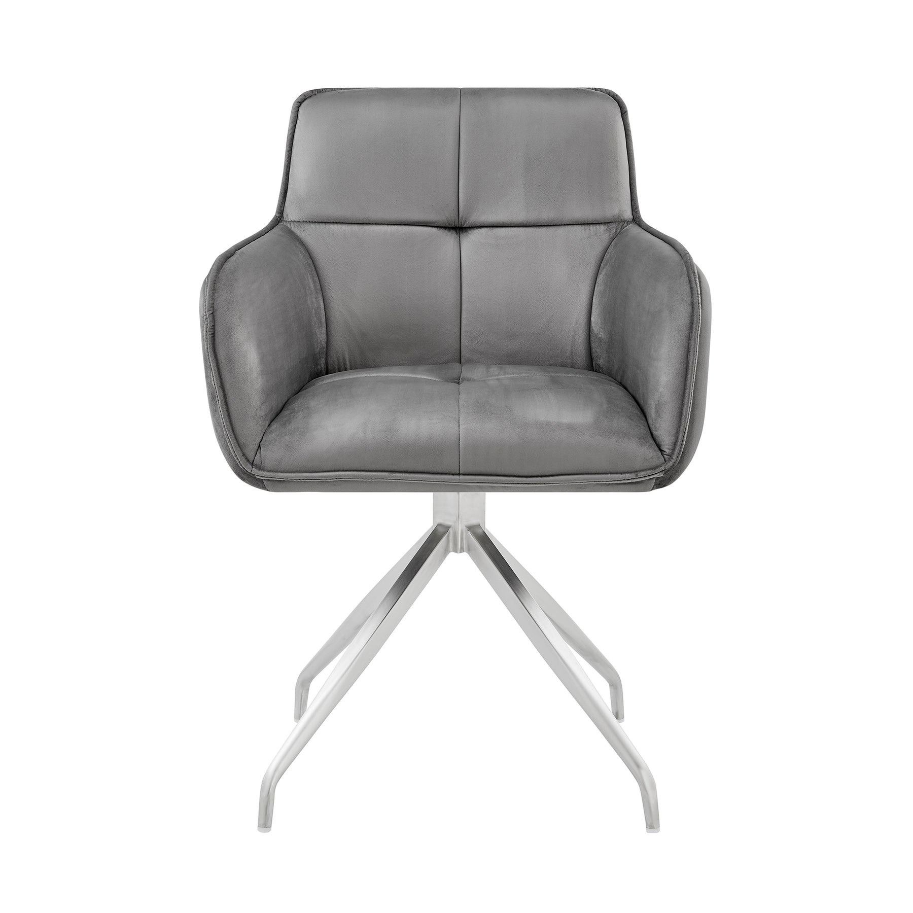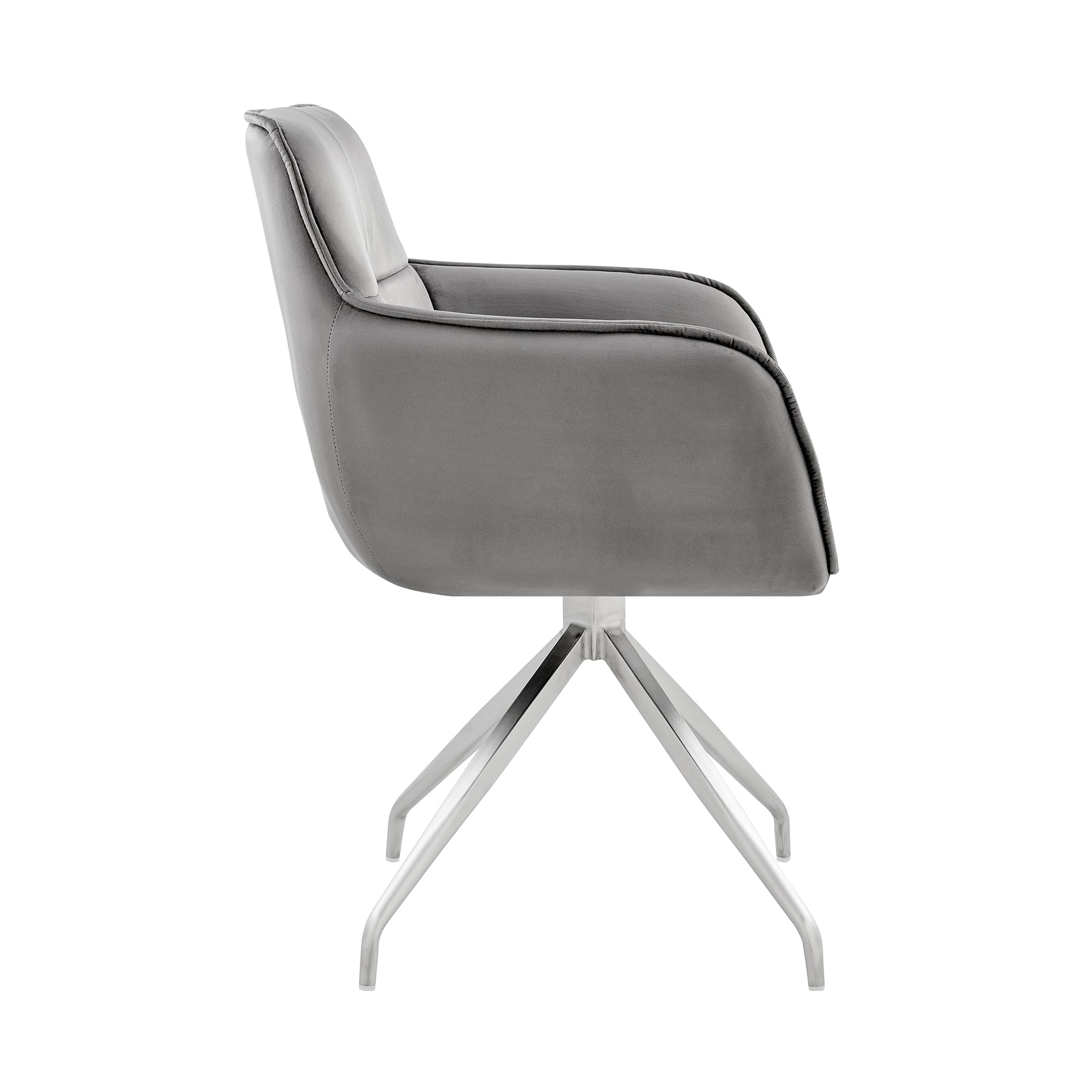 The Noah Dining Room Accent Chair in Blue Velvet and Brushed Stainless Steel Finish from Armen Living is the definition of comfortable! The plush and incredibly comfortable foam-padded cushion will make you never want to leave your seat. The prevalent geometric lines sewn throughout the chair are a sight to behold within themselves. The fabric upholstery is soft and sleek and is perfectly accented by the stainless-steel highlights of the chair. Use the Noah in your dining room, kitchen, home office, bedroom, or living room as an accent chair. The Noah is available in Blue Velvet, Gray Velvet, or Charcoal Fabric upholstery and are all accompanied by a fashionable brushed stainless-steel base.Product Dimensions