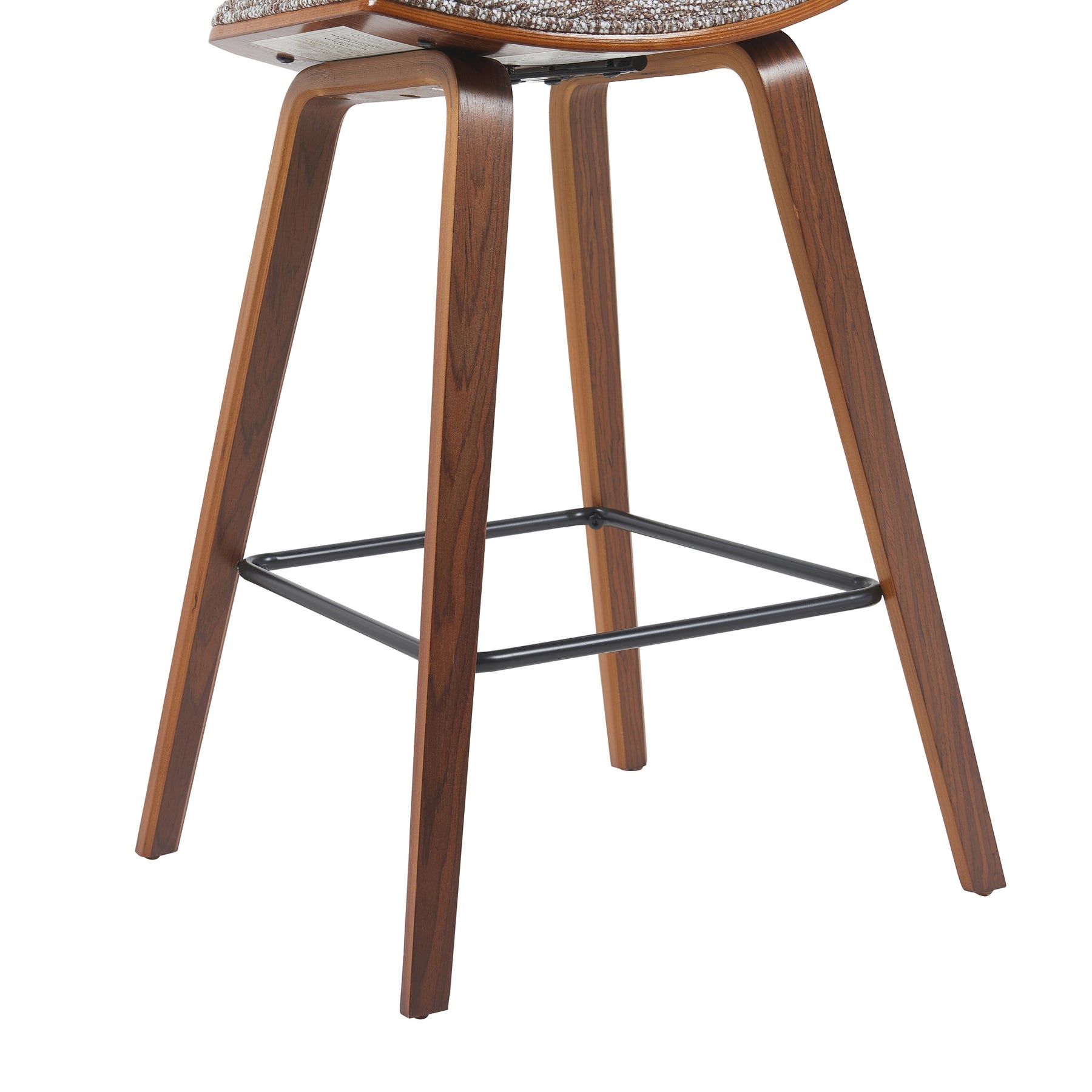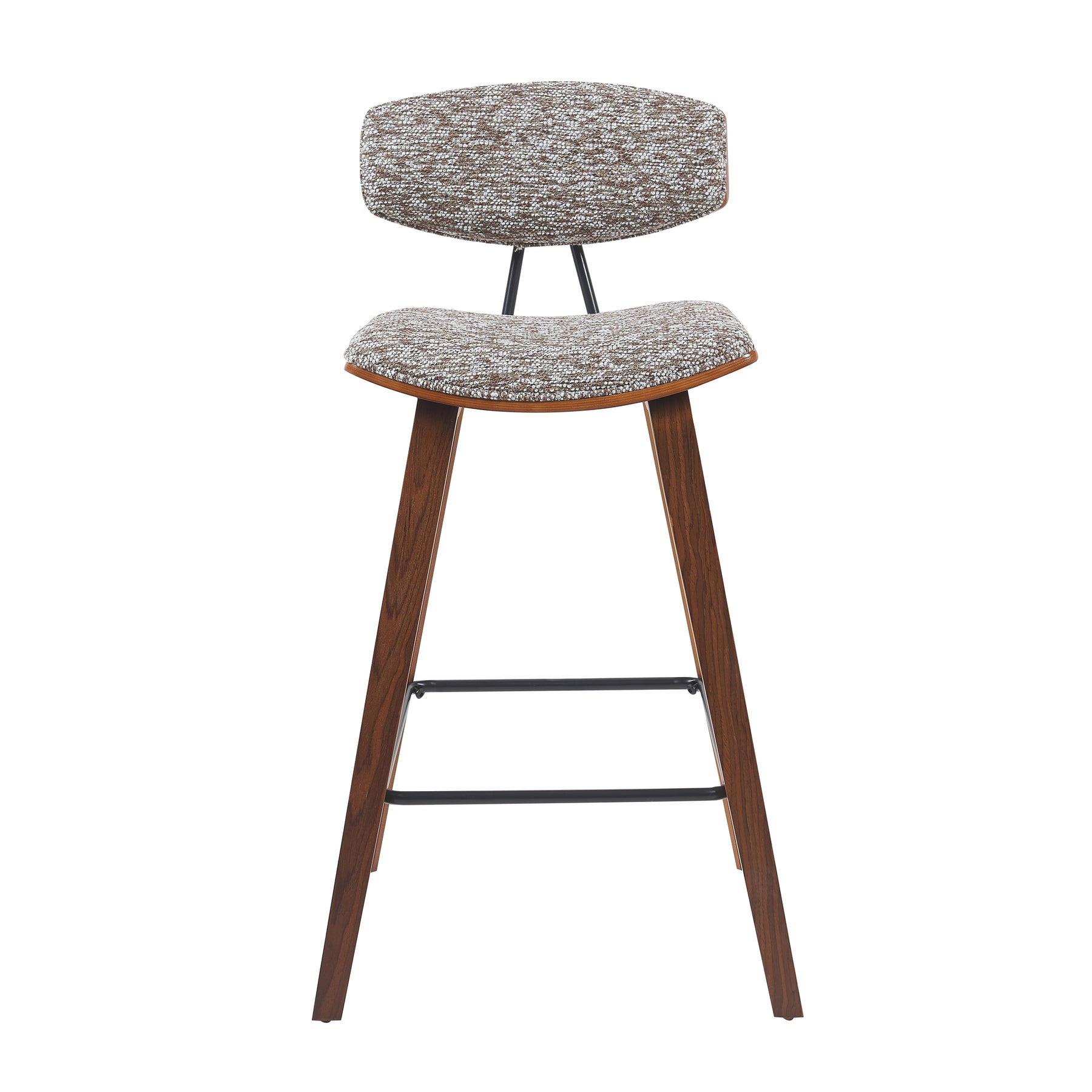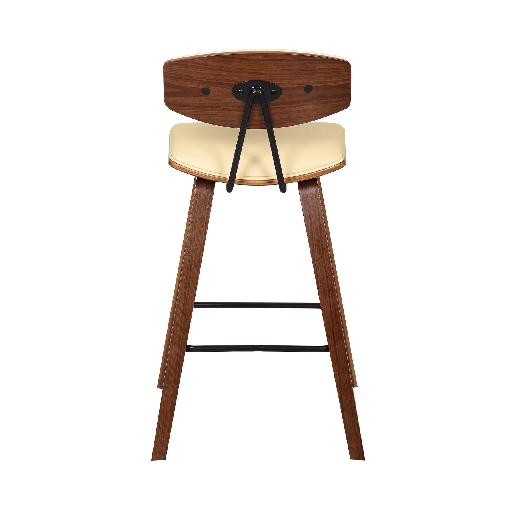 Whether drawn up to a sleek kitchen island for a breakfast nook or rounding out your home bar with a perfect perch, a bar stool like this is a versatile seating solution with sleek modern style. The Armen Living Fox 25.5" Counter Height Brown Faux Leather and Walnut Wood Mid-Century Modern Bar Stool is a sophisticated and functional modern piece certain to enhance the aesthetic of any style home or apartment. The high-density foam cushioned back, and seat will allow endless hours of entertaining or lounging. The curved wood medium high back with padded support is ideal for posture alignment and an unmatched support for days on end. The foundation of the product is supported by wood and steel footrest for a chic and stylish aesthetic without comprising practicality and functionality of this item. The Mid-Century Modern style silhouette gives you a timeless look with the durability to last for many years to come. Available in your choice of a 25.5Â or 28.5Â seat height, you can easily incorporate this stool into your kitchen, dining room, home bar, or office! The Fox Faux Leather and Wood Bar Stool is available in your choice of a black wood finish with black or grey faux leather upholstery or a walnut wood finish with cream, brown, or grey faux leather upholstery.Product Dimensions