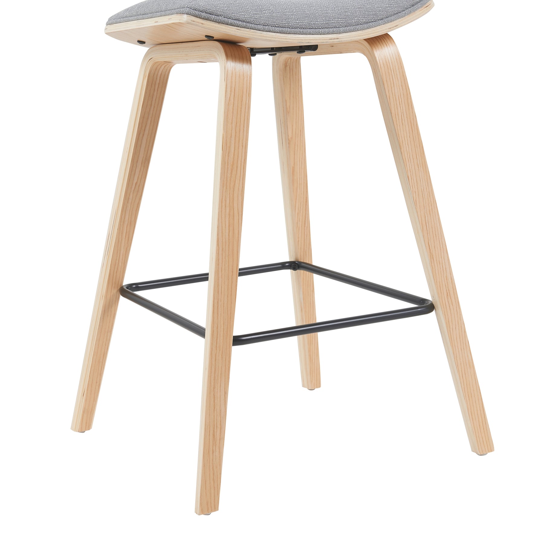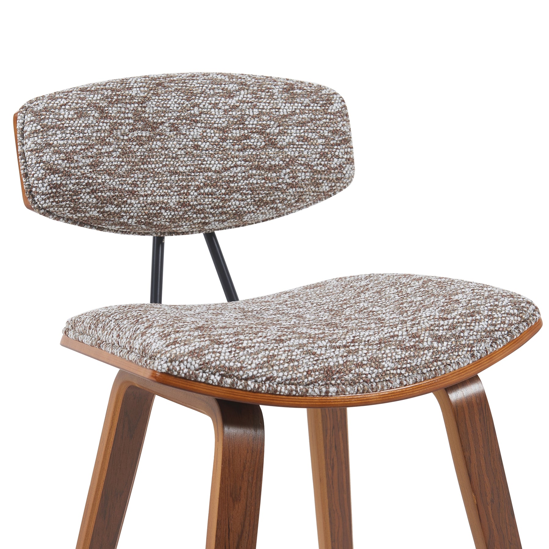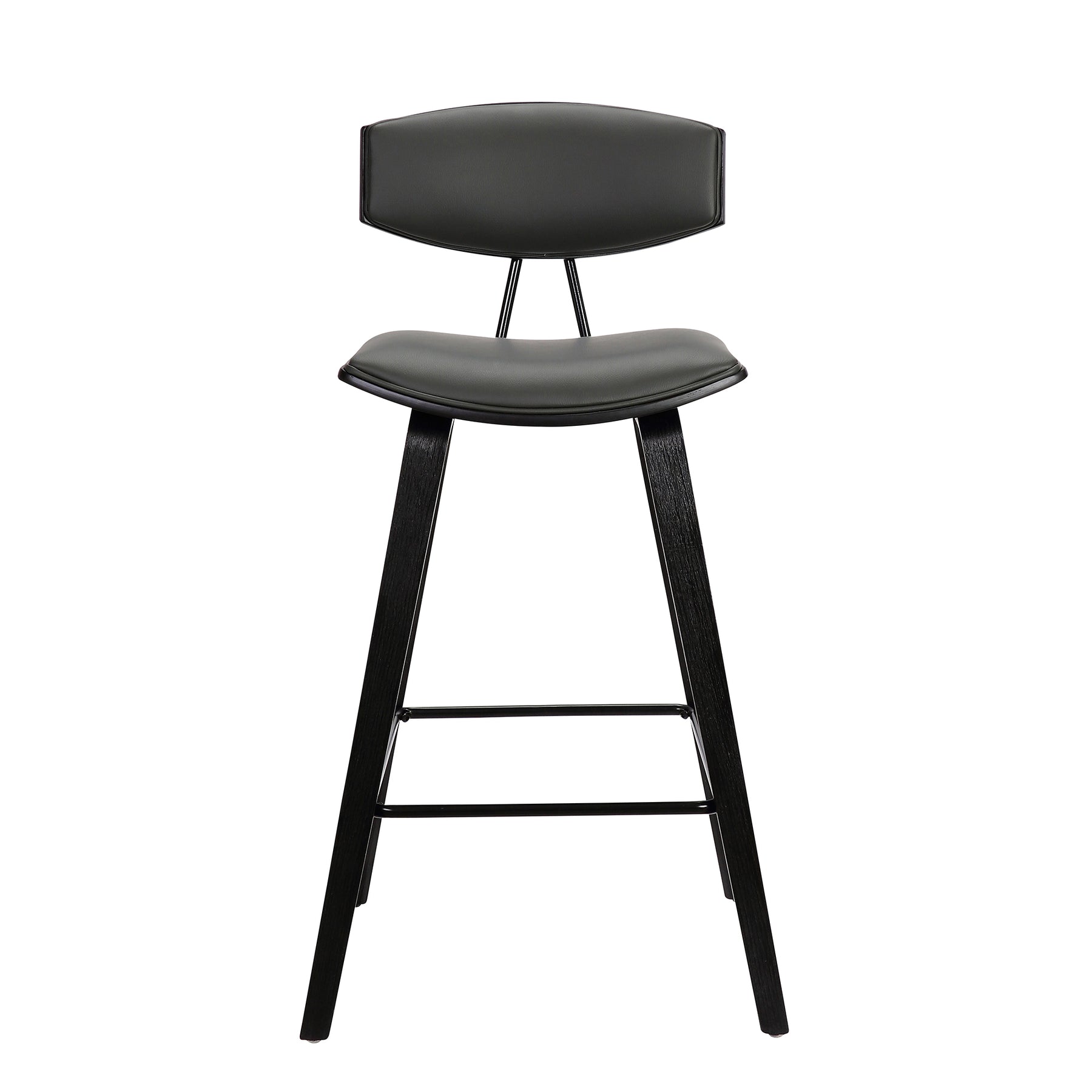 Whether drawn up to a sleek kitchen island for a breakfast nook or rounding out your home bar with a perfect perch, a bar stool like this is a versatile seating solution with sleek modern style. The Armen Living Fox 25.5" Counter Height Brown Faux Leather and Walnut Wood Mid-Century Modern Bar Stool is a sophisticated and functional modern piece certain to enhance the aesthetic of any style home or apartment. The high-density foam cushioned back, and seat will allow endless hours of entertaining or lounging. The curved wood medium high back with padded support is ideal for posture alignment and an unmatched support for days on end. The foundation of the product is supported by wood and steel footrest for a chic and stylish aesthetic without comprising practicality and functionality of this item. The Mid-Century Modern style silhouette gives you a timeless look with the durability to last for many years to come. Available in your choice of a 25.5Â or 28.5Â seat height, you can easily incorporate this stool into your kitchen, dining room, home bar, or office! The Fox Faux Leather and Wood Bar Stool is available in your choice of a black wood finish with black or grey faux leather upholstery or a walnut wood finish with cream, brown, or grey faux leather upholstery.Product Dimensions