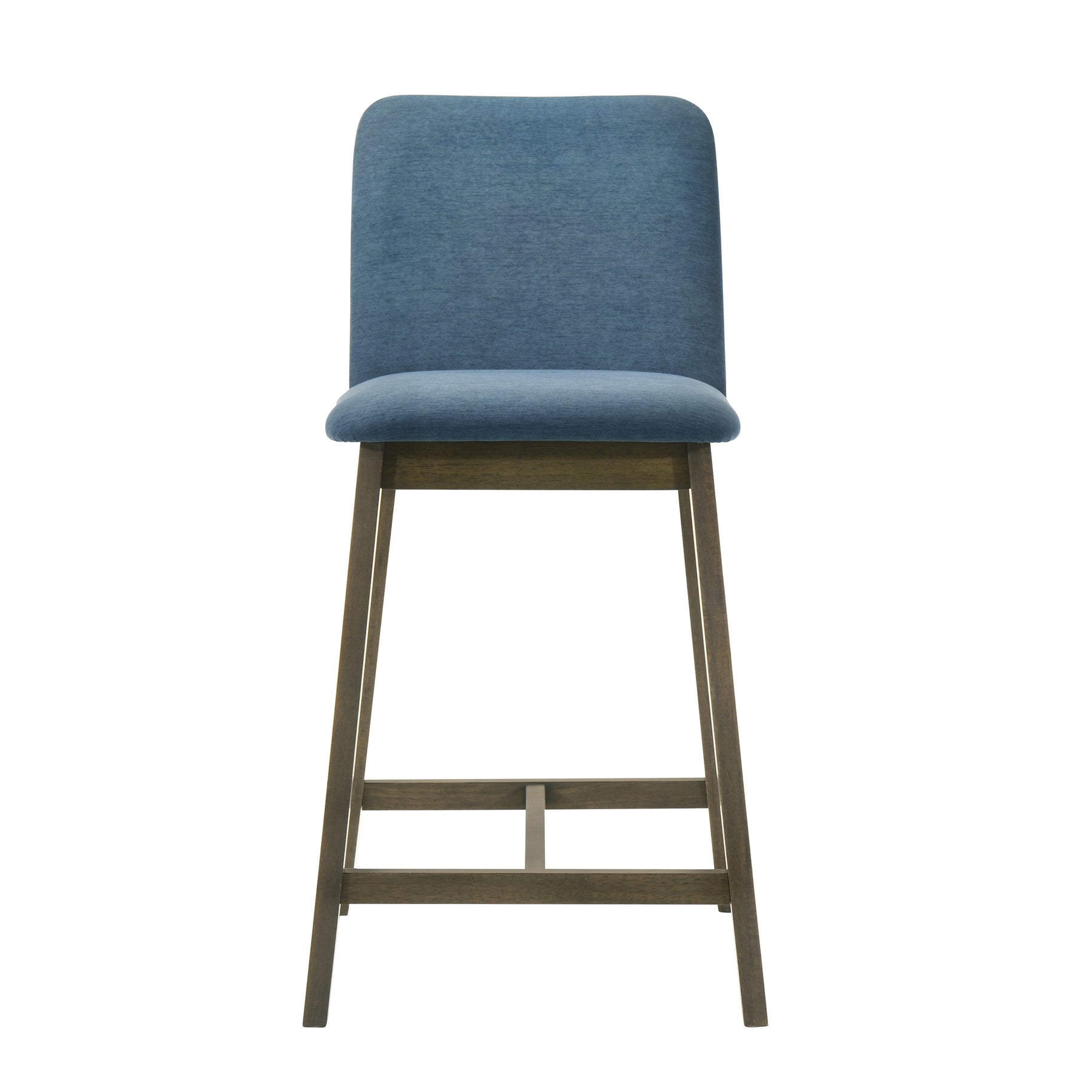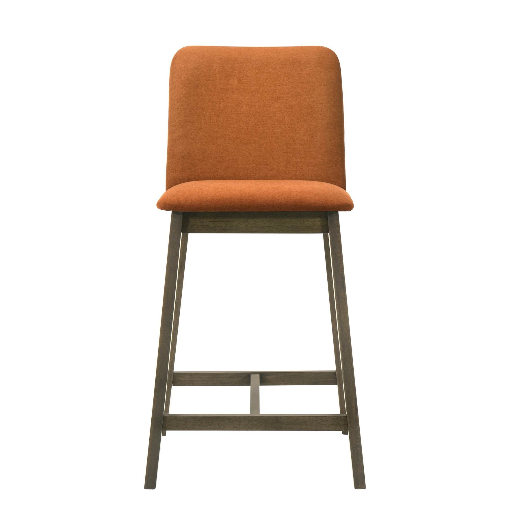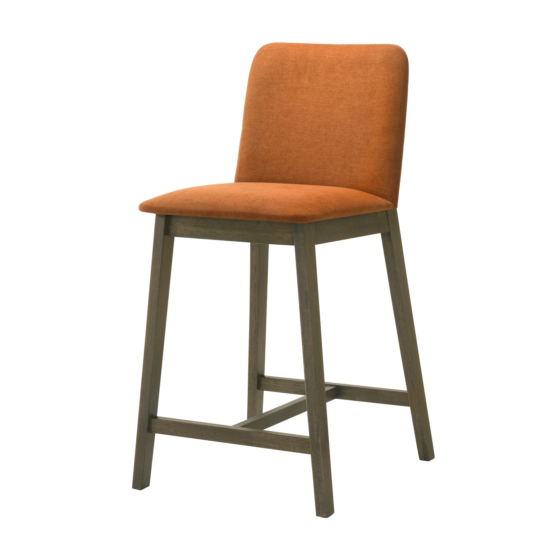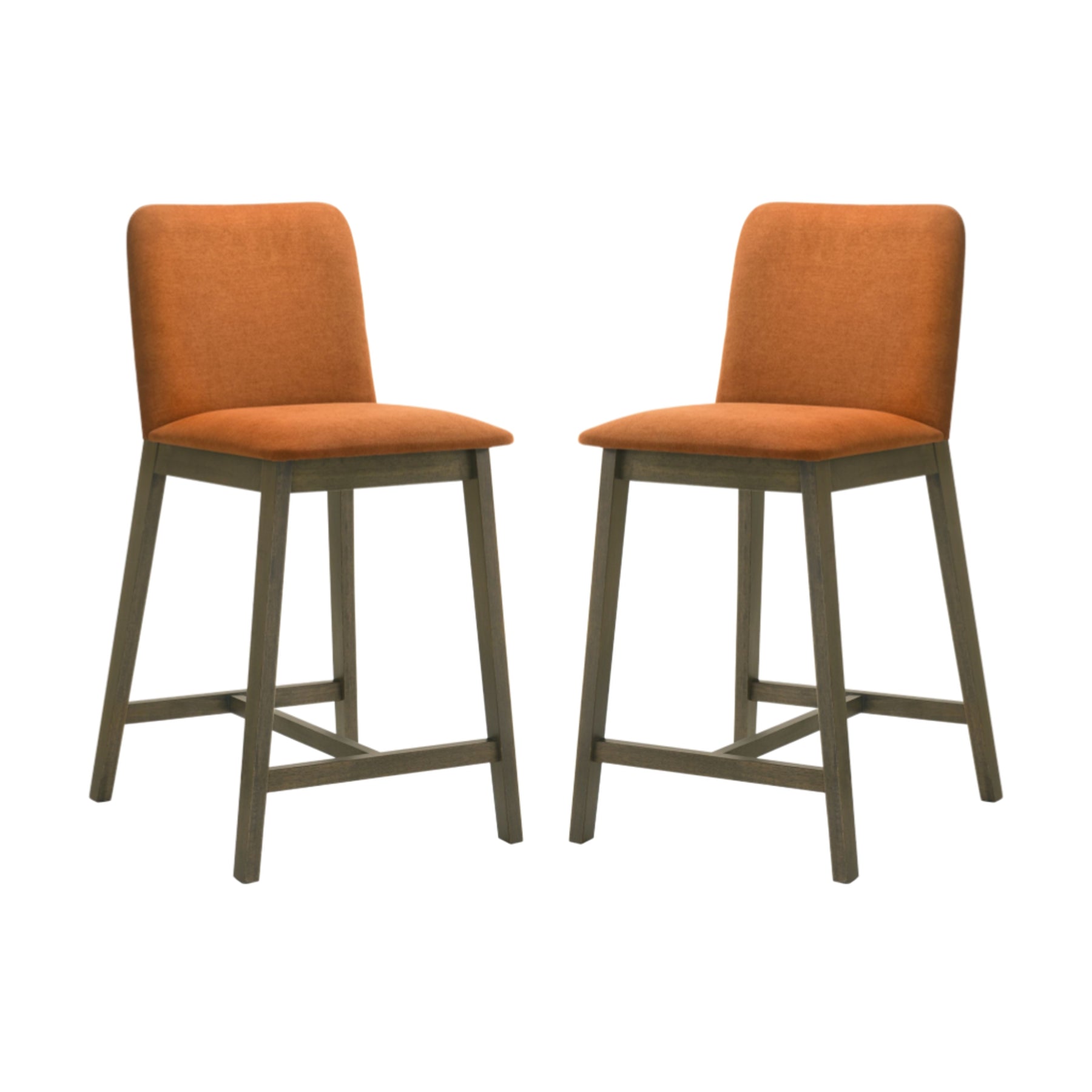 The Allin Collection barstools offer a more structured and supportive seating option for kitchen islands and dining counters. Built with a solid wood frame finished in a rich stained tone, each stool combines stability with a refined, furniture-inspired presence. The collection features a high back silhouette with a clean, squared profile, providing added support and a more tailored look. Upholstered in soft fabric seating with comfortable cushioning, the Allin Collection is designed for relaxed seating during meals, entertaining, and everyday use. These barstools are available in a curated range of colors, including Green, Yellow, Grey, Orange, and Blue, making it easy to add either subtle warmth or a bold accent to your space. The cushioned seat and supportive back encourage comfortable posture, especially during longer gatherings. With a fixed, non-swivel design and no arms, the ALLIN Collection maintains a streamlined appearance that integrates easily into a variety of layouts. The base is defined by sled-style legs paired with a cross base, creating a grounded, architectural look while enhancing stability. An integrated footrest adds comfort, while adjustable leg levelers help ensure balance on uneven flooring. Finished in a matte stained wood look, the Allin Collection combines comfort, structure, and everyday functionality.Product Dimensions