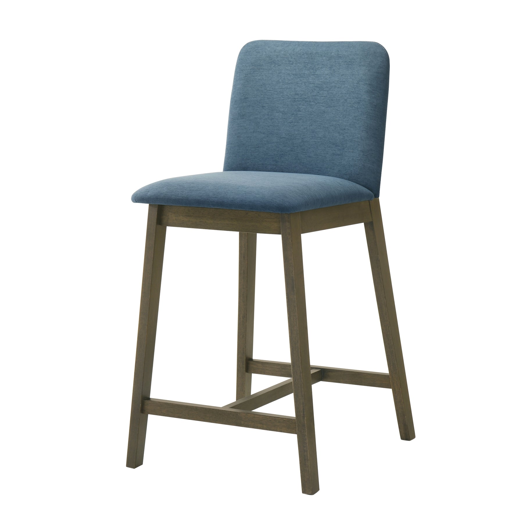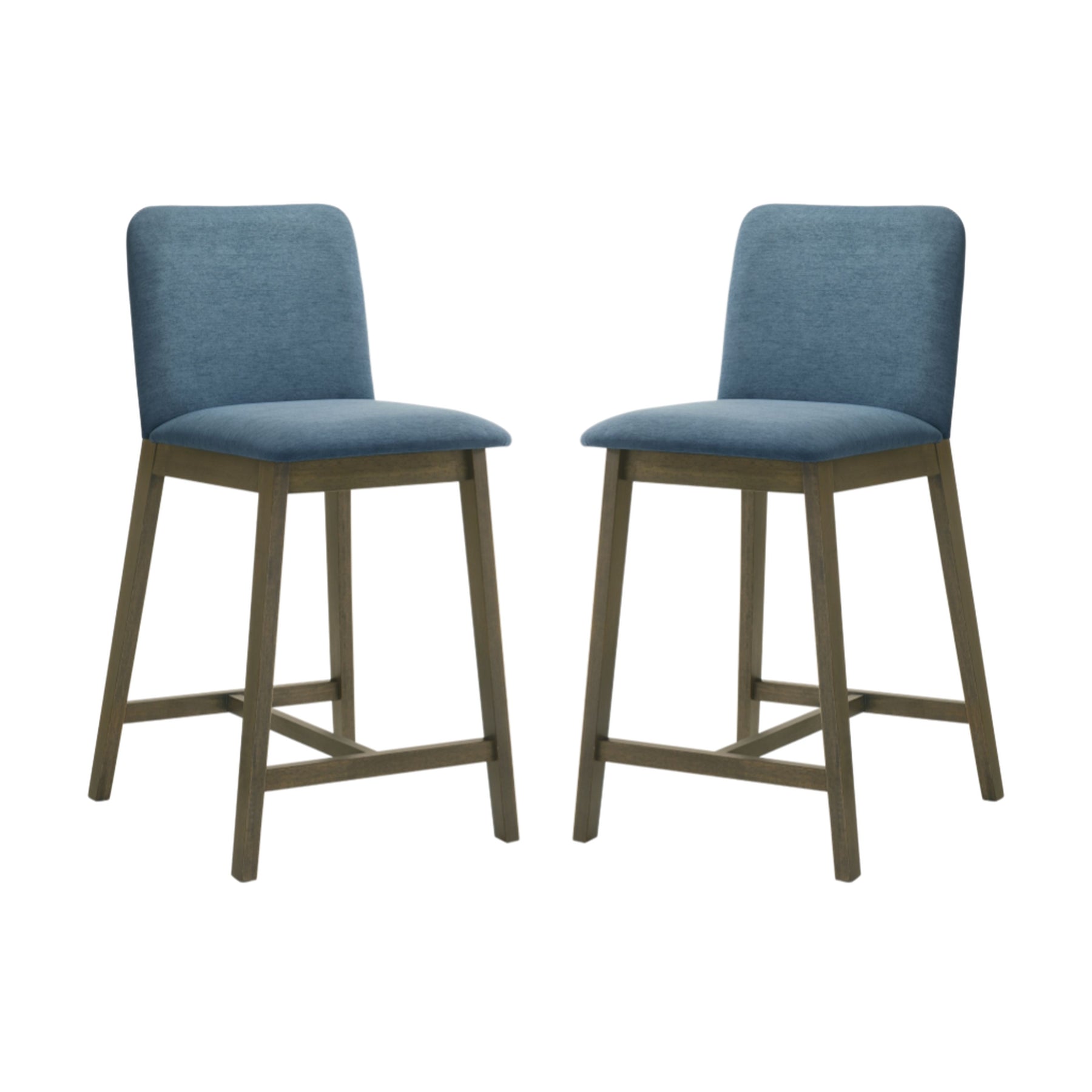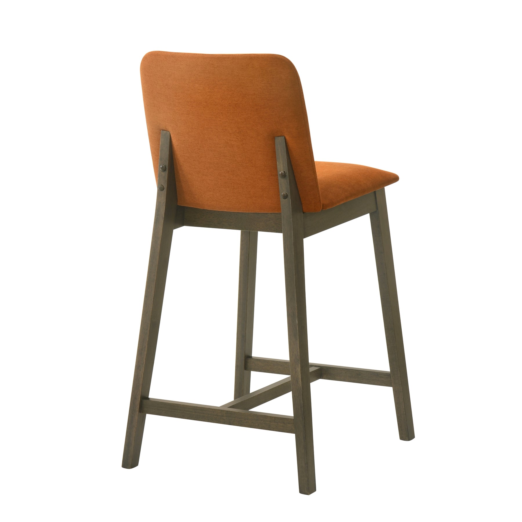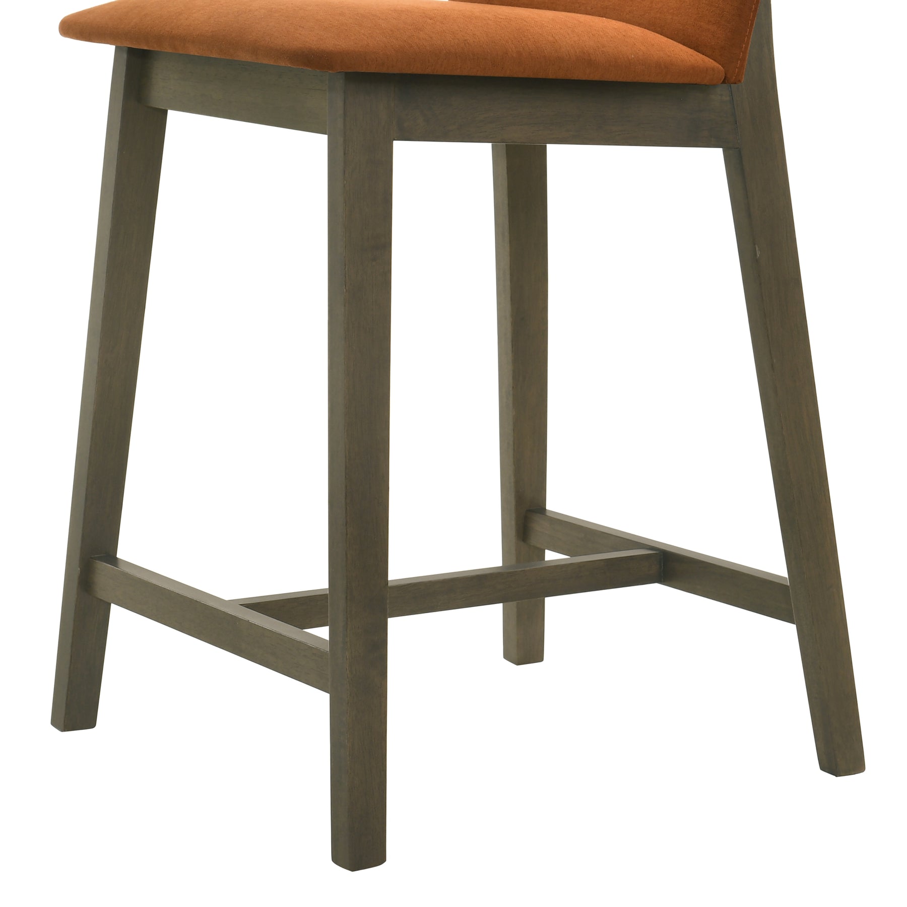 The Allin Collection barstools offer a more structured and supportive seating option for kitchen islands and dining counters. Built with a solid wood frame finished in a rich stained tone, each stool combines stability with a refined, furniture-inspired presence. The collection features a high back silhouette with a clean, squared profile, providing added support and a more tailored look. Upholstered in soft fabric seating with comfortable cushioning, the Allin Collection is designed for relaxed seating during meals, entertaining, and everyday use. These barstools are available in a curated range of colors, including Green, Yellow, Grey, Orange, and Blue, making it easy to add either subtle warmth or a bold accent to your space. The cushioned seat and supportive back encourage comfortable posture, especially during longer gatherings. With a fixed, non-swivel design and no arms, the ALLIN Collection maintains a streamlined appearance that integrates easily into a variety of layouts. The base is defined by sled-style legs paired with a cross base, creating a grounded, architectural look while enhancing stability. An integrated footrest adds comfort, while adjustable leg levelers help ensure balance on uneven flooring. Finished in a matte stained wood look, the Allin Collection combines comfort, structure, and everyday functionality.Product Dimensions