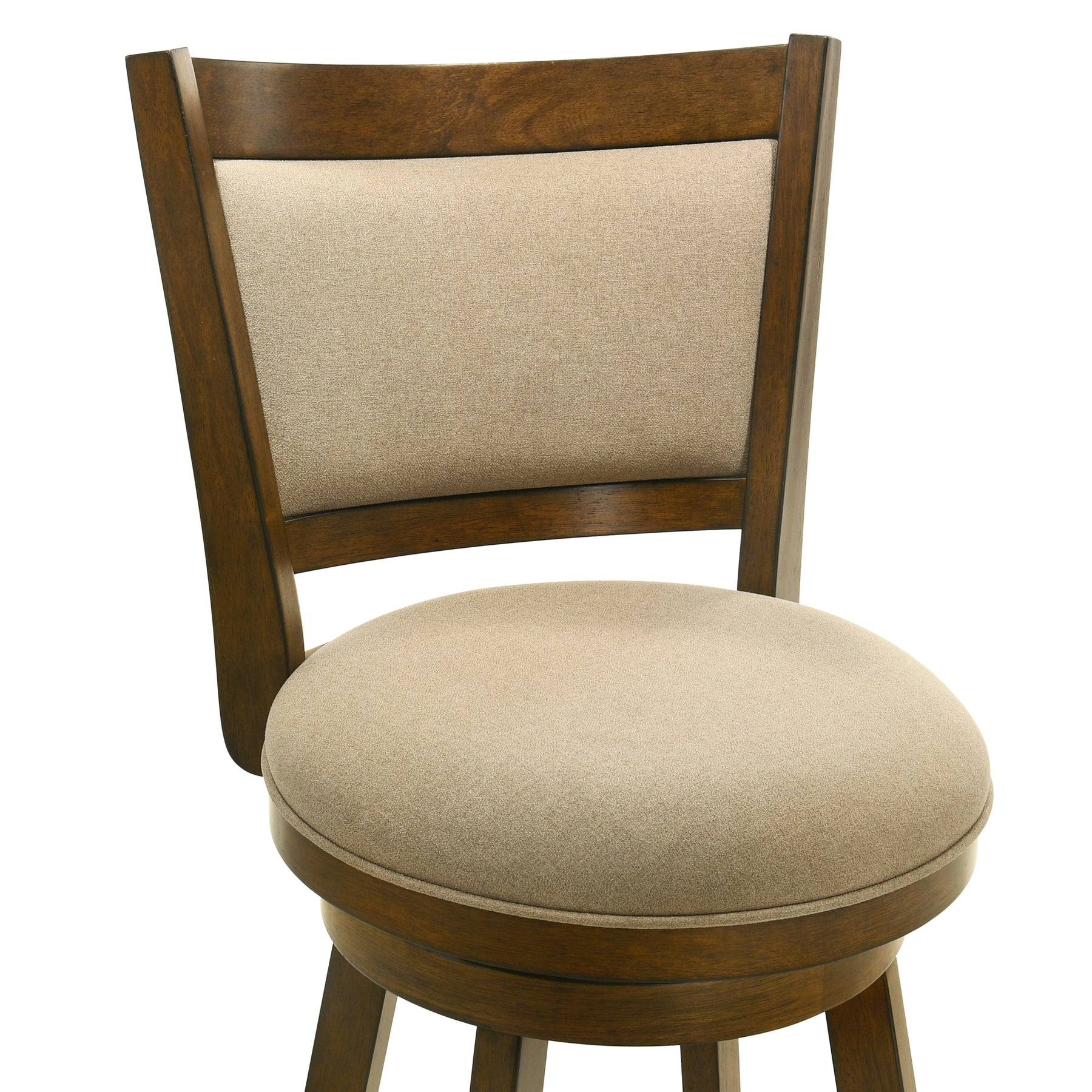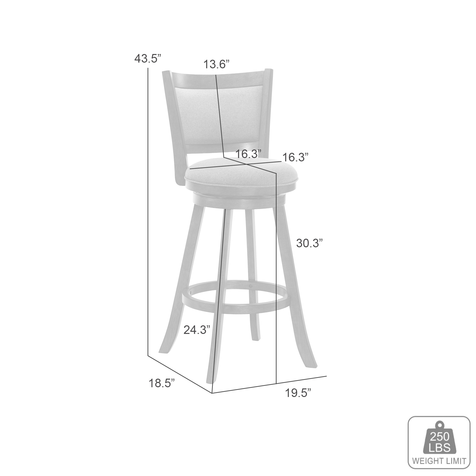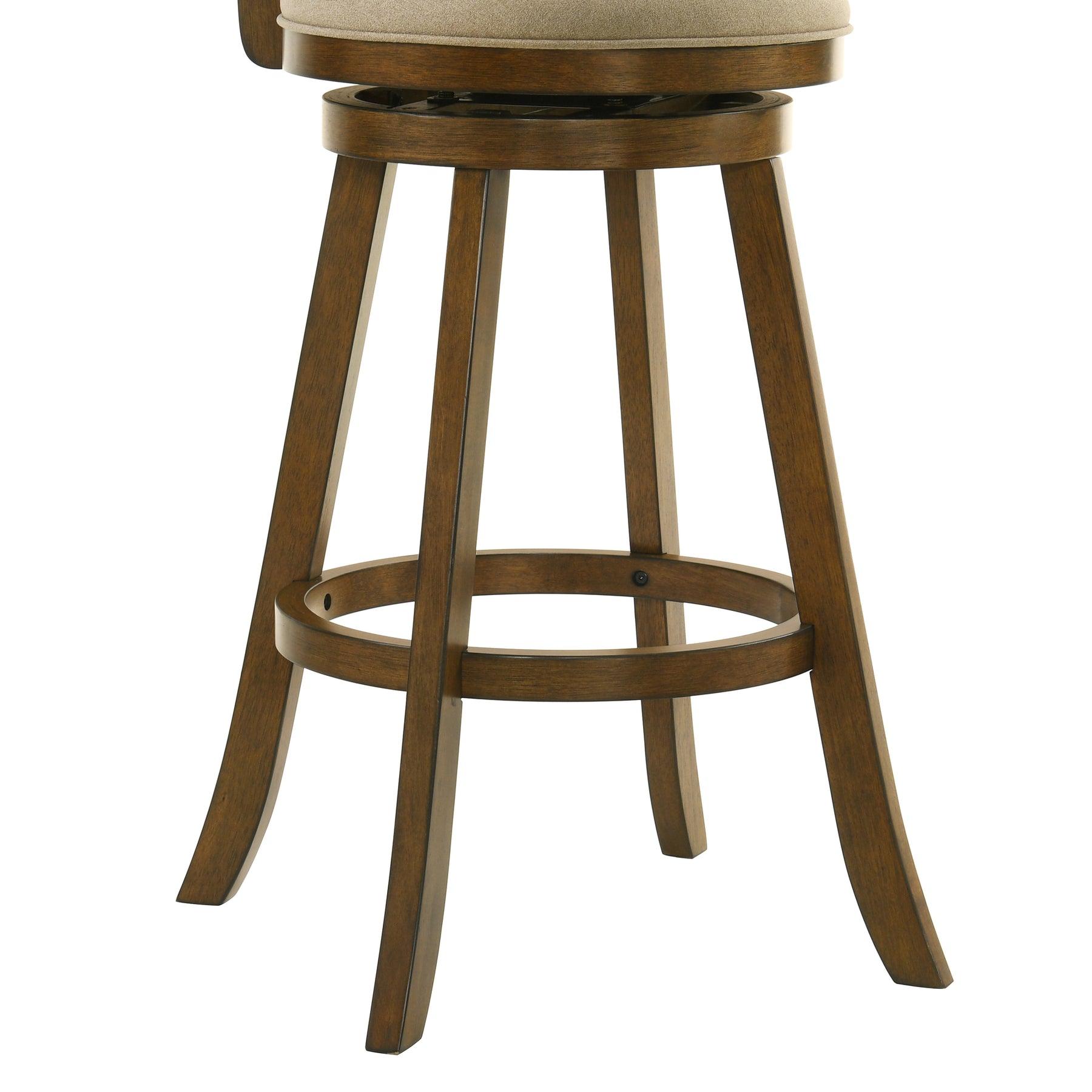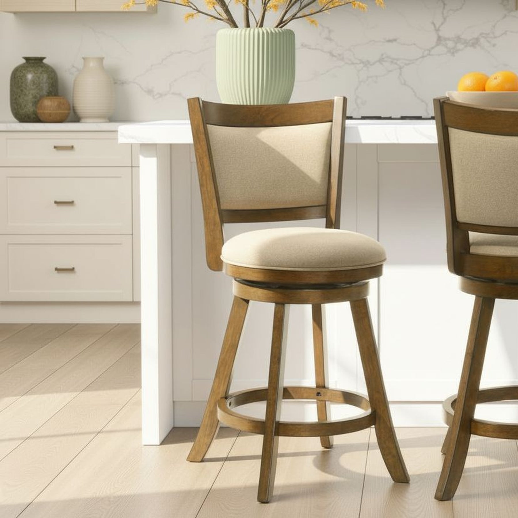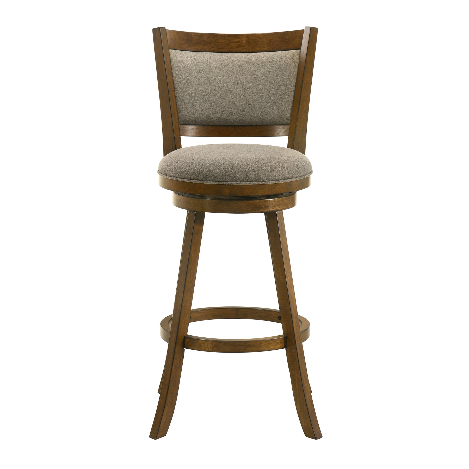 Elevate your dining or bar space with the inviting charm of the Aiden Swivel Stool Collection, a perfect blend of transitional farmhouse warmth and modern comfort. Designed with soft curves, natural materials, and a rich Sepia Brown wood finish, the Aiden stool brings timeless elegance and practicality to any home setting,whether styled around a cozy kitchen island or a polished entertainment area. Crafted from durable solid natural wood and finished in a smooth Sepia Brown tone, each stool highlights the natural wood grain and exudes organic appeal. The curved panel backrest provides ergonomic support, while the plush round seat delivers comfort through resilient, soft-to-touch fabric upholstery that holds up beautifully to daily use. Choose between Light Scone, a warm neutral for airy interiors, or Gray, a cool tone that adds sophistication and contrast. Available in both Counter Height and Bar Height, the Aiden stool offers flexibility for various seating arrangements. A smooth 360-degree swivel mechanism ensures effortless rotation, making it ideal for casual dining, entertaining guests, or enjoying morning coffee. A built-in circular footrest and sturdy flared legs enhance balance and comfort, while the polyester-blend performance fabric combines tactile softness with dependable durability,without feeling synthetic. Combining timeless form with practical function, the Aiden stool requires only minimal assembly and includes a 1-year limited manufacturer warranty for peace of mind. Designed to adapt seamlessly to both rustic and contemporary interiors, it s a lasting investment in comfort and craftsmanship.Product Dimensions