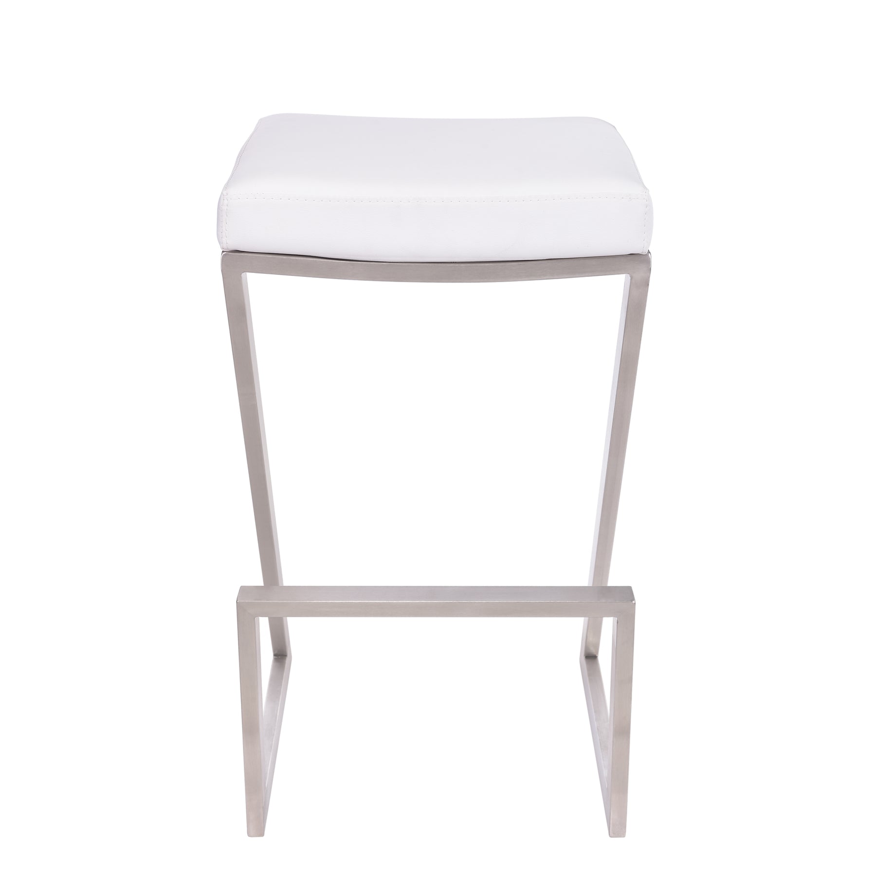Embrace the effortless style and versatility of our Atlantis Counter or Bar Height Stool in Faux Leather and Metal by Armen Living. With a sleek and airy profile, our barstool offers lasting style and convenience. The robust and seamlessly flowing Z-shaped metal base of this stool lends a distinctively modern and chic appeal to any room. The curved and contoured seat is cushioned with 2.5-inches of high-density foam and upholstered in a sumptuous layer of faux leather. Faux leather remains fade, water, and stain-resistant to offer easy care and maintenance; we recommend dusting regularly and wiping clean with a damp cloth. This contemporary barstool remains lightweight and portable, so you can redecorate for any occasion. It offers flexible setting anywhere from your kitchen island, pub table, eat-in kitchen, home bar, or adjustable desk in a home office. Its sturdy and durable construction ensures years of use. This barstool frame includes a convenient footrest to give you additional support, while the backless design makes it easy to store under a counter to free up more of your floor space. The Atlantis Counter or Bar Height Stool is available in Matte Black Iron with Vintage Gray Faux Leather or in 26-inch counter height versions finished in Brushed Stainless Steel with Gray, Black, or White faux leather to serve as a versatile and effortless addition to your modern home.Product Dimensions