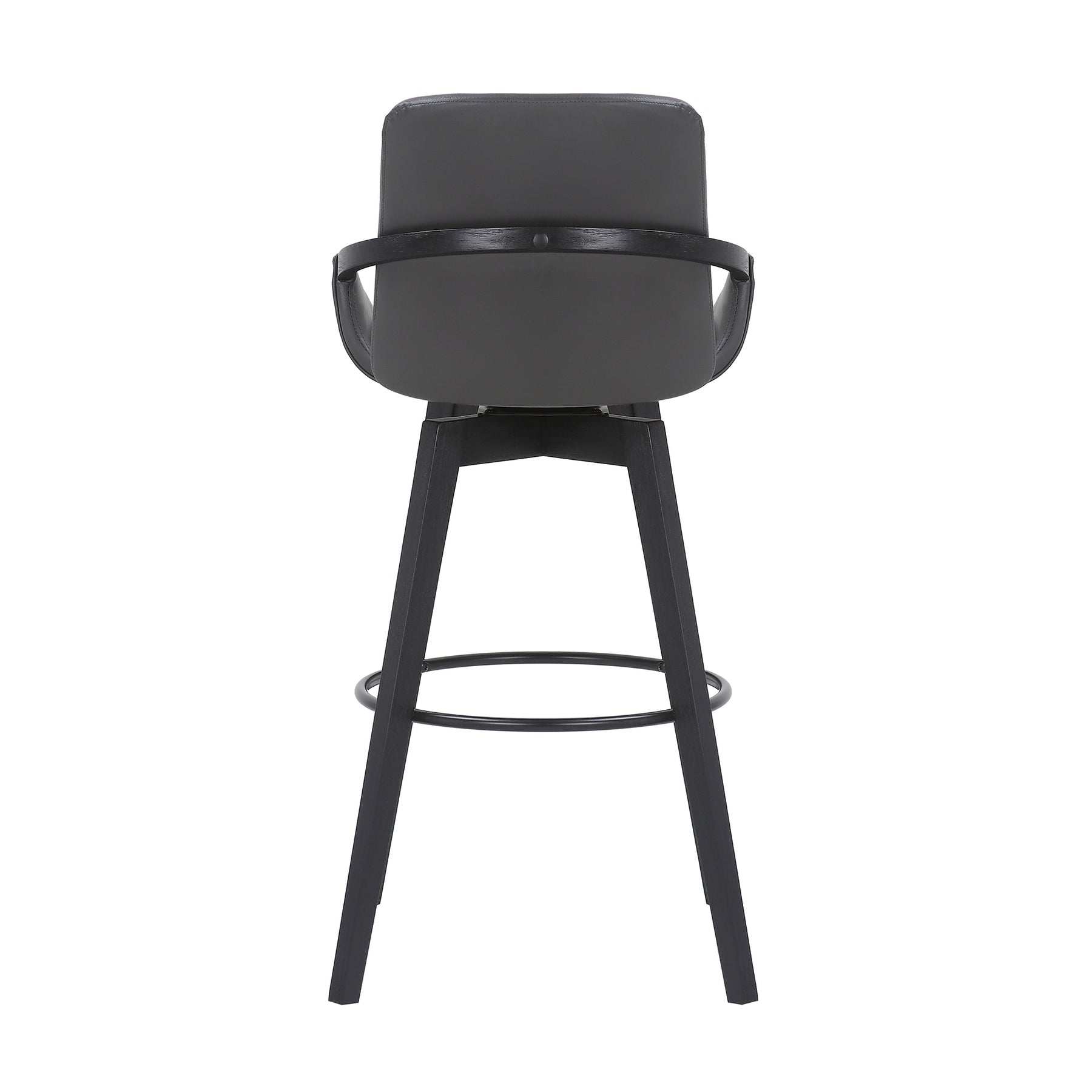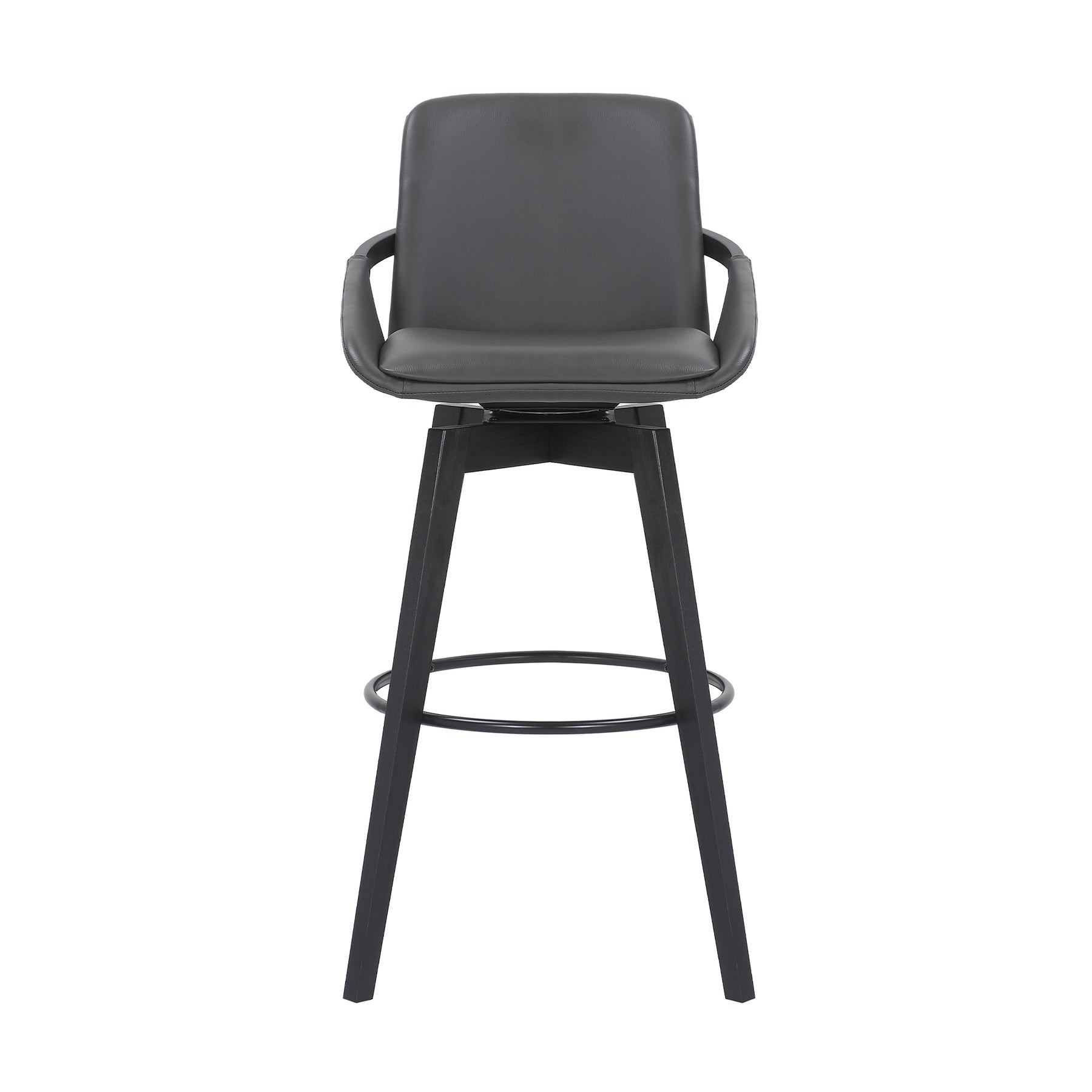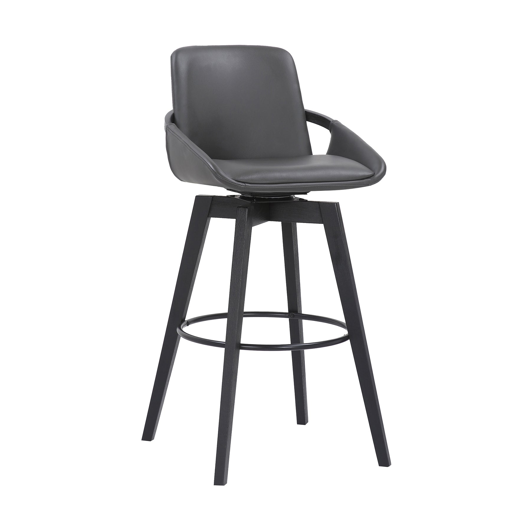 The Armen Living Baylor Swivel Wood Bar or Counter Height Stool in Faux Leather is the next great furniture addition to your beautiful, modern home. This refined and functional bar stool will absolutely enhance the aesthetic in any room. The Baylor's frame and legs are crafted with sturdy and durable wood, giving you years of enjoyment. This bar stool features a 360-degree swivel function which increases mobility for a greater user experience. The sleek, smooth lines featured throughout the body of this bar or counter height chair combined with the look of the soft faux leather upholstery create harmony throughout this piece. This stool also includes a circular metal footrest, which is both visually appealing and practical for the design. The Baylor Bar or Counter Height Stool is available in 26-inch counter height and 30-inch bar height. Also available in your choice of cream or gray faux leather with walnut wood finish or black brushed wood finish.Product Dimensions