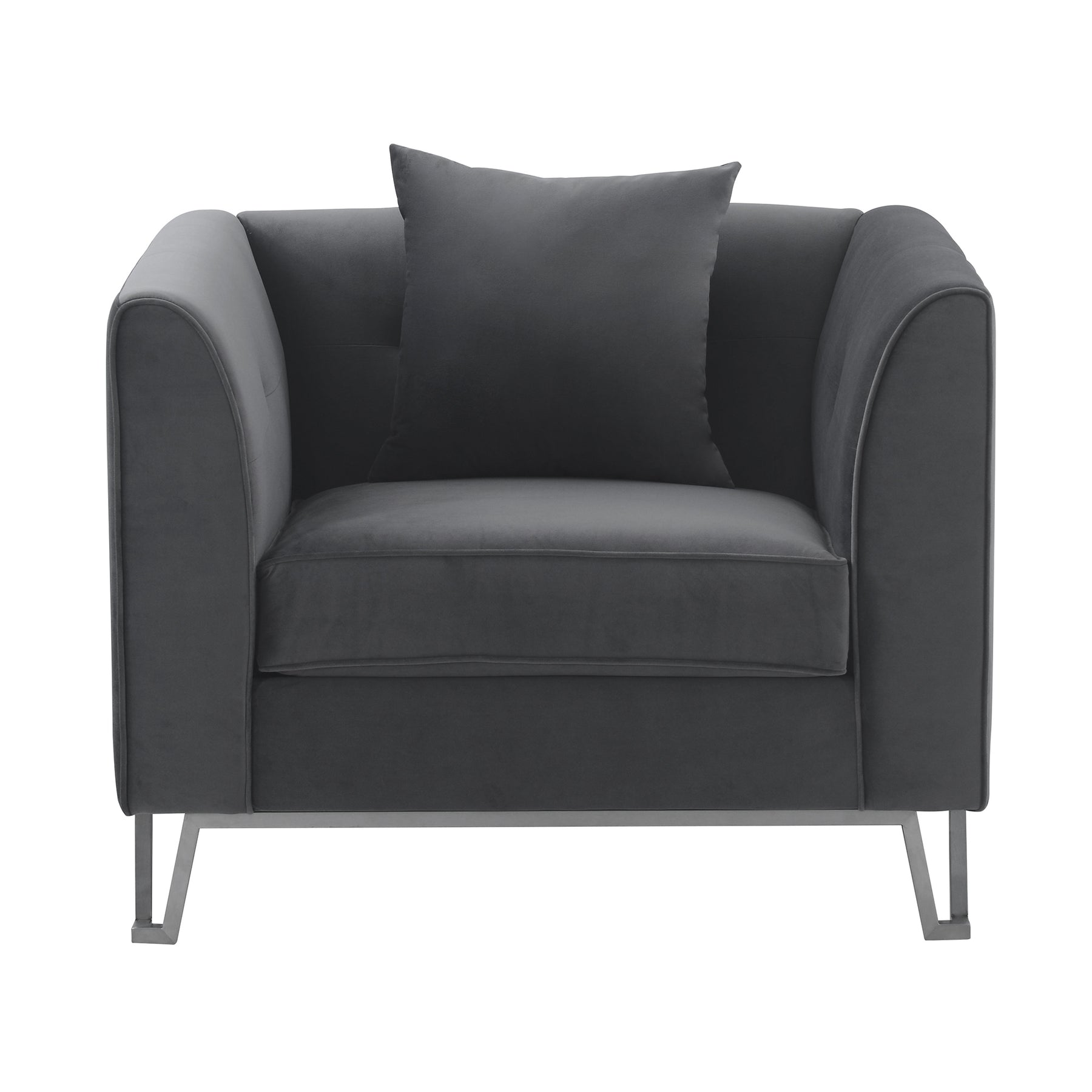 The Armen Living Everest Chair is the perfect seating addition to bring into your beautiful home. The wide seat and high chair back and arms will encapsulate your body and make you feel satisfied and secure. The incredibly comfortable foam-padded cushion will keep you relaxed all day long and make you never want to get up! The striking brushed gold legs are a stand-out feature that compliments the fabric upholstery perfectly, while also adding to the uniqueness of this chair. This wonderful chair comes with an additional toss pillow to accessorize with. The Everest is available in your color choice of Blue, Gray, and Blush fabric.Take care of your furniture
