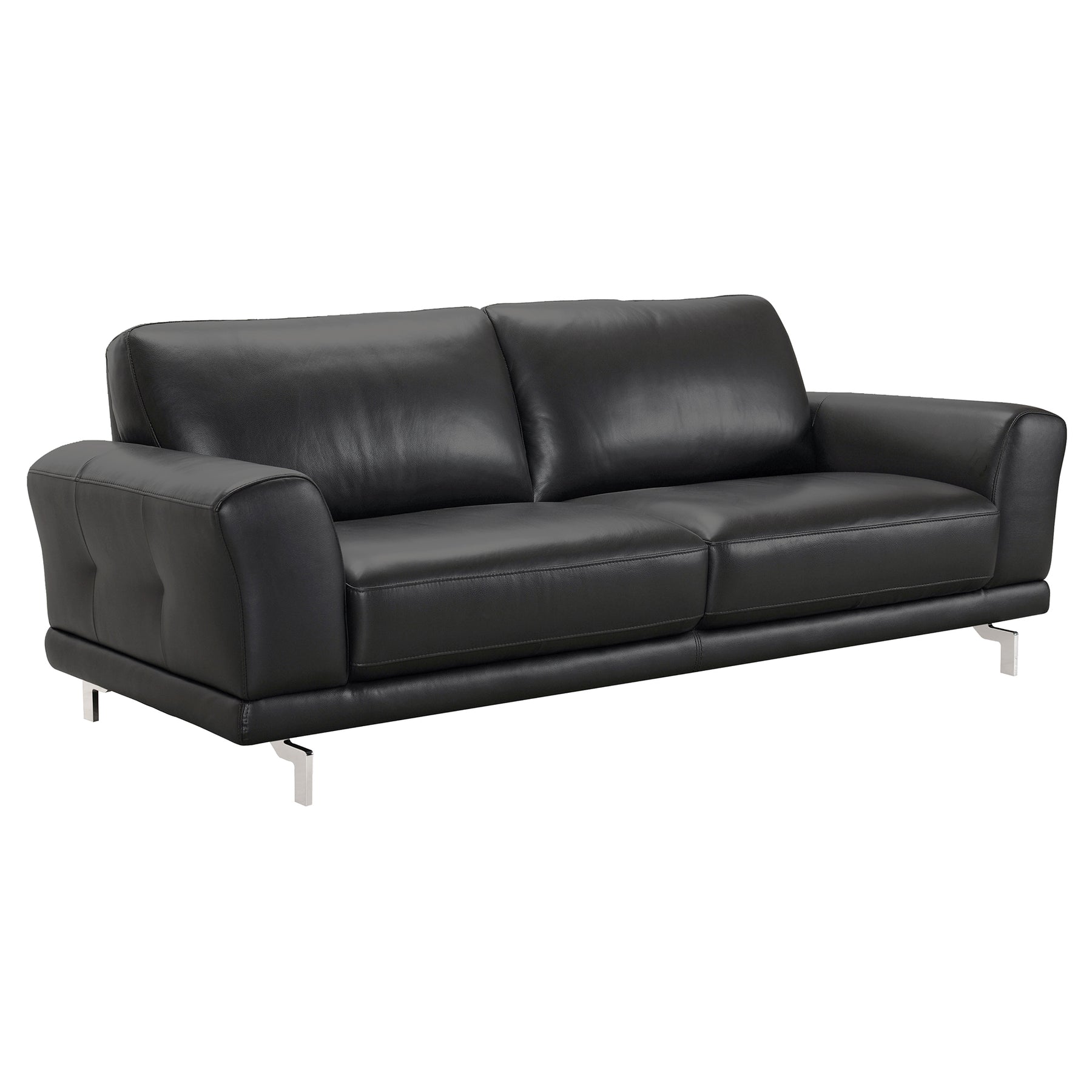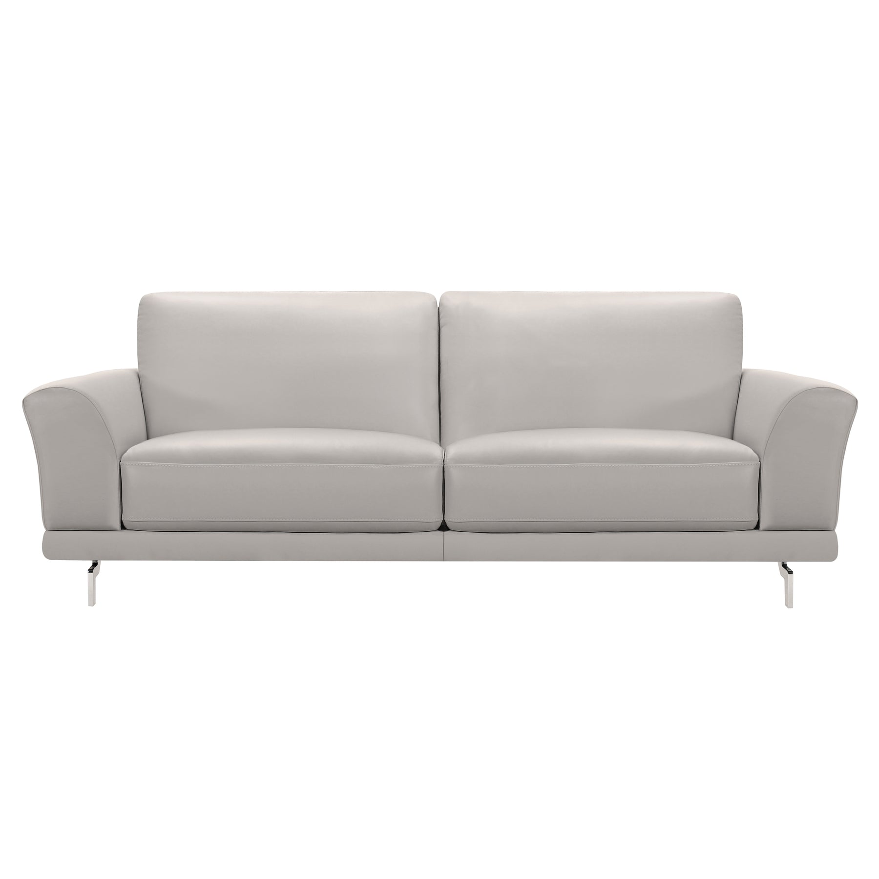 The Armen Living Everly contemporary genuine leather sofa is a perfect choice for any modern household. Coupling premium genuine cowhide leather with the comfort of plush Dacron padding, the Everly delivers a sophisticated style accompanied by an exceptional degree of comfort. The Everly's sleek upholstery is maintained by the plush Dacron padding, assuring that the leather will not crack or wrinkle after prolonged use. Though almost traditional in appearance, the Everly's unique design combines the classical comfort of leather with contemporary elements such as its brushed stainless steel legs to bring you a sophisticated, yet modern piece. The Everly sofa is ideal when paired with the Everly chair and loveseat. Available in your choice of rich black or dove Gray leather.Product Dimensions