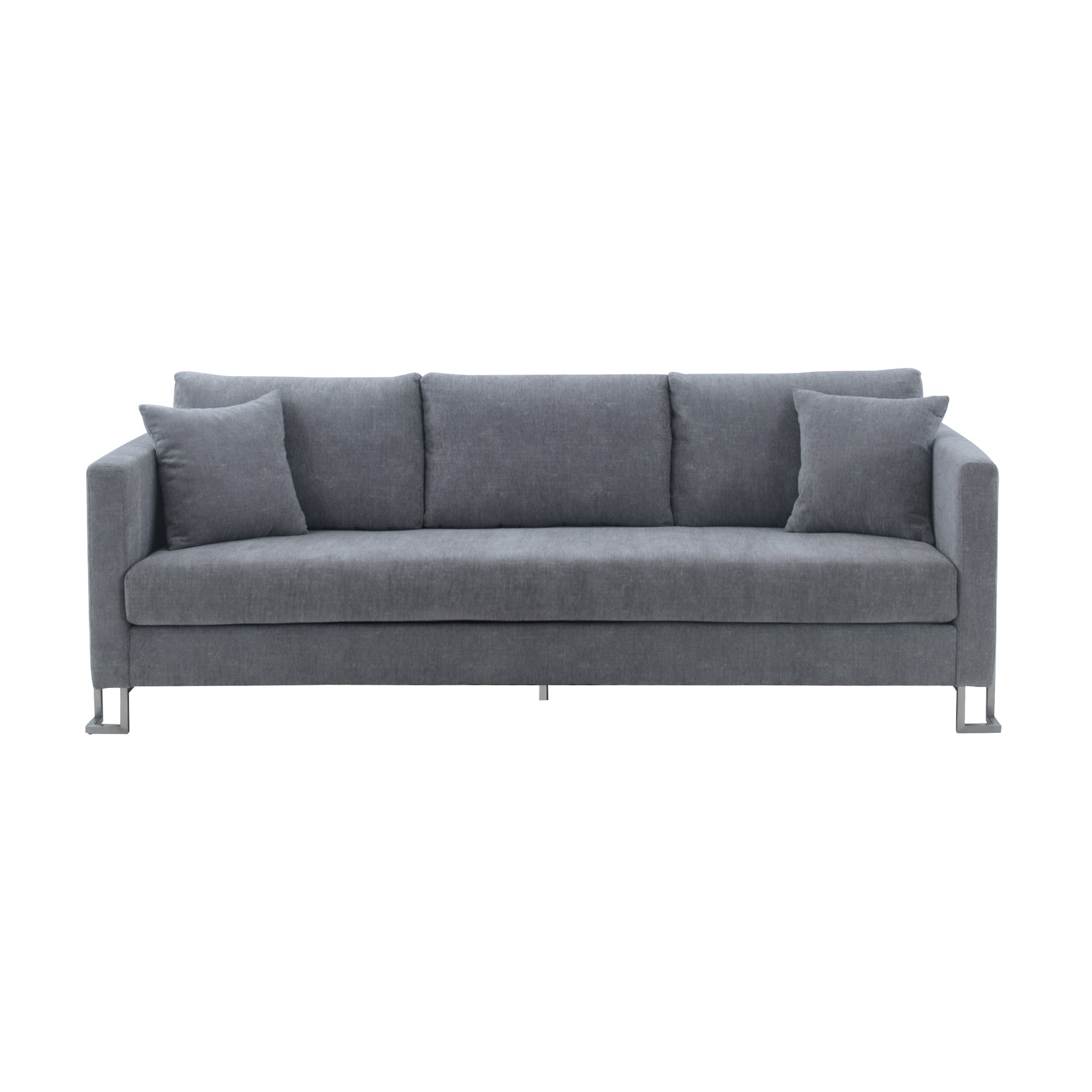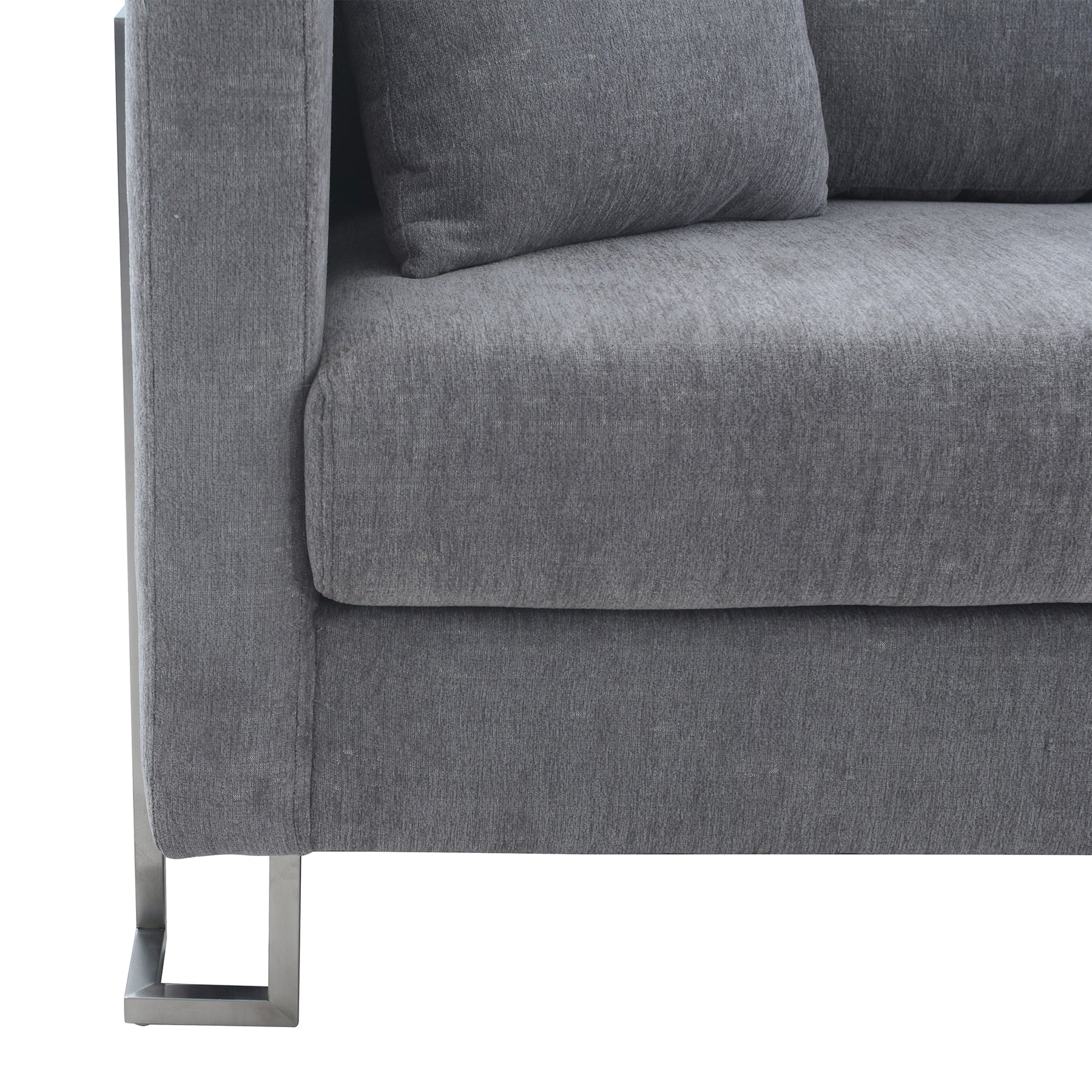 Find captivation, comfort, and completeness with the fantastic Heritage Sofa from Armen Living. The high sofa back and arms give the Heritage a comprehensive aesthetic, checking all the requirements necessary for a great sofa. The Heritage's seat cushion is filled with premium dense foam padding, helping relax your body after a long day. The sturdy frame and strong metal legs add to the durability of this sofa, capable of holding up to 750 pounds. The Heritage comes with two additional toss pillows to accessorize with. Pair with the Heritage Chair and update the decor in your home! The Heritage is available in your color choice of Blue and Gray fabric.Product Dimensions