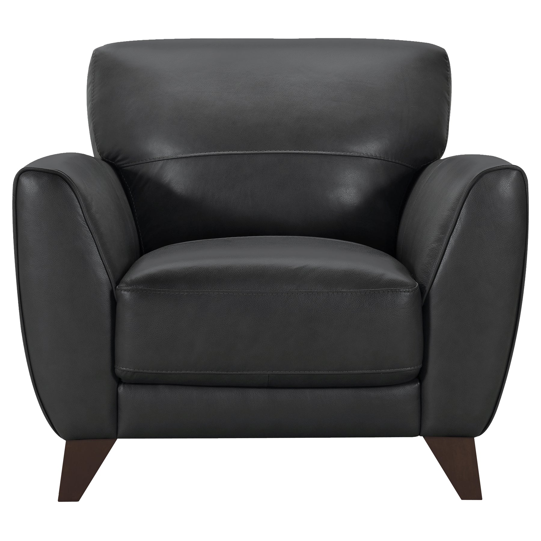 The Armen Living Jedd contemporary genuine leather sofa chair is an ideal choice for anyone looking for a perfect balance of comfort and sophistication. Ideal for the modern living room, the Jedd sofa chair is upholstered in genuine cowhide leather and padded with Dacron foam. the Dacron assures that the leather will not wrinkle or crack while providing a degree of comfort that is unmatched by alternative foam padding. Durable and highly pleasing to the eye, the Jedd features white accent stitching and brown hardwood legs that brilliantly compliment the chair's design. The Jedd chair is perfect when paired with the Jedd sofa and loveseat and is available in rich black leather.Assembly Instructions