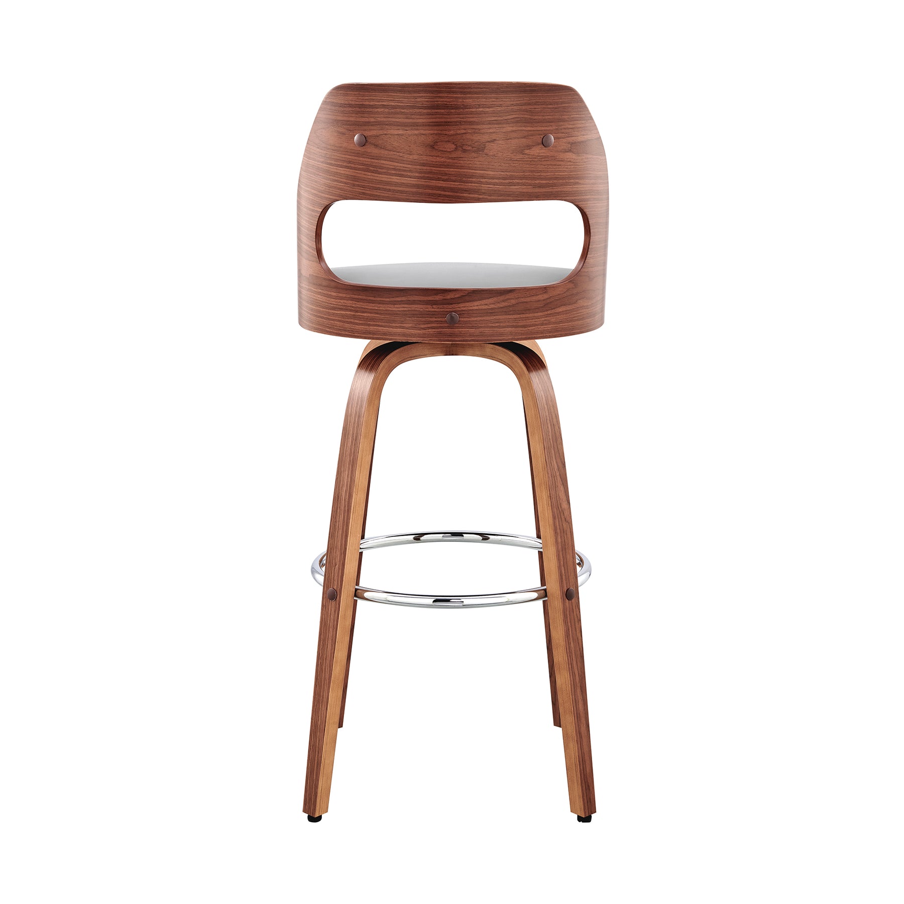 The Julius 26" Gray Faux Leather and Black Wood Bar Stool from Armen Living is the perfect stool to introduce into your already beautiful home. The Julius features a swivel function that allows you to turn 360-degrees, offered for your convenience! The open seat back and wide seat cushion gives you exceptional room and comfort. The Julius frame is crafted to be stable, sturdy, and, strong - also designed with a built-in metal footrest! The Julius is available in your color choice of Gray, cream, or brown faux leather with walnut wood or Gray faux leather with black wood. Product Dimensions: W:18 x D:19 x H:37 x SH:26Product Dimensions