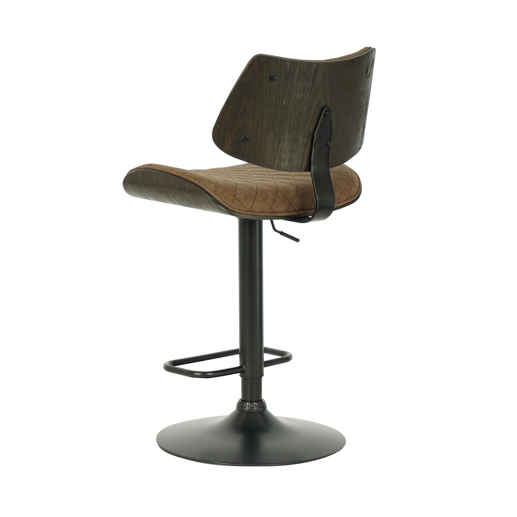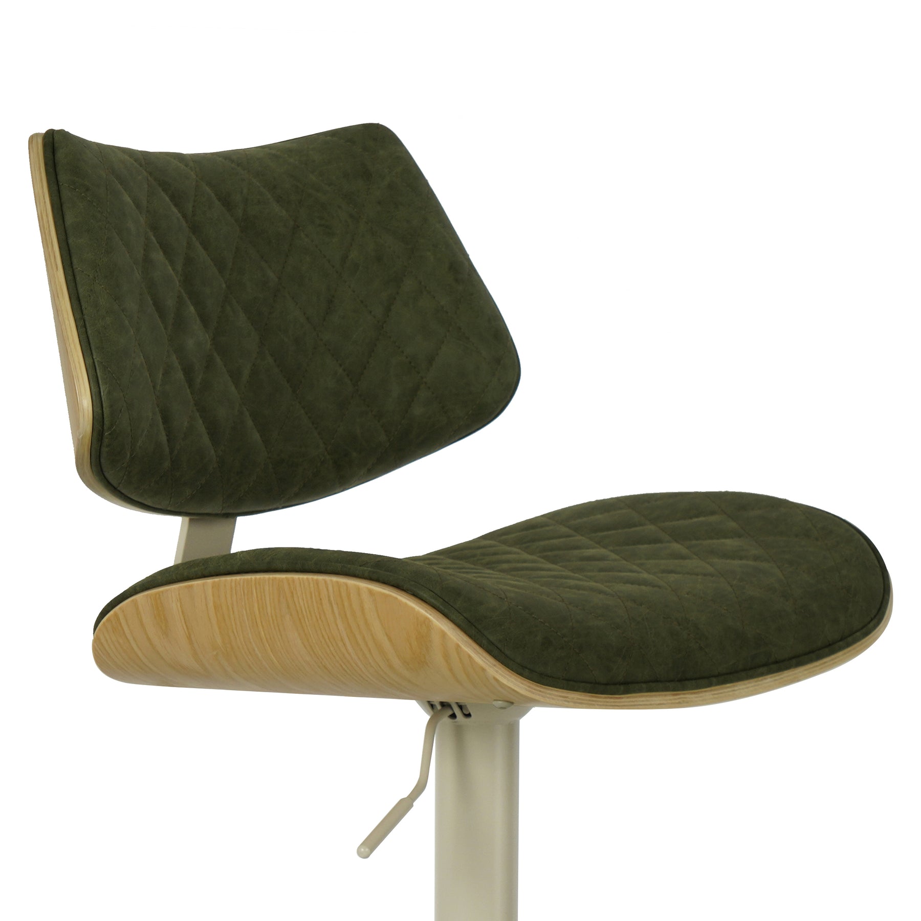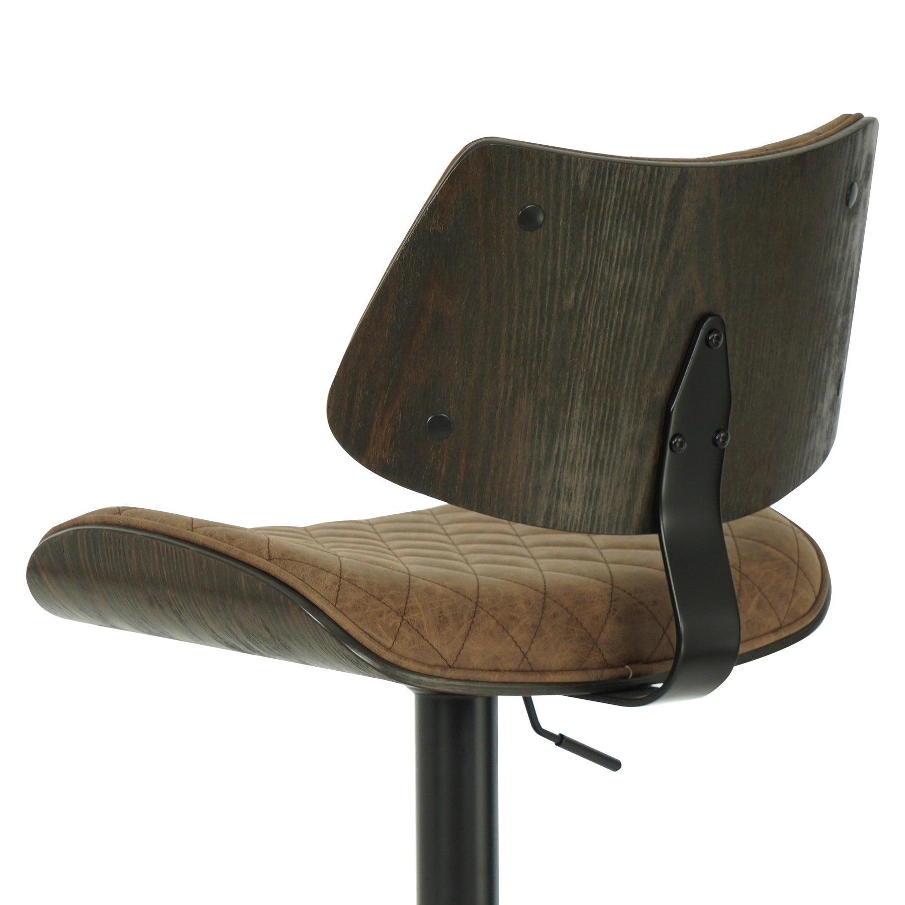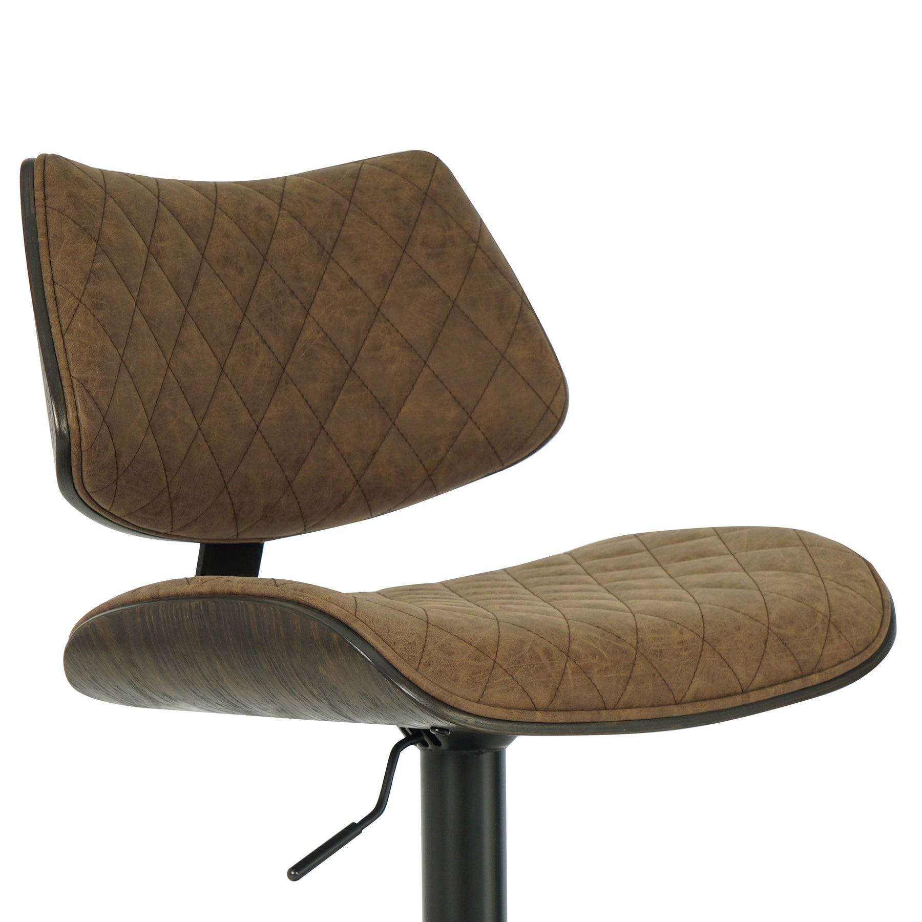The Leland Adjustable Gray Faux Leather and Black Finish Bar Stool is the chic and clean stool to bring into your living area. The Leland is upholstered in a piece of stunning faux leather, featuring a bold and beautiful diamond-tufted design. The Leland is crafted with utility in mind - proudly touting two amazing additions: a 360-degree swivel function and an adjustable lever for the perfect height! The Leland is available in your color choice of Gray, cream, or black faux leather with chrome finish or Gray faux leather with black finish. Product Dimensions: W:19 x D:20 x H:37 - 45 x SH:24 - 33Product Dimensions