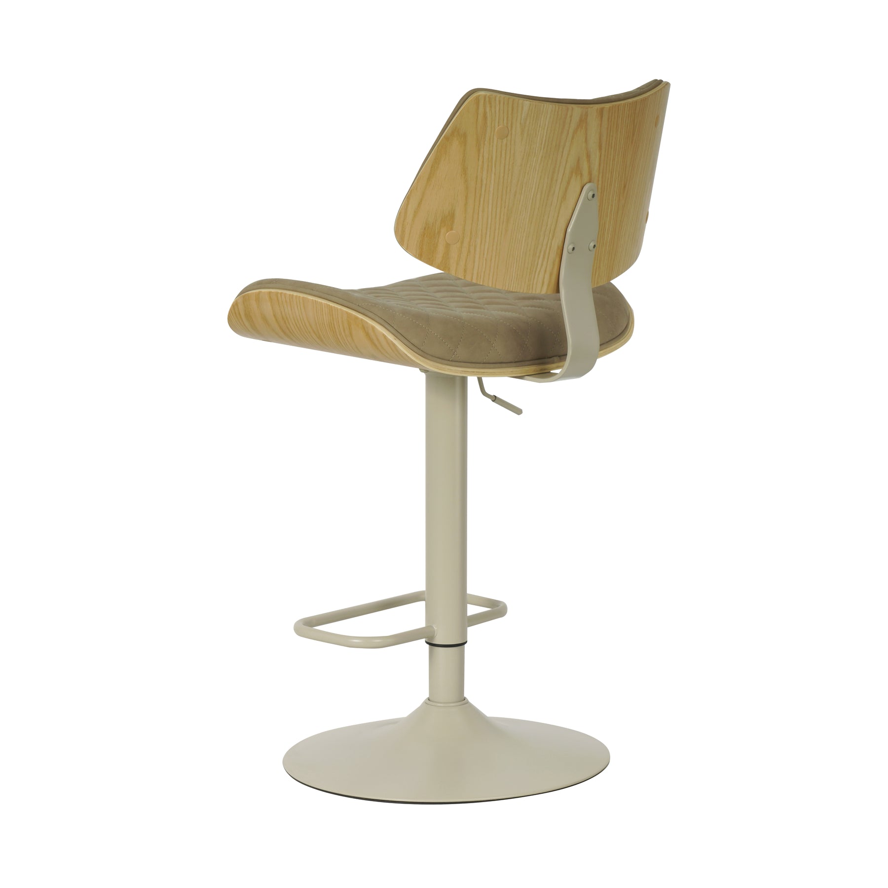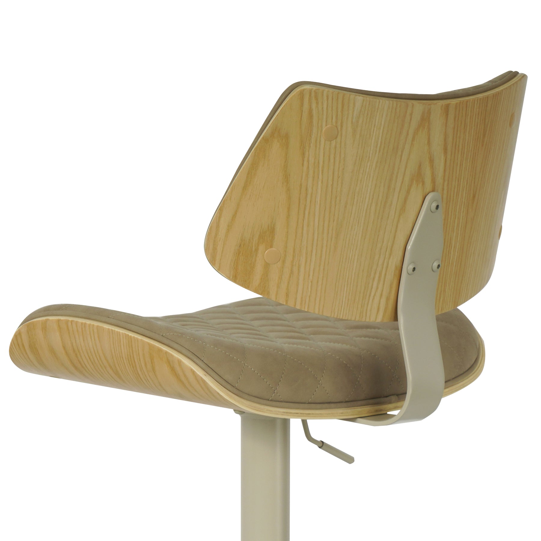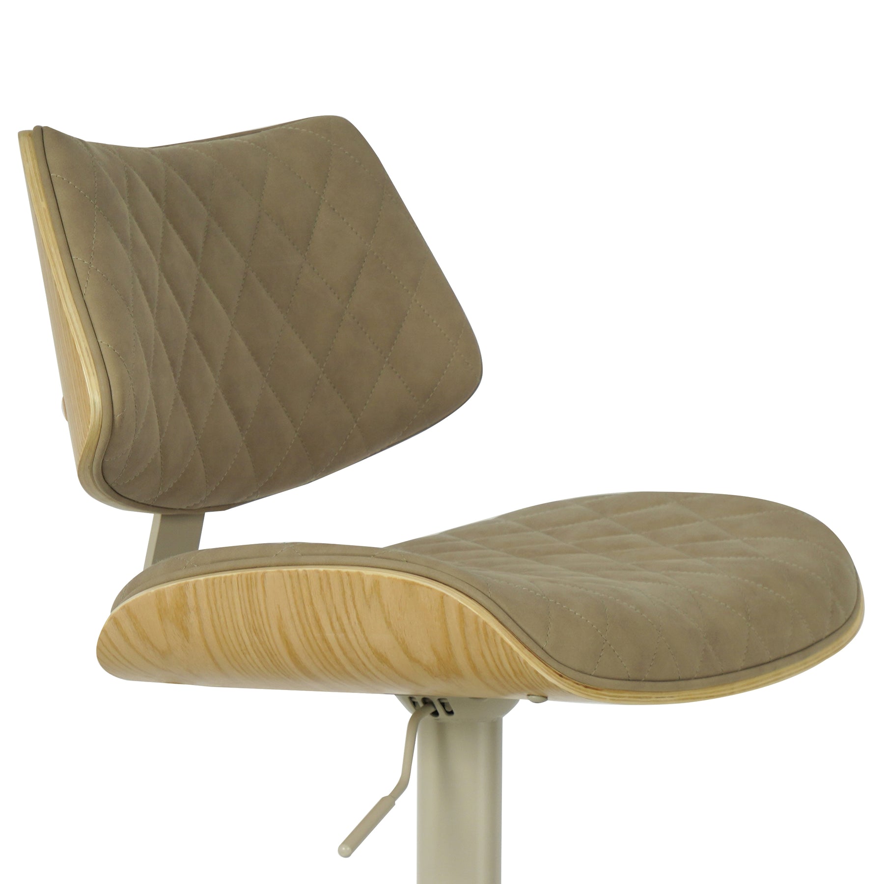 The Leland Adjustable Gray Faux Leather and Black Finish Bar Stool is the chic and clean stool to bring into your living area. The Leland is upholstered in a piece of stunning faux leather, featuring a bold and beautiful diamond-tufted design. The Leland is crafted with utility in mind - proudly touting two amazing additions: a 360-degree swivel function and an adjustable lever for the perfect height! The Leland is available in your color choice of Gray, cream, or black faux leather with chrome finish or Gray faux leather with black finish. Product Dimensions: W:19 x D:20 x H:37 - 45 x SH:24 - 33Product Dimensions