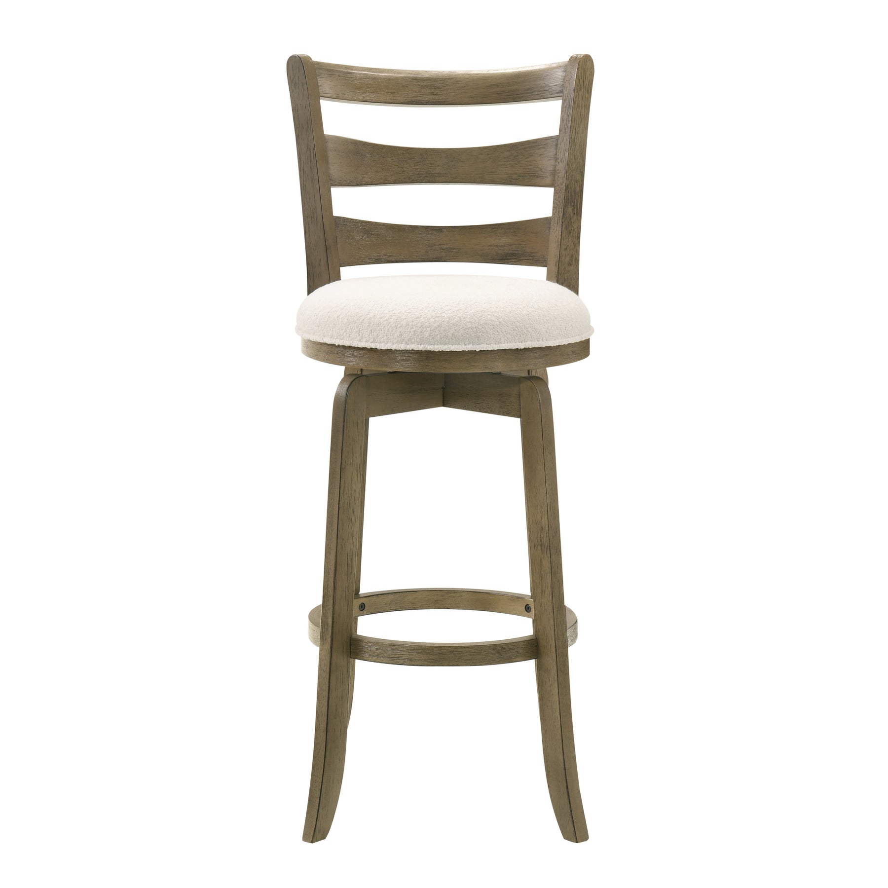The Melindra Barstool Collection blends traditional charm with modern versatility, creating an inviting piece that suits both casual and formal spaces. Featuring a graceful ladder-back design, this stool delivers a warm, timeless aesthetic enhanced by soft curves and a balanced silhouette. Its solid natural wood frame, finished in either Amber Glow or Putty Brown, provides natural character and stability that stand the test of time. Paired with the plush white boucle performance fabric, Melindra brings both comfort and texture to your kitchen island, bar, or dining counter. Designed for functional elegance, Melindra is equipped with a 360-degree swivel seat that allows effortless movement and interaction from any angle. The smooth swivel mechanism makes it ideal for entertaining, dining, or everyday conversation, offering flexibility without compromising balance. The padded round seat and supportive ladder-style backrest deliver a comfortable seating experience, while the built-in circular footrest ensures ergonomic support for extended sitting. Every detail of the Melindra stool speaks to quality and craftsmanship , from the rounded seat base to the gently flared legs that enhance both visual appeal and stability. The performance boucle fabric not only offers a sophisticated look but also resists stains, moisture, and fading, making it perfect for busy households. Its low-sheen finish highlights the beauty of the wood while preserving a contemporary edge. Available in two heights , counter and bar, Melindra adapts easily to different interior layouts. Whether you re outfitting a cozy breakfast nook or an elevated home bar, this stool s classic design and smooth swivel functionality bring comfort and convenience to every setting. Combining style, durability, and ease of use, Melindra transforms everyday seating into an elegant experience.
