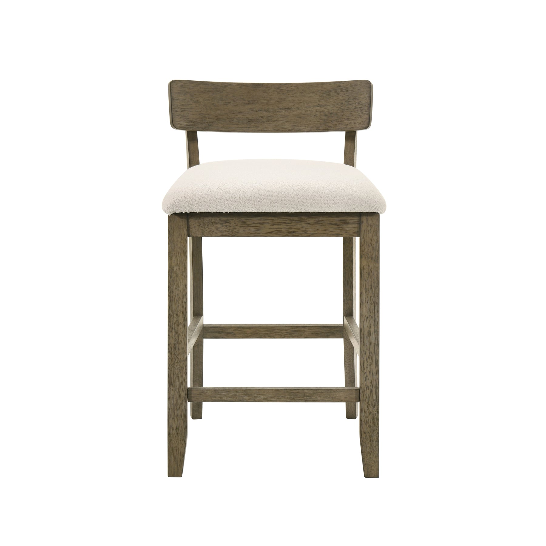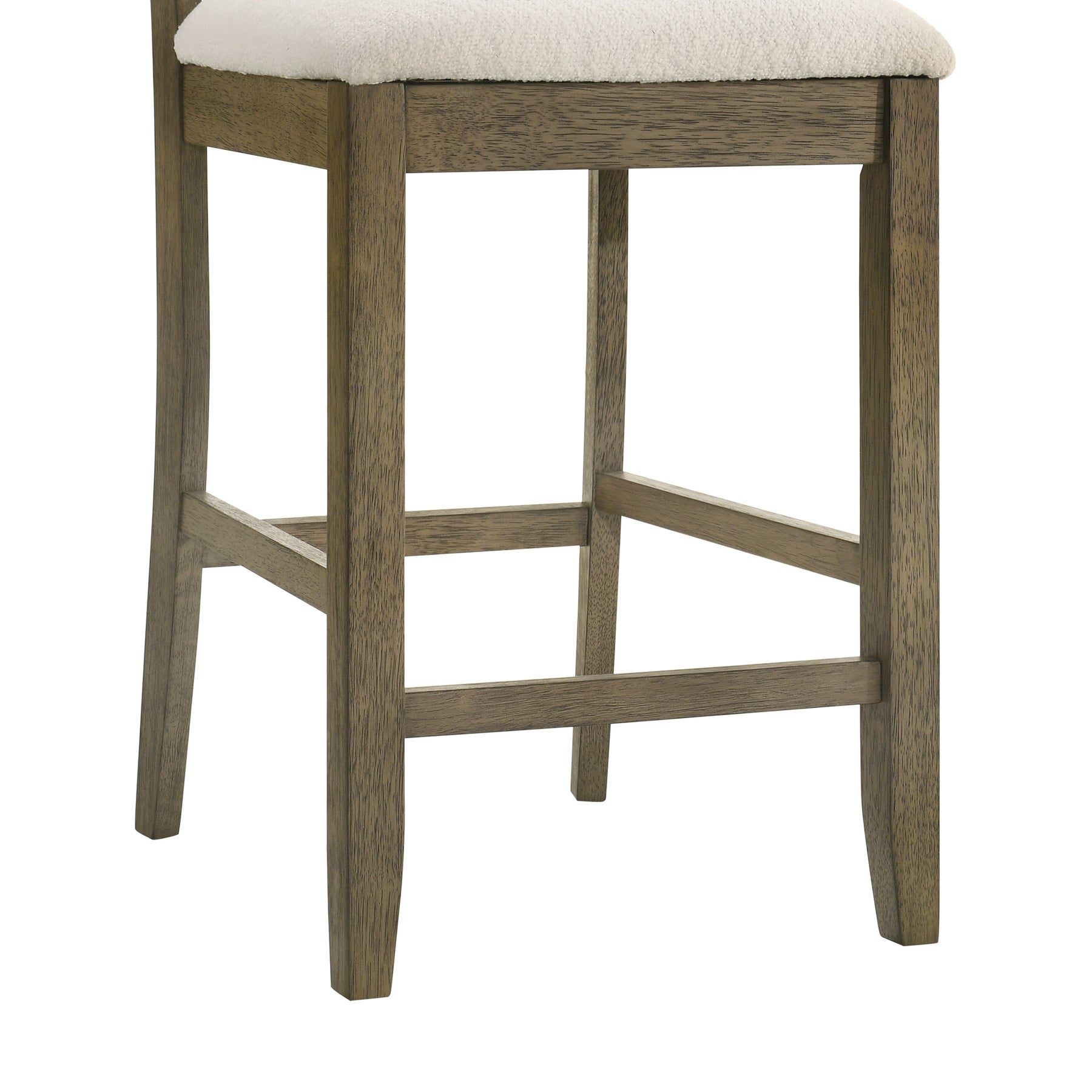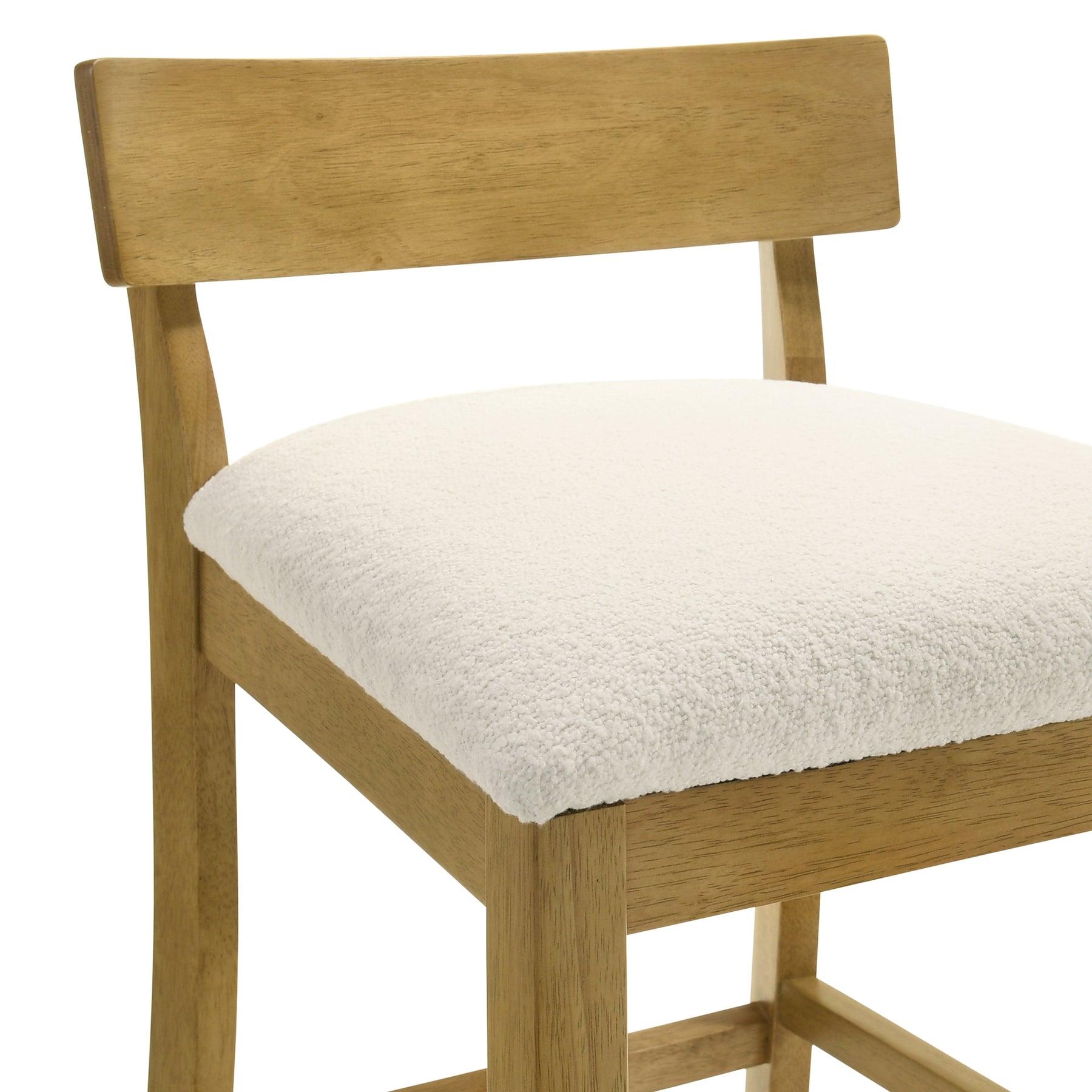The Merie Barstool Collection is a study in simplicity, refinement, and comfort , the perfect balance between timeless design and modern practicality. With its low-profile backrest, armless silhouette, and softly padded seat, Merie offers a sleek, space-saving design that complements a variety of interior styles. Its form is subtle yet sophisticated, designed to blend seamlessly into both modern and transitional spaces such as kitchen islands, breakfast bars, or casual dining counters. Crafted with attention to both comfort and aesthetics, the Merie stool features a slightly curved backrest that supports natural posture while maintaining an open, airy appearance. The armless structure provides freedom of movement and easy tucking under counters for a clean, uncluttered look. Its white boucle performance fabric upholstery adds inviting texture and a soft, cloud-like feel, contrasting beautifully with the warmth of the wood tones. Generous foam padding ensures long-lasting comfort whether you're sipping coffee in the morning or entertaining guests late into the night. The stool s frame is made of solid natural wood, chosen for its reliable durability and fine, even grain that allows for smooth, consistent finishing. Available in two versatile wood tones , Putty Brown and Amber Glow , each option brings out a unique character: Putty Brown emphasizes understated sophistication, while Amber Glow introduces a golden warmth to the space. Both finishes enhance the stool s modern craftsmanship and natural appeal. A fixed footrest adds ergonomic support and stability, while the clean-lined legs and structural stretchers reinforce strength for daily use. The performance boucle upholstery is designed to handle everyday life gracefully , it resists stains, moisture, and fading, maintaining its fresh appearance over time. Available in both counter height and bar height, Merie fits effortlessly into kitchens, dining areas, and entertainment spaces alike. Simple to assemble and built to last, Merie combines enduring comfort with effortless design, backed by a 1-year limited manufacturer warranty. With its thoughtful proportions and tactile materials, it brings warmth, texture, and quiet sophistication to your home.