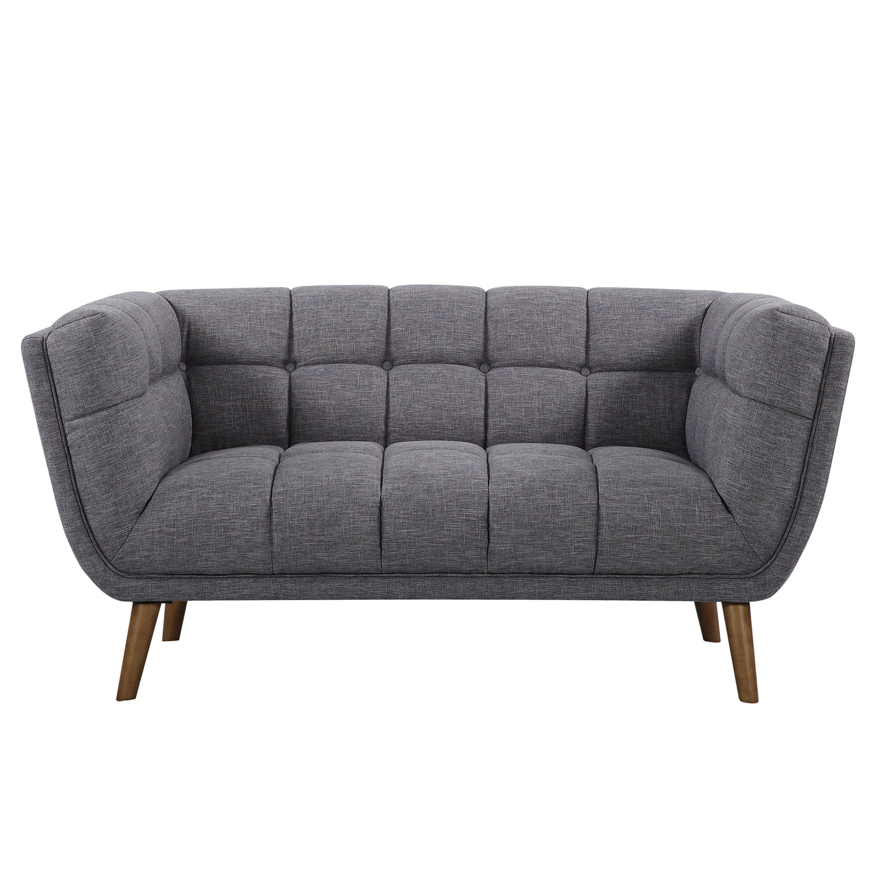 Heart-to-heart conversations, casual cocktail events and lounging happens on the best living room pieces. That's exactly what our Armen Living contemporary Phantom Loveseat offers. Designed according to the mid-century modern style, with an emphasis on imparting a sense of organic living in a modern space. The Phantom loveseat is outfitted with a flared out walnut wood legs and is upholstered in Dark Gray linen with tufted back and seat cushions that makes room for other hues of colors to be incorporated. It comes in a sofa and chair, which can be combined for a harmonious collection.Product Dimensions
