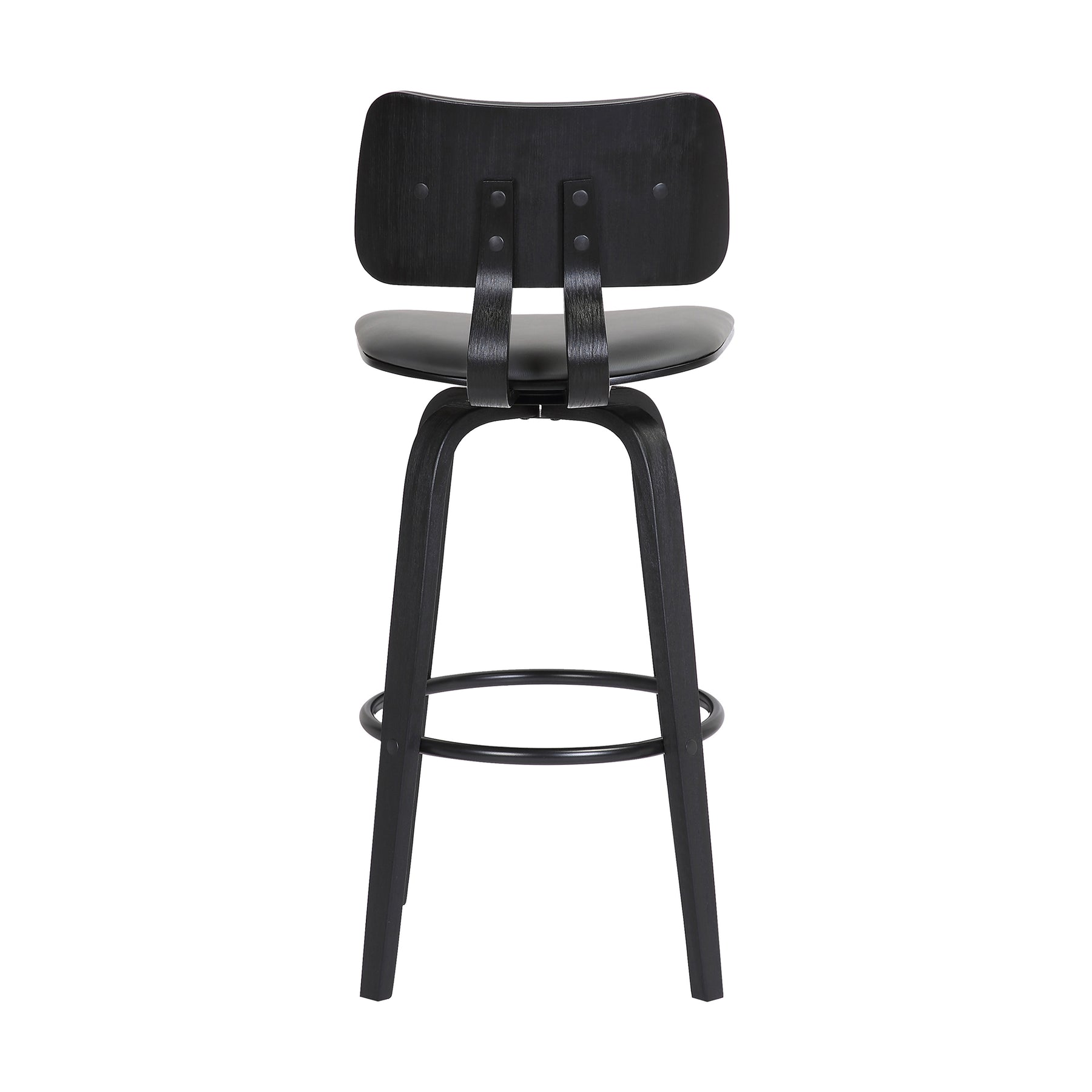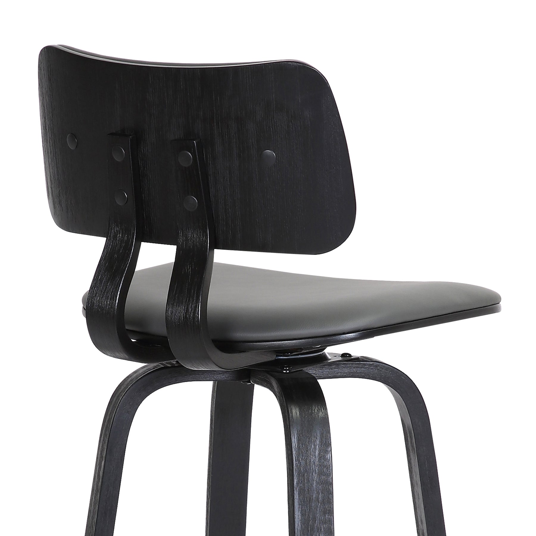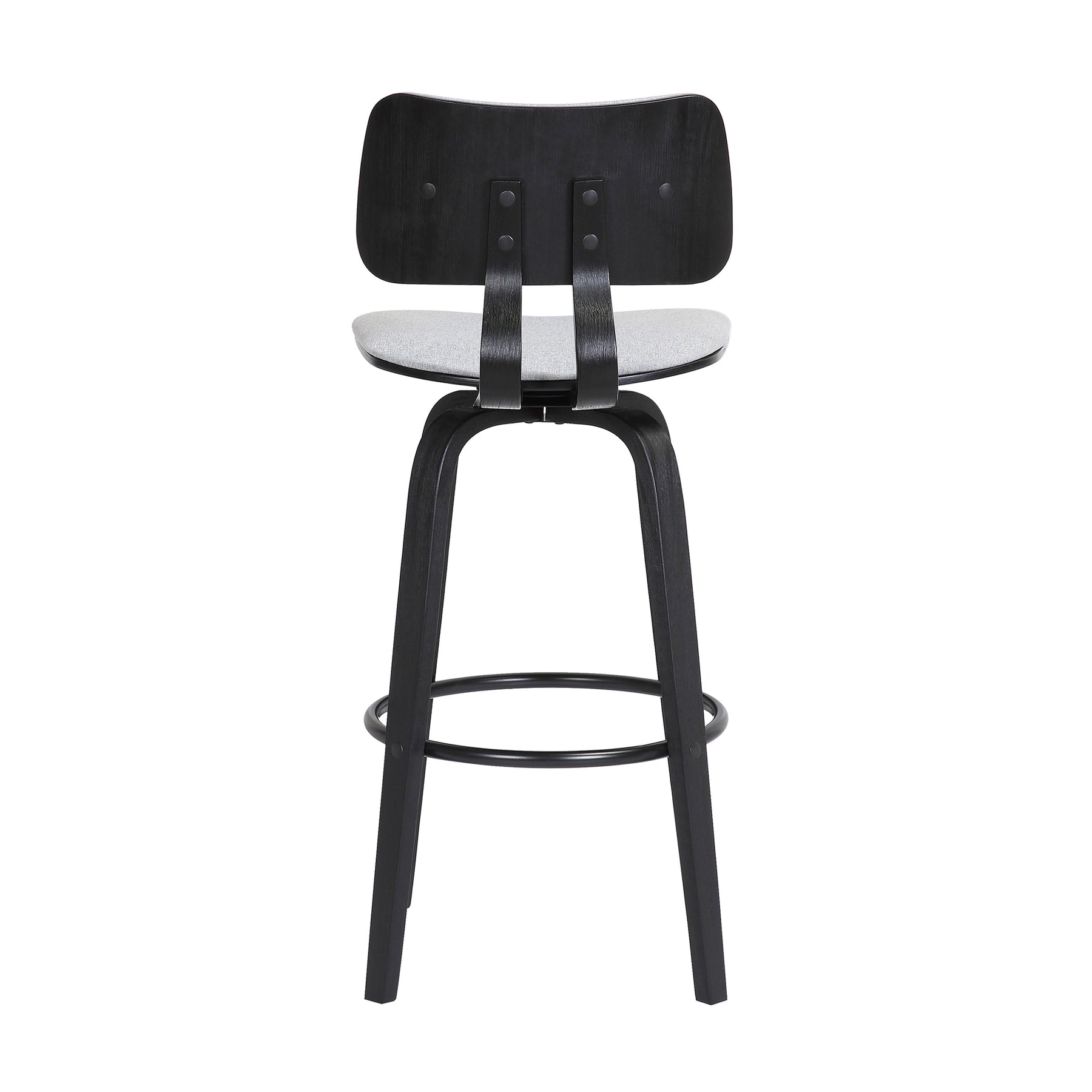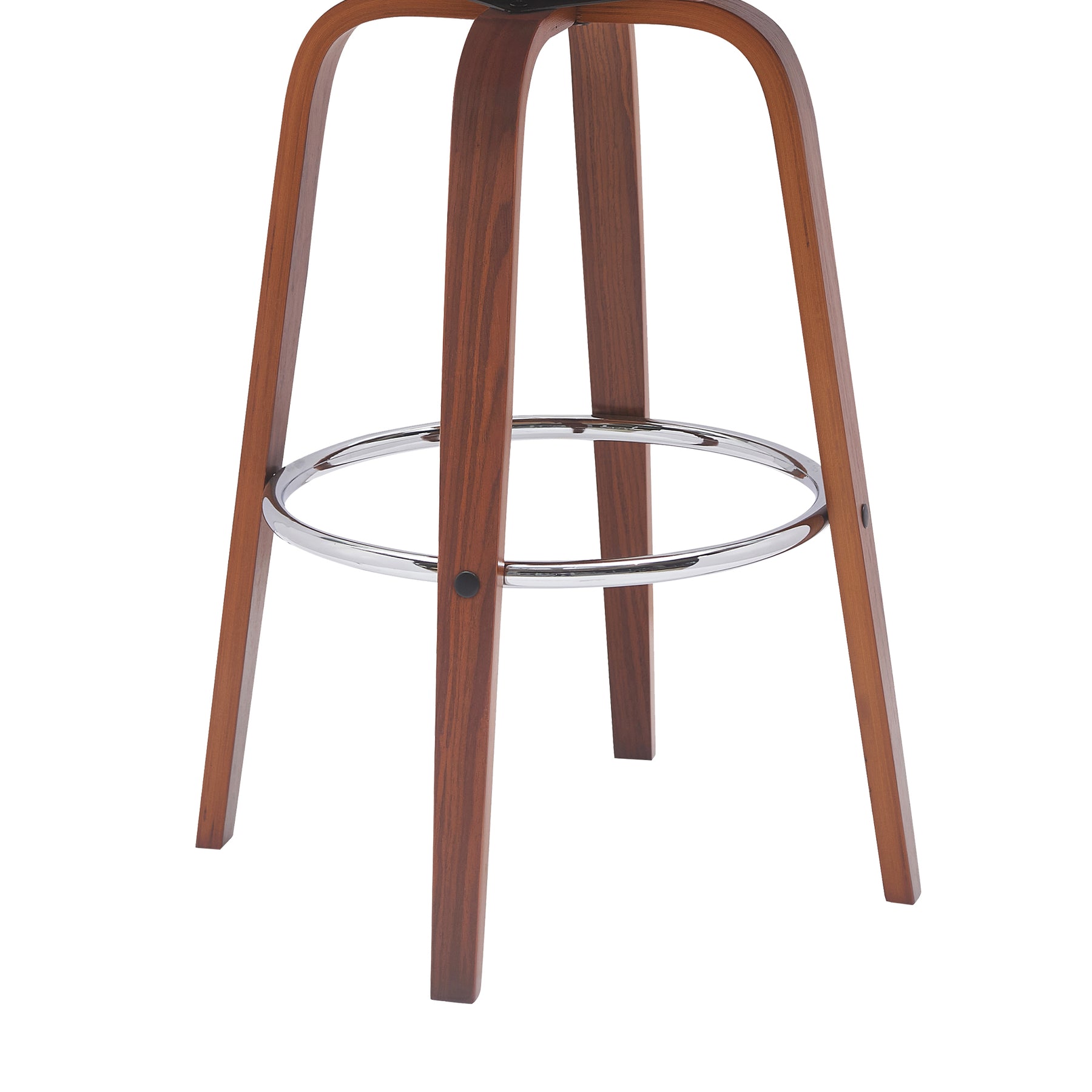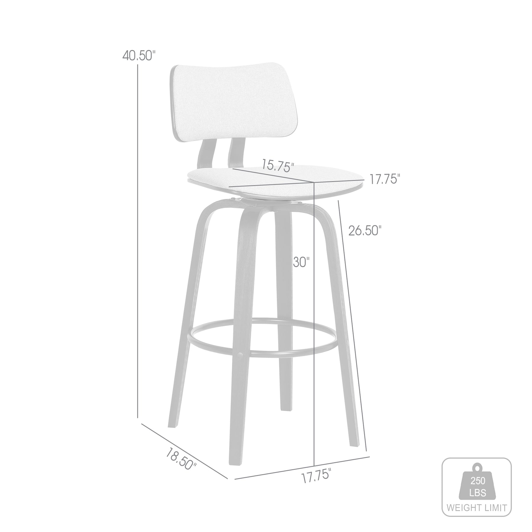 Update your casual meals and cocktail hours with the modern charm and elegance of our Pico Upholstered Swivel Bar or Counter Stool. With bentwood construction, our bar stool features a beautifully curved seat and back, embracing your body with comfort. It is complemented with sculptural bentwood legs to bring signature modern style to your bar or high dining table. Completed with a footrest and upholstered seat, the counter stool promises a comfortable stay. It is upholstered in your choice of faux leather or high-performance fabric to provide easy care and maintenance, best suited to your home. This modern barstool includes a versatile design to complement a kitchen island, pub table, home bar, or adjustable desk. With durable construction, it can be used anywhere from a kitchen to a home office to serve you for years to come. Our counter stool comes with a wonderful 360-degree swivel function. Its smooth gliding system allows you to turn with ease and enjoy your conversation, meals, and cocktail hours to the fullest. The Pico swivel bar or counter stool easily incorporates into any home and is available in your choice of 26-inch or 30-inch seat height. The Pico bar or counter stool is available in your choice of a walnut wood finish with grey, cream, or brown faux leather upholstery and chrome footrest, or a black wood finish with grey faux leather or light grey fabric upholstery and black footrest.Product Dimensions