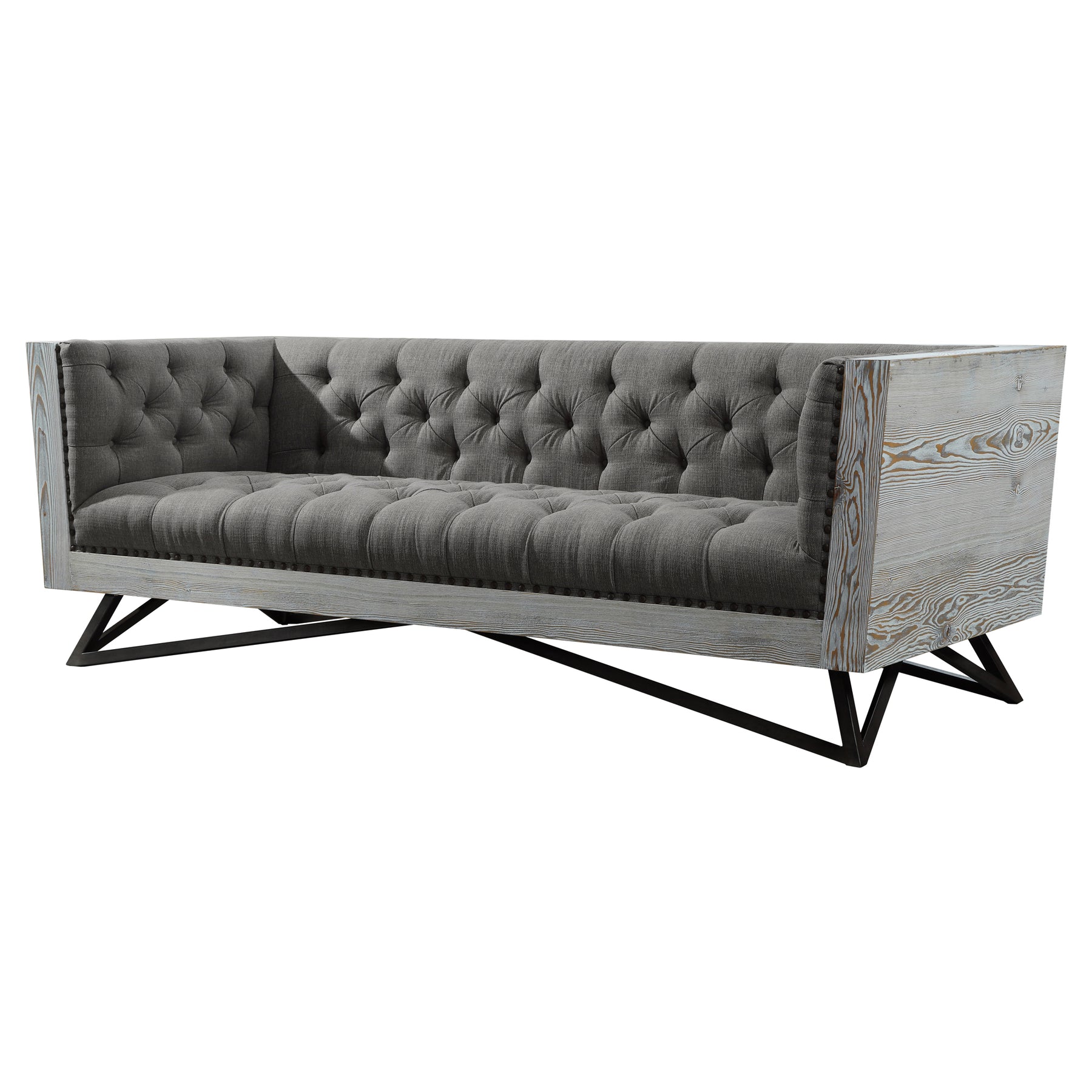 With cream upholstery, soft seat cushions and button tufted accents, the Regis sofa will provide comfort and a modern look in any living room. The sofa has durable frame made of pine and the legs are finished in gunmetal. The Regis sofa is more than just for looks, but also a comfortable sofa that will soon become your favorite seat in the house. The tufted styling, curved back and nailhead accents will help you to achieve that look you have always wanted.Product Dimensions