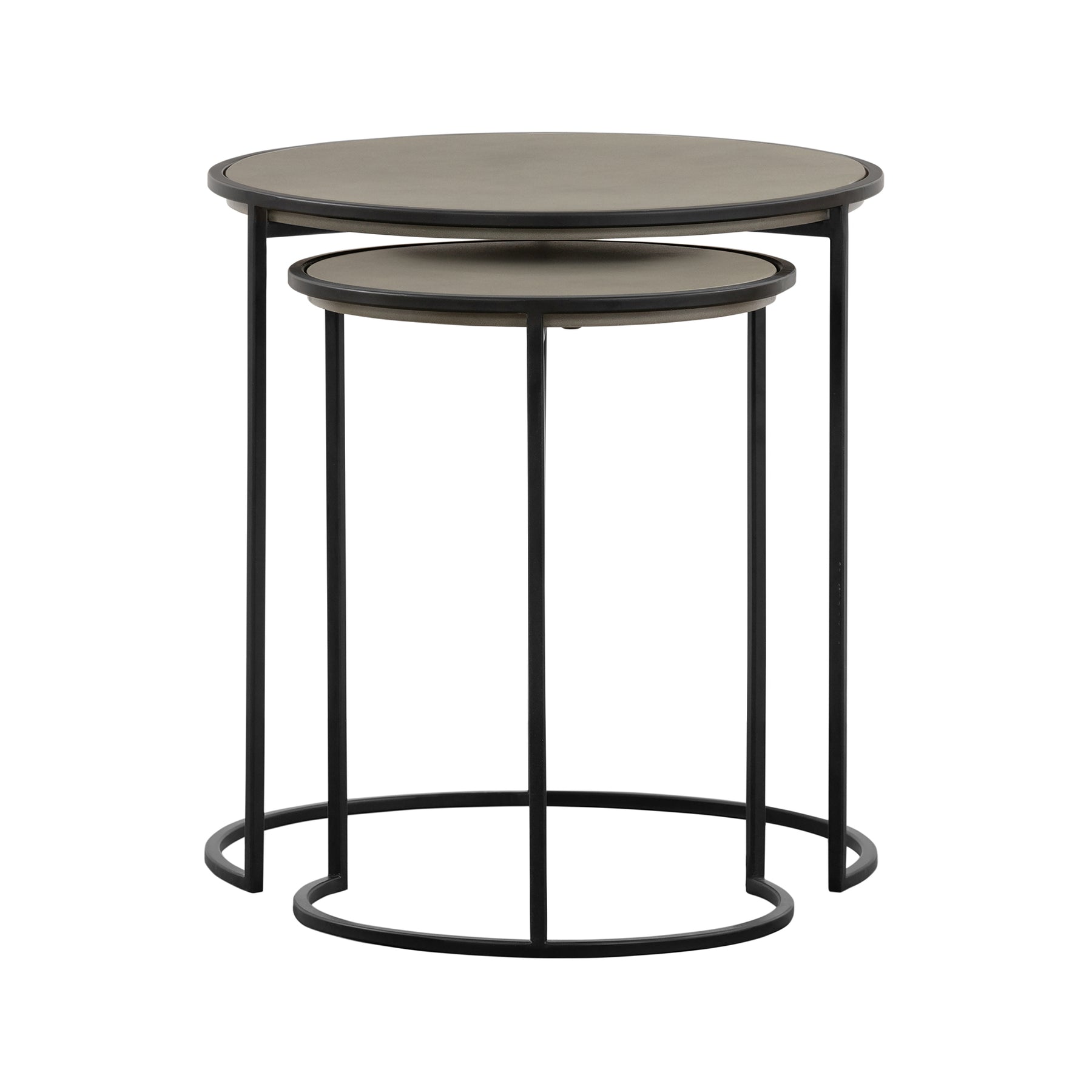 The Rina Concrete and Black Metal 2 Piece Nesting End Table Set from Armen Living is the space-saving tables you need! The Rina is two lamp tables for the price of one. When not in use, the smaller table can be placed under the larger table, which is perfect for space-saving and keeps your home clear. The solid thick concrete tabletop and the metal frame are durable and strong - capable of holding heavy objects. The semi-circular metal leg not only has smoother lines but also is more secure than other square legs, which can cause injuries. Nesting tables are great space-saving solutions for small spaces. They allow you to save space without having to give up the comfort of having a lot of furniture. The Rina Concrete and Metal 2 Piece Nesting End Table set feature a sleek Gray concrete surface atop a chic black metal base. Large Table Dimensions: 17" in Diameter x 17" inches high. Small Table Dimensions: 12.5" in Diameter x 18" high.Product Dimensions