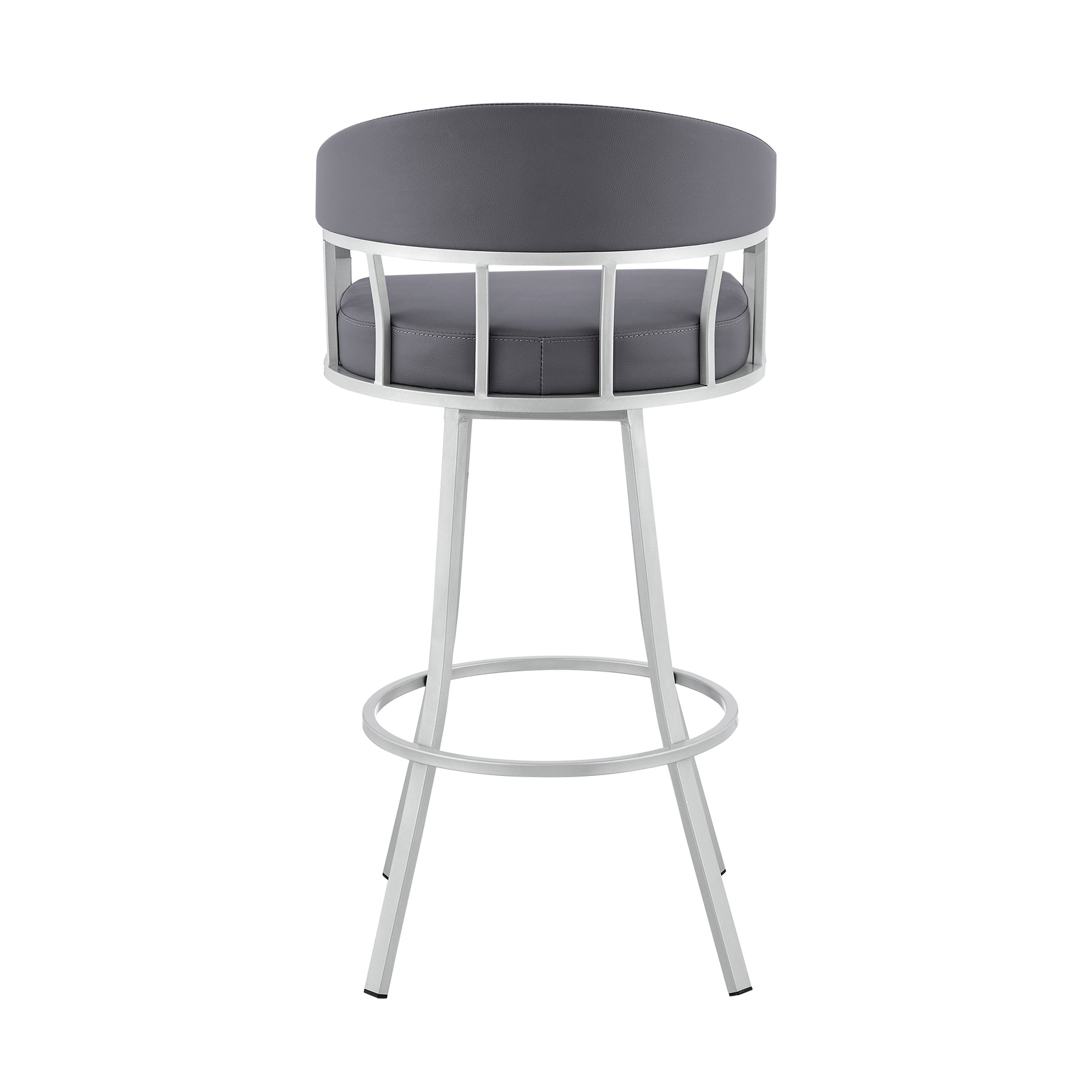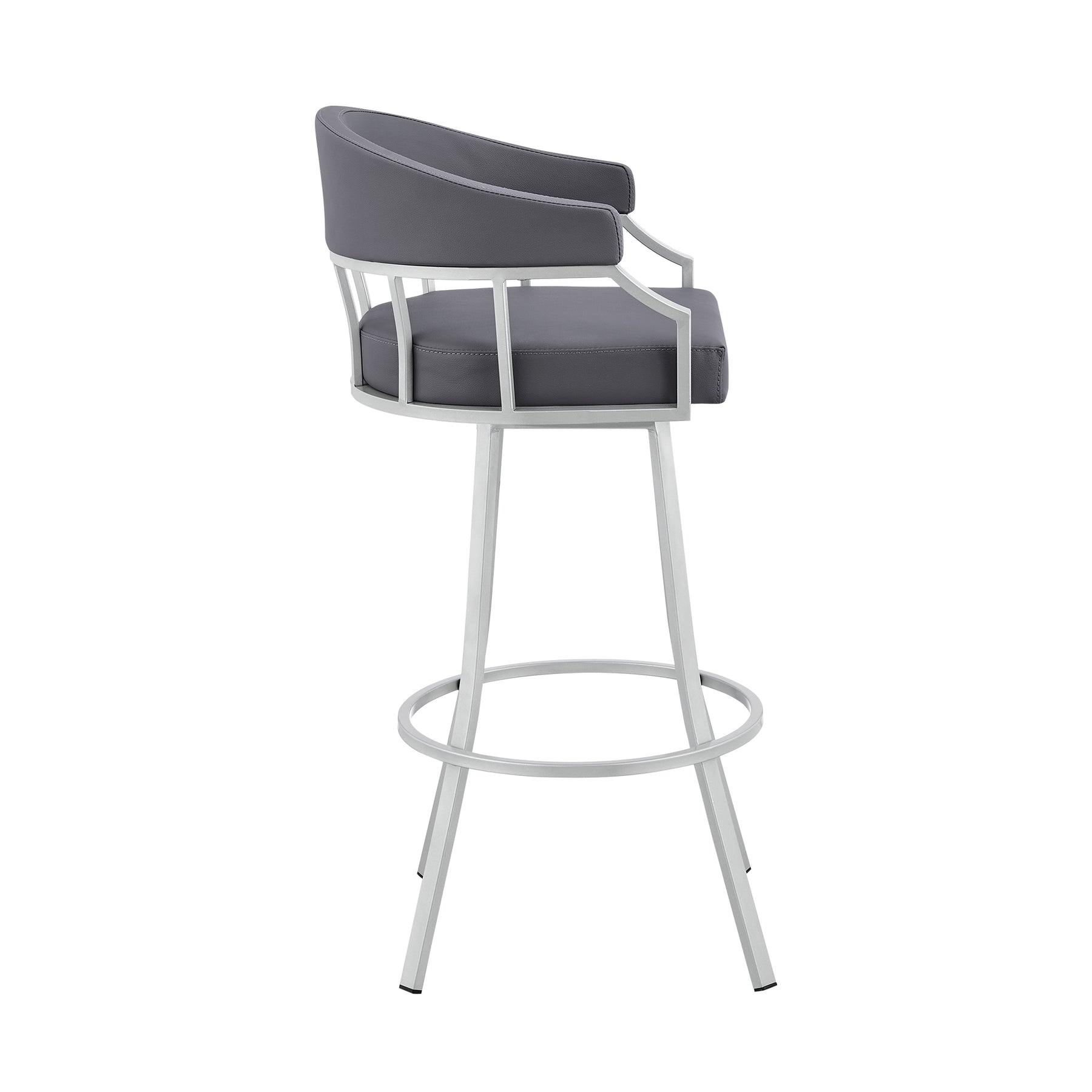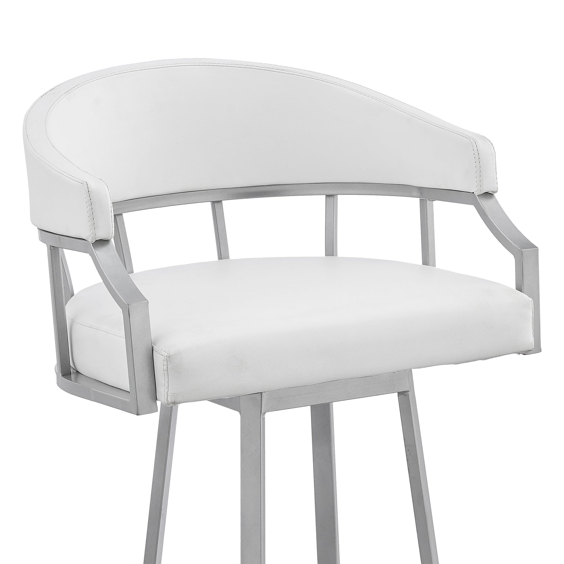 The Valerie Swivel Modern Metal and Faux Leather Bar and Counter Height Stool is a fabulous and functional furniture addition to any home! This beautiful kitchen bar stool is upholstered in butter soft faux leather in multiple color options. The frame of the Valerie stool is constructed from brushed stainless steel that is sturdy enough to last for many years to come. Enjoy full mobility with the 360-degree swivel functionality that allows you to join in on the conversation from any part of your kitchen or bar area. The padded and upholstered back rest gives you comfort that only increases with its convenient metal ring footrest. Enjoy a luxurious style bar or counter stool that is unique in style and practical in function. The Valerie Swivel Modern Metal and Faux Leather Bar and Counter height stools are available in a sleek brushed stainless-steel finish and come in your choice of White, Slate Gray or Black faux leather..