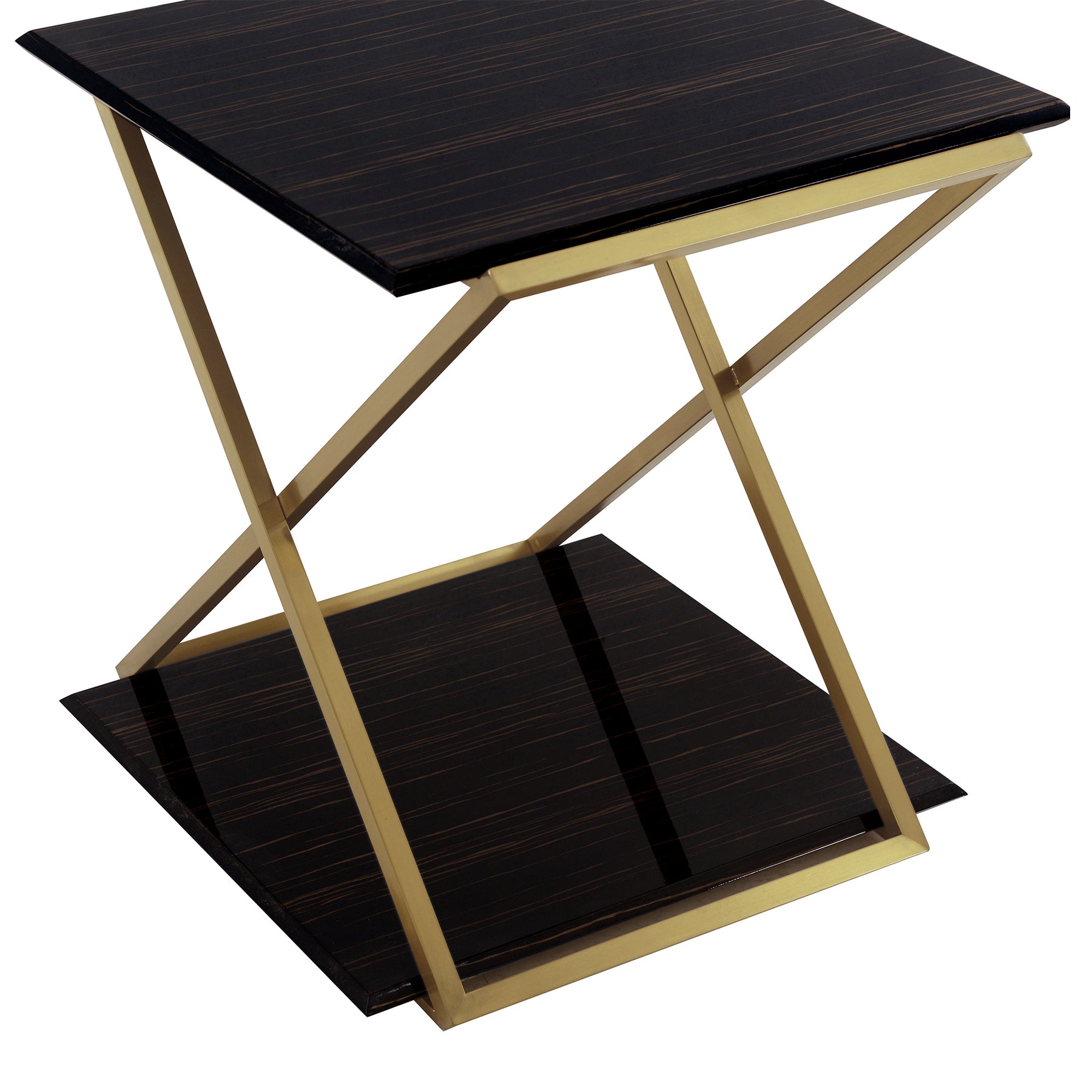 The Westlake Dark Brown Wood and Brushed Gold End Table from Armen Living is what your living room needs to take your home decor to the next level. The Westlake table features dual resting shelves that maximize your storage space - giving you ample surface area to place your favorite personal items or decorative centerpieces. The wood of the End table is waterproof and wear-resistant, fighting off everyday wear and tear and giving you years of enjoyment. The craftsmanship shown through the design of the table is very apparent - the rich gold accents, the unique x-shape frame, and the gorgeous wood all contribute to this special piece.Product Dimensions